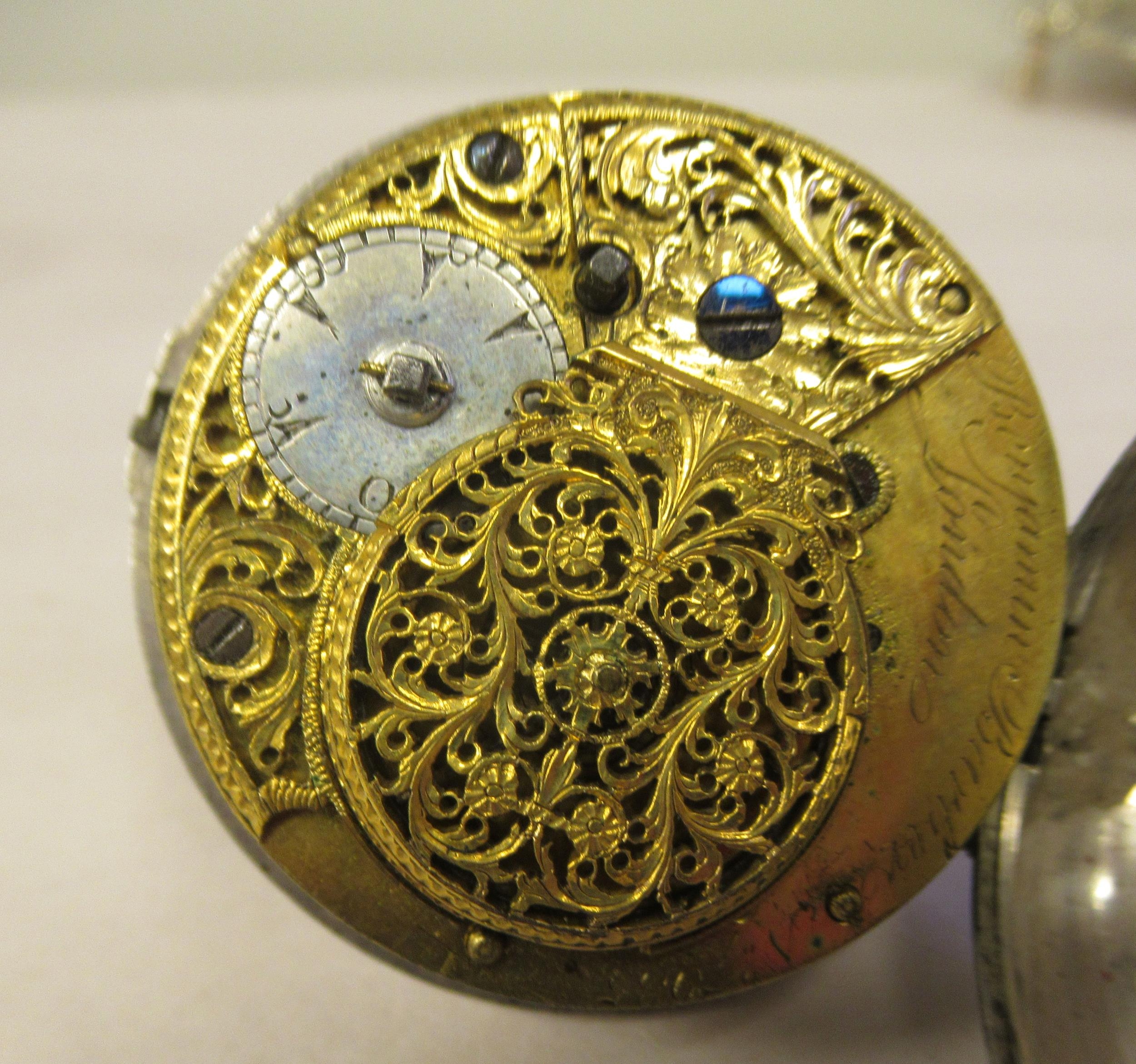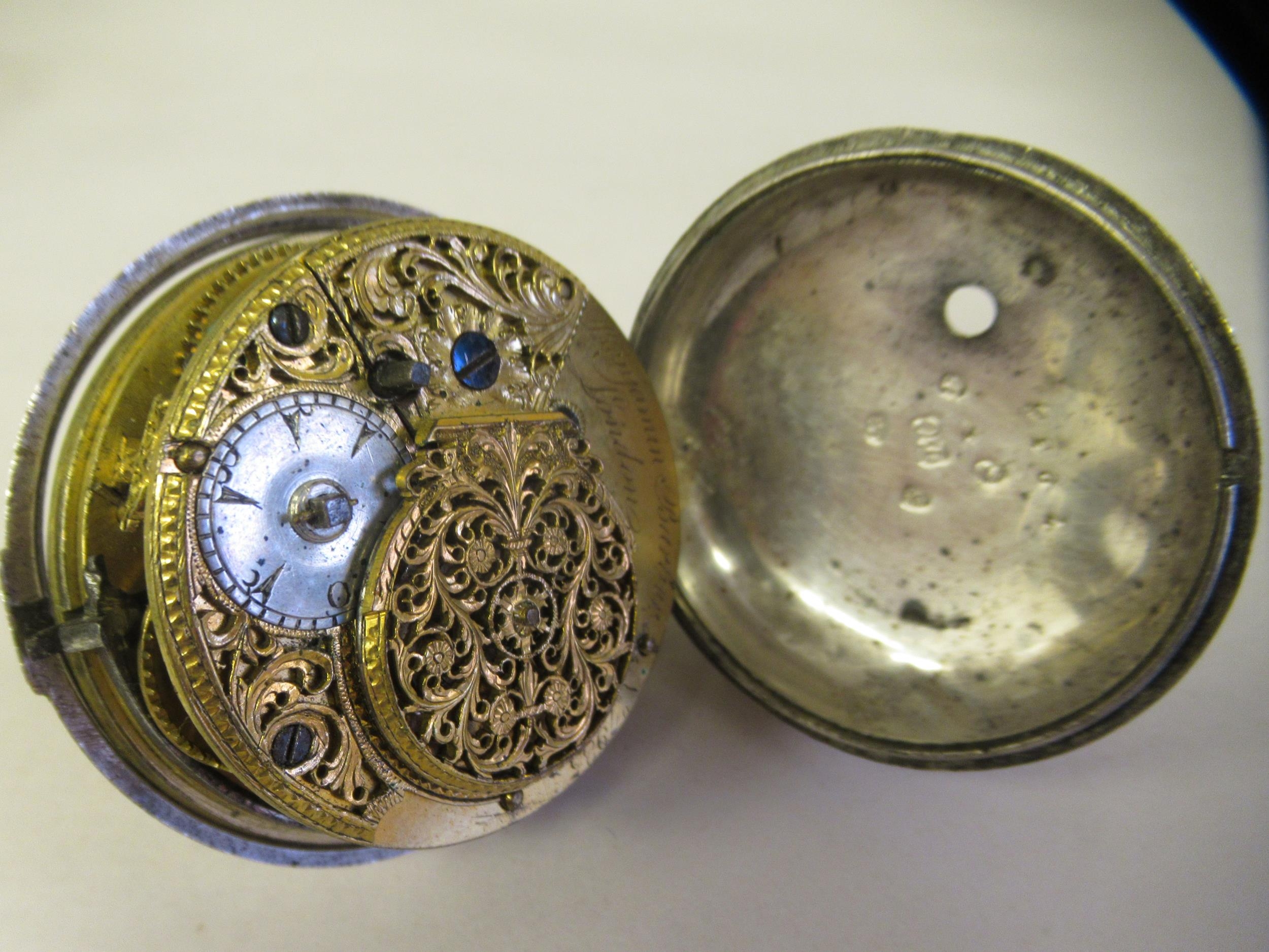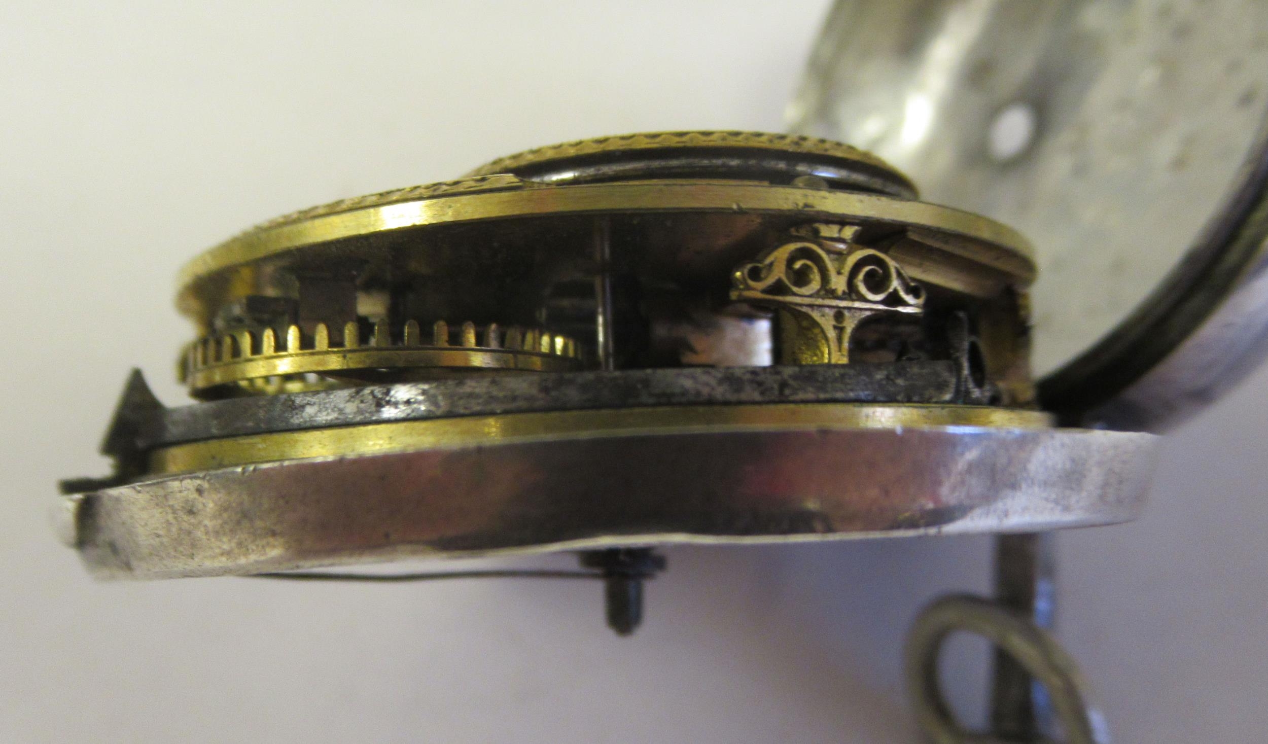 A George III 1792 silver pair cased pocket watch, the moveme...