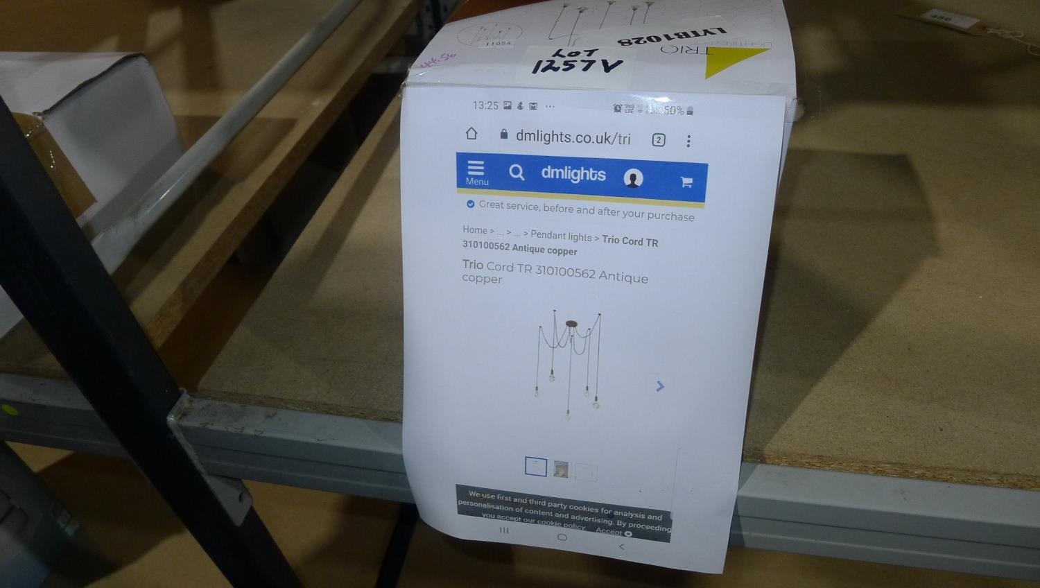 A 5 lamp cord style chandelier