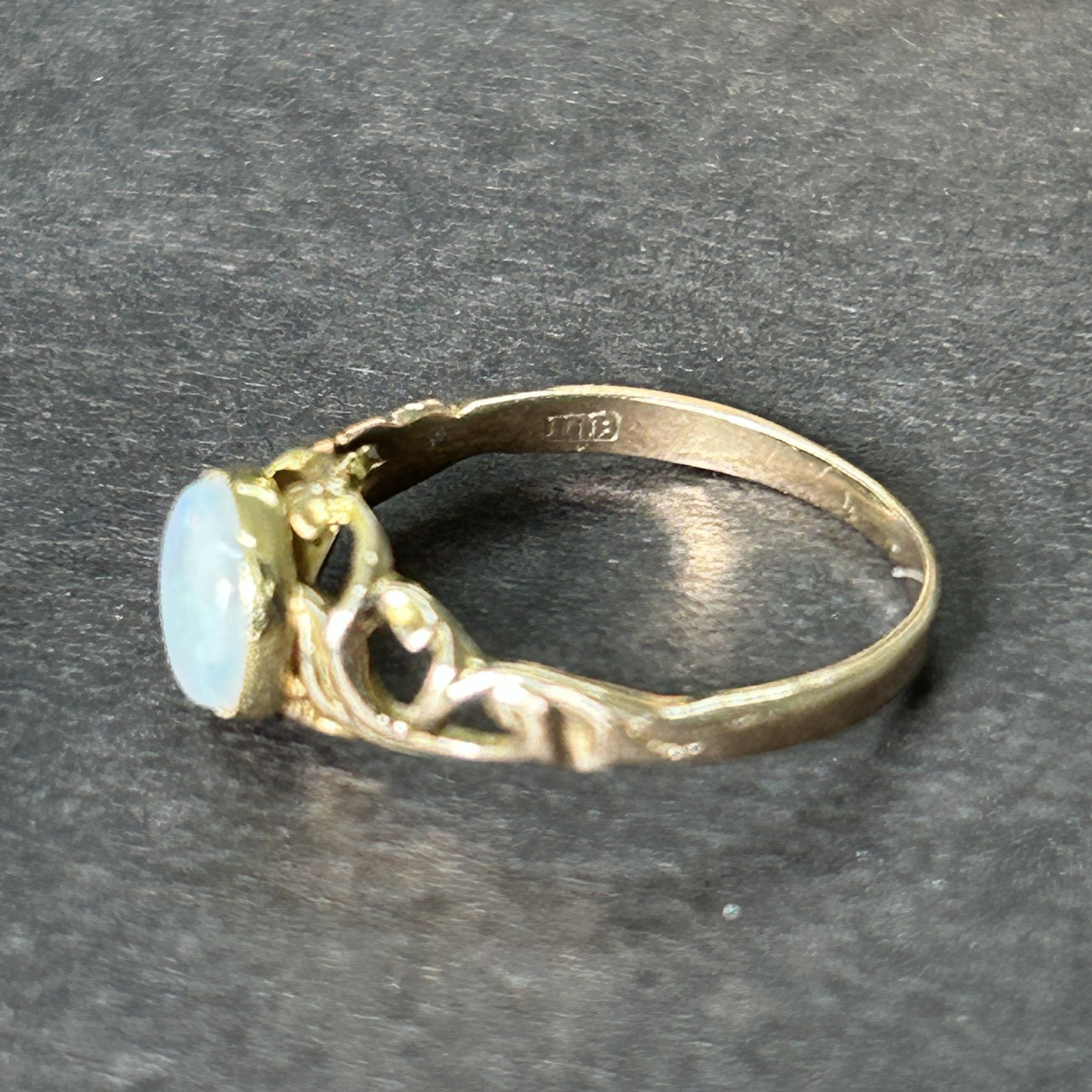 A 9ct gold ring with opal setting, approx. size P, weight approx. 1.9g