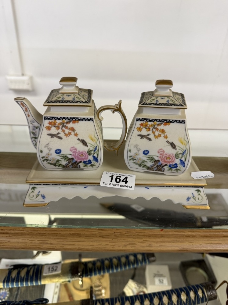 A Franklin Mint birds & flowers of The Orient tea set with teapot, creamer & base