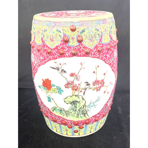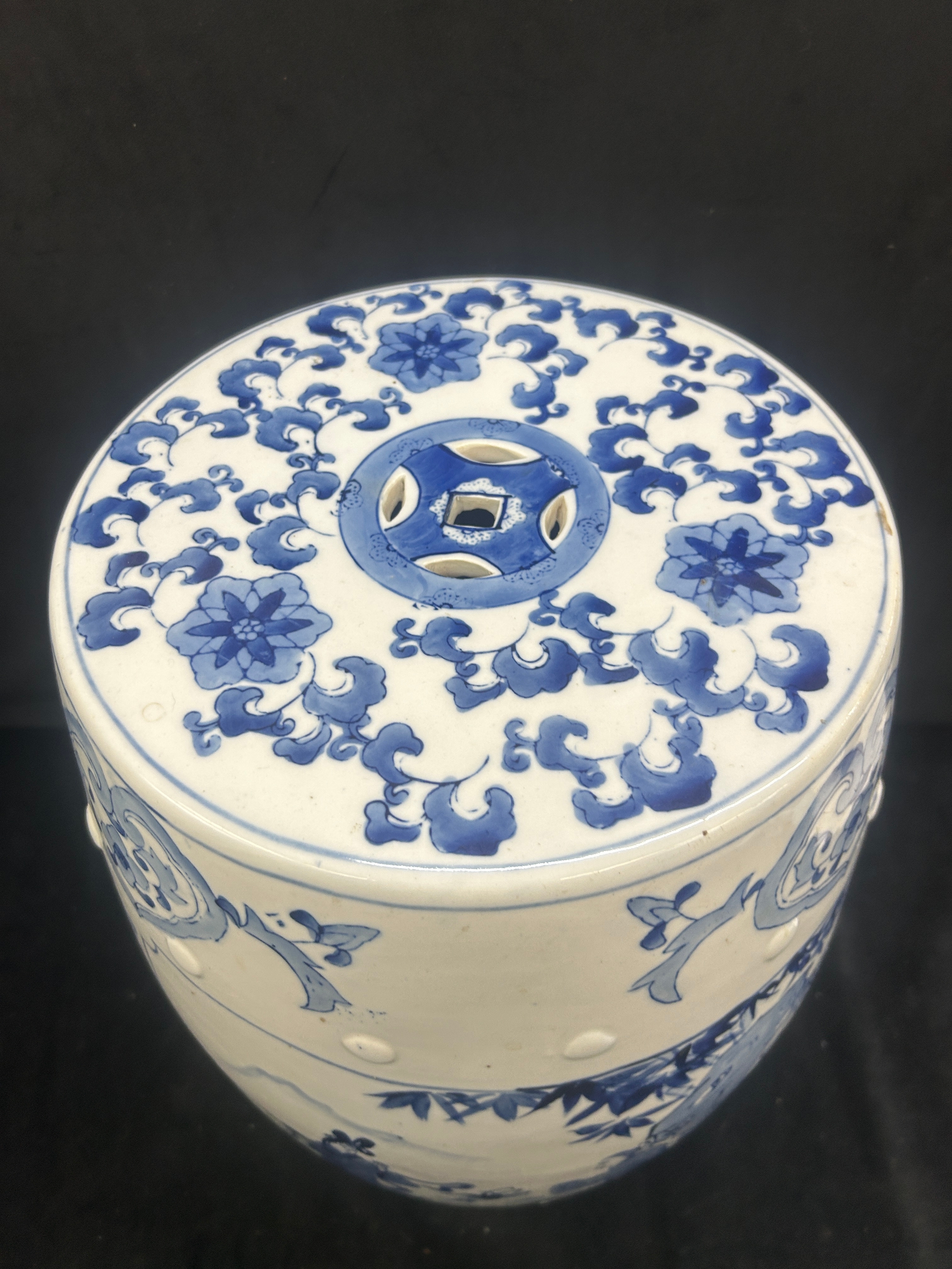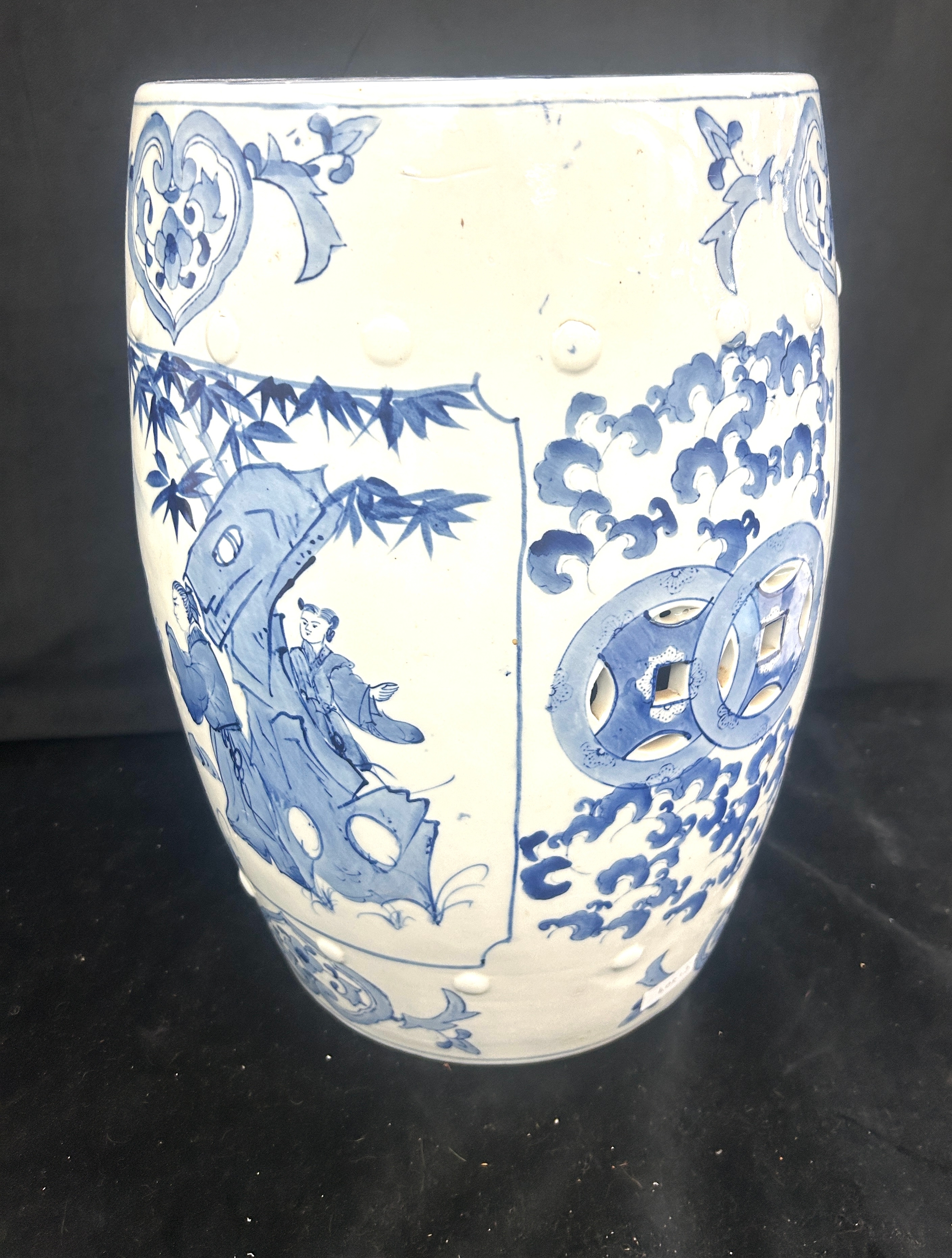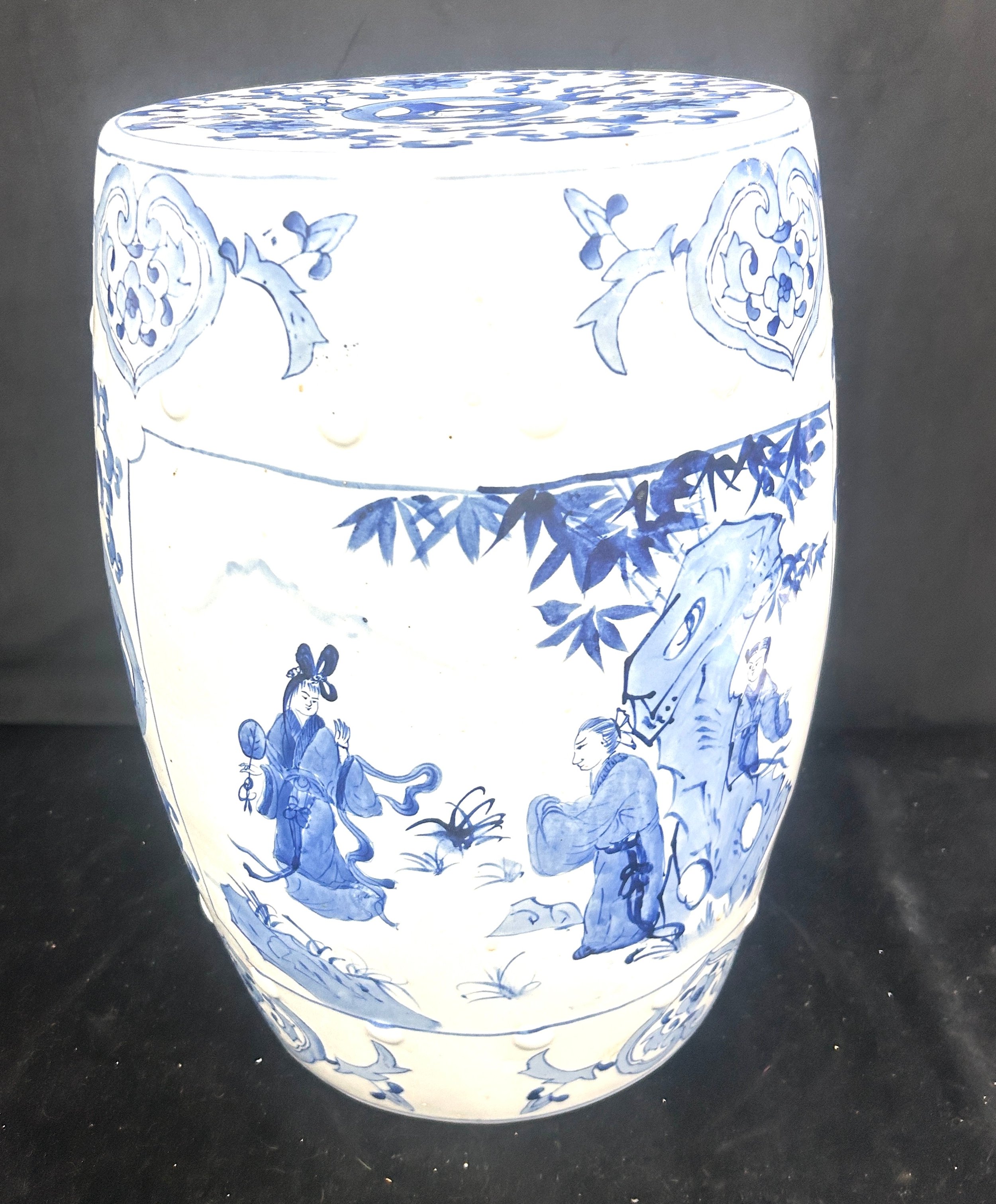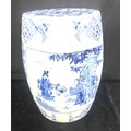 Oriental blue and white pottery garden seat height approximately 18 inches