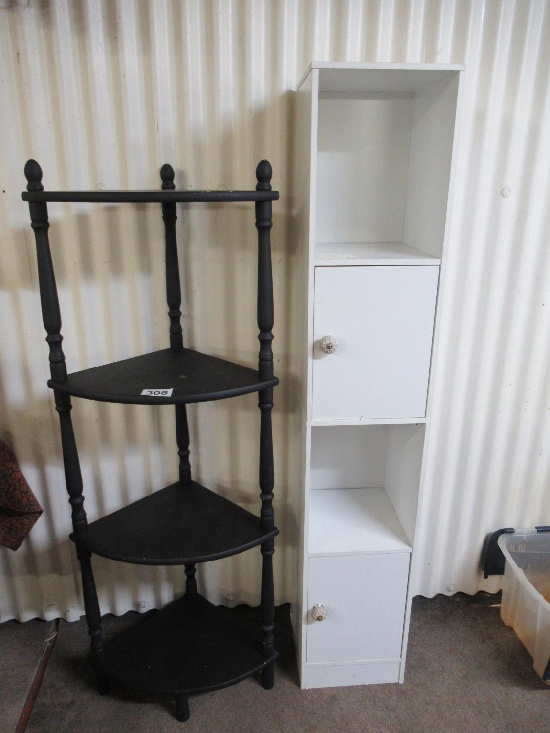 Painted corner what not plus storage unit.