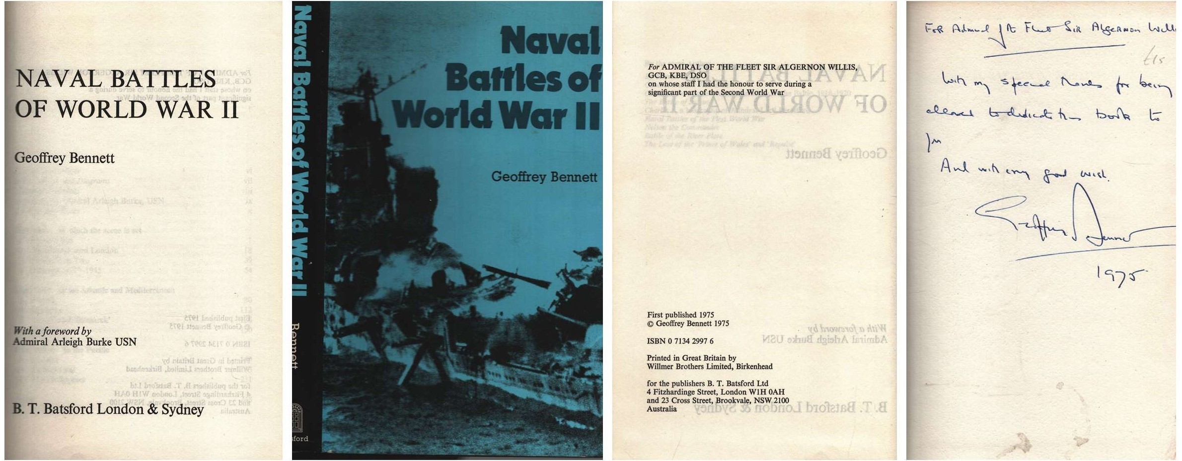 Geoffrey Bennett signed. Naval Battles of World War II Hardback Book. Publisher Batsford. First published 1975. Inscribed.