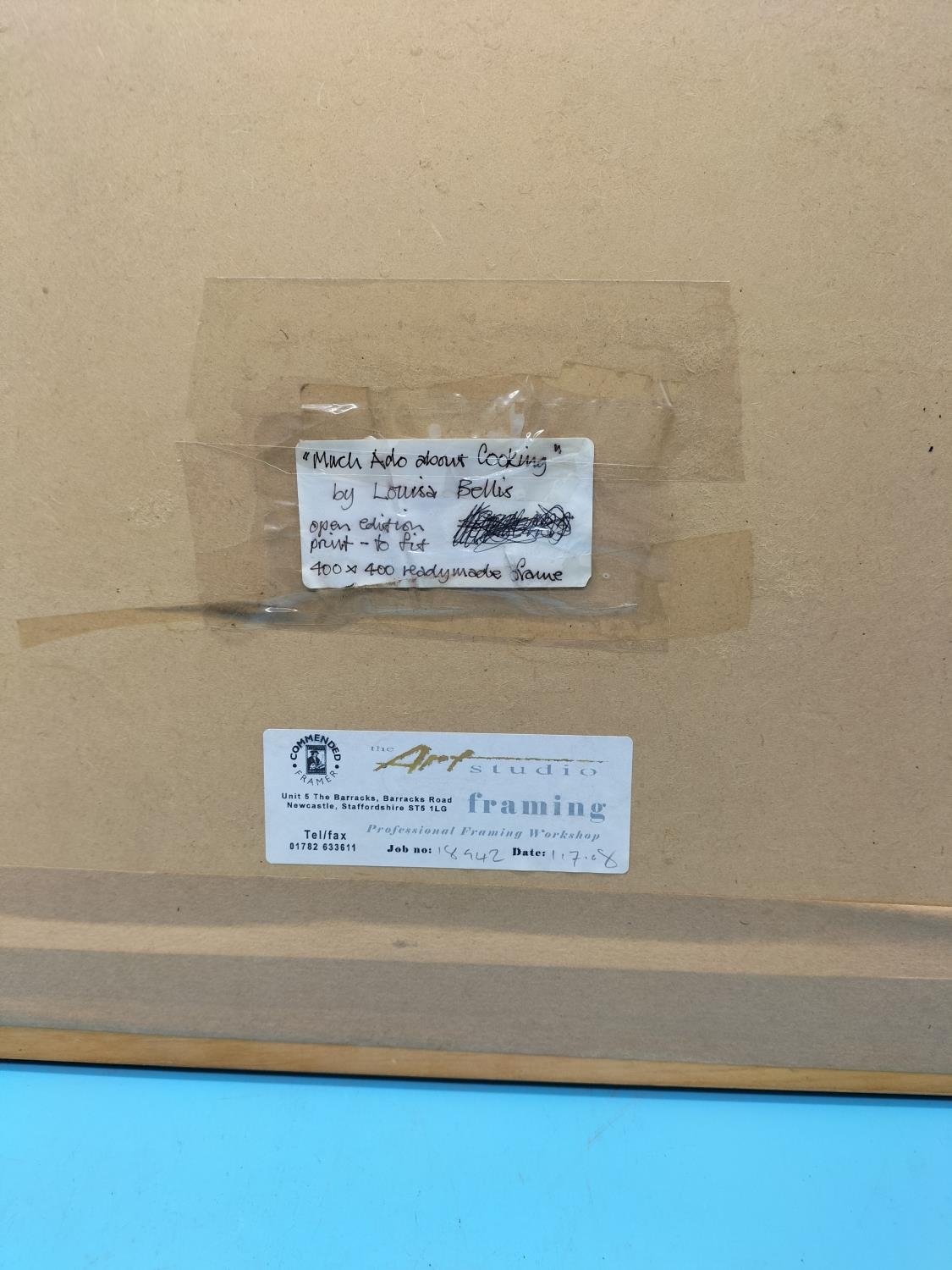Framed Open Edition Print 'Much Ado About Cooking' by American Artist Louisa Bells. 46cm x 46cm.