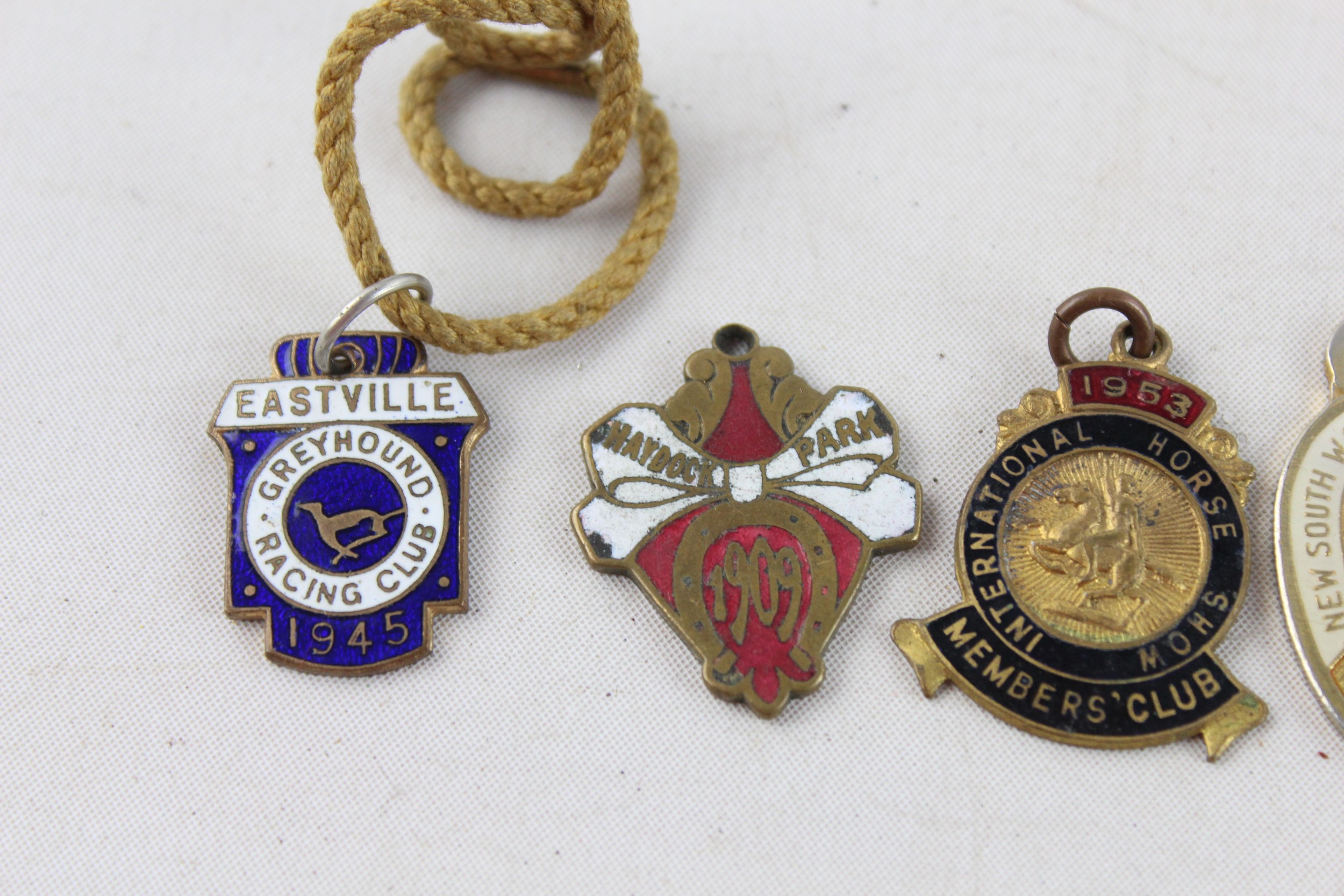 5 x Antique / Vintage GREYHOUND / HORSE RACING Tokens Inc Enamel Etc