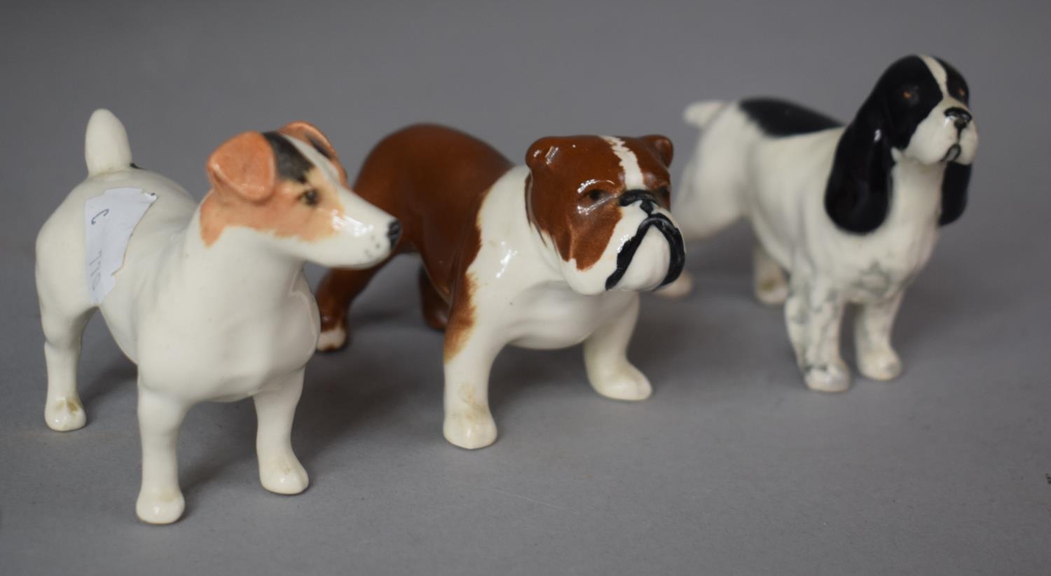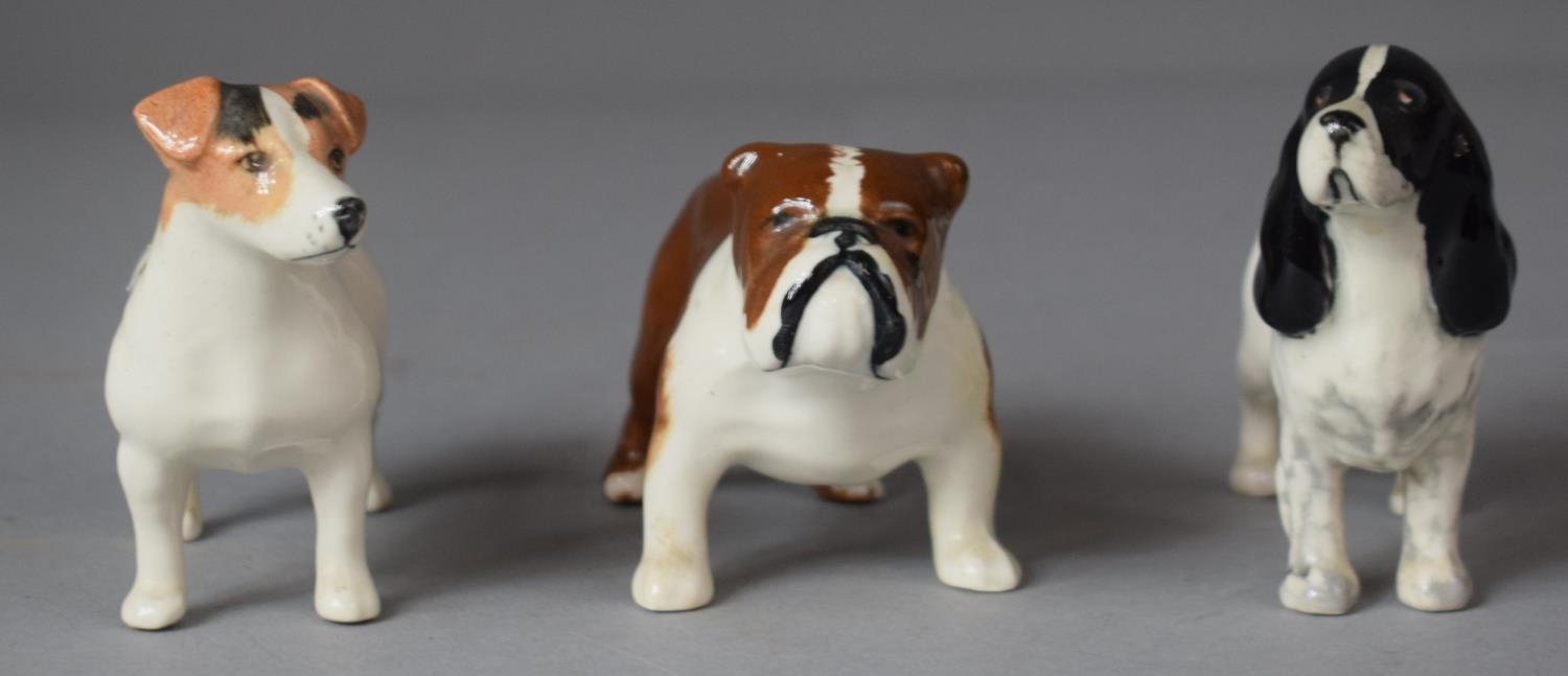 Three Beswick Dogs to include Spaniel, Bulldog, Terrier, Tallest 7cms High