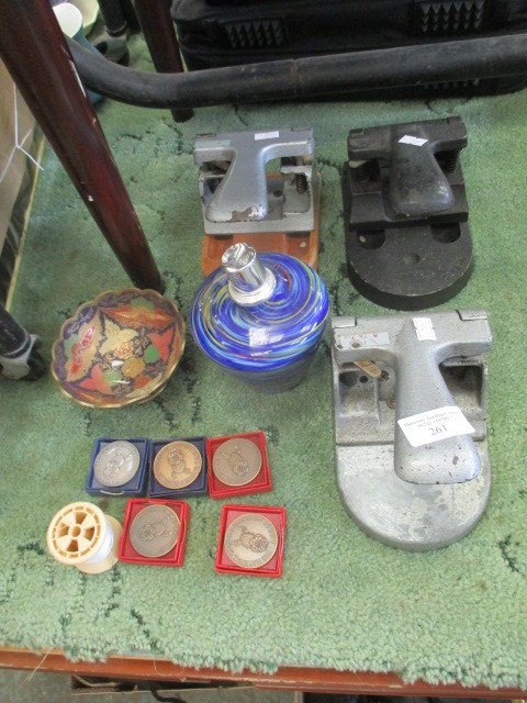 3 VINTAGE HOLE PUNCHES, PAINTED BRASS BOWL, 5 C THE NATIONAL CACTUS & SUCCULENT SOCIETY MEDALLIONS