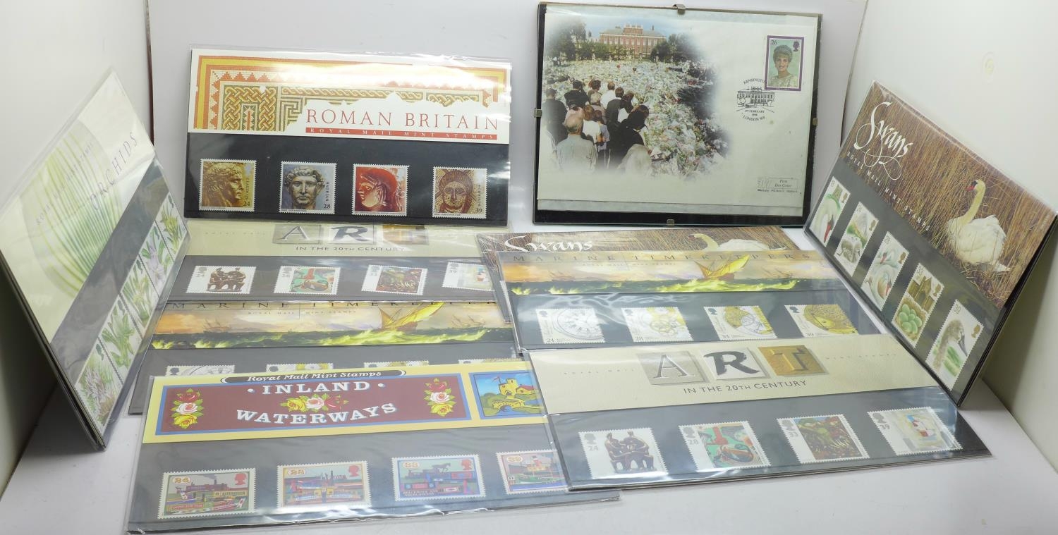 Eleven Royal Mail Mint Stamp (two duplicates) and a Diana First Day Cover