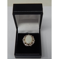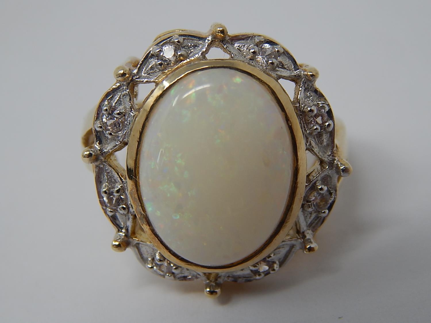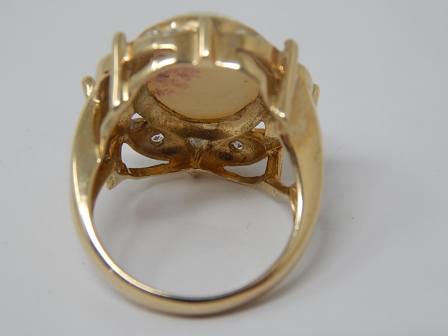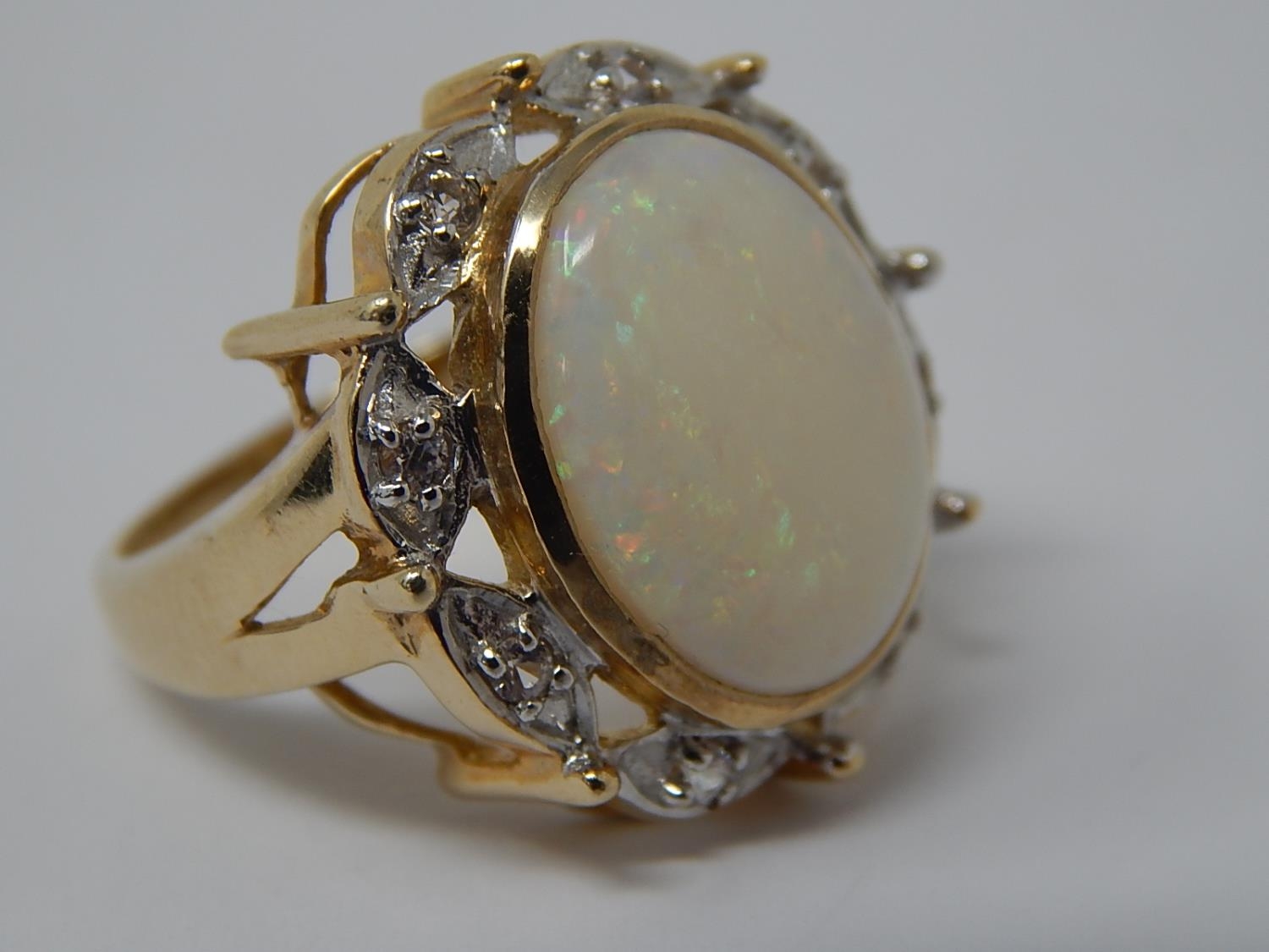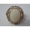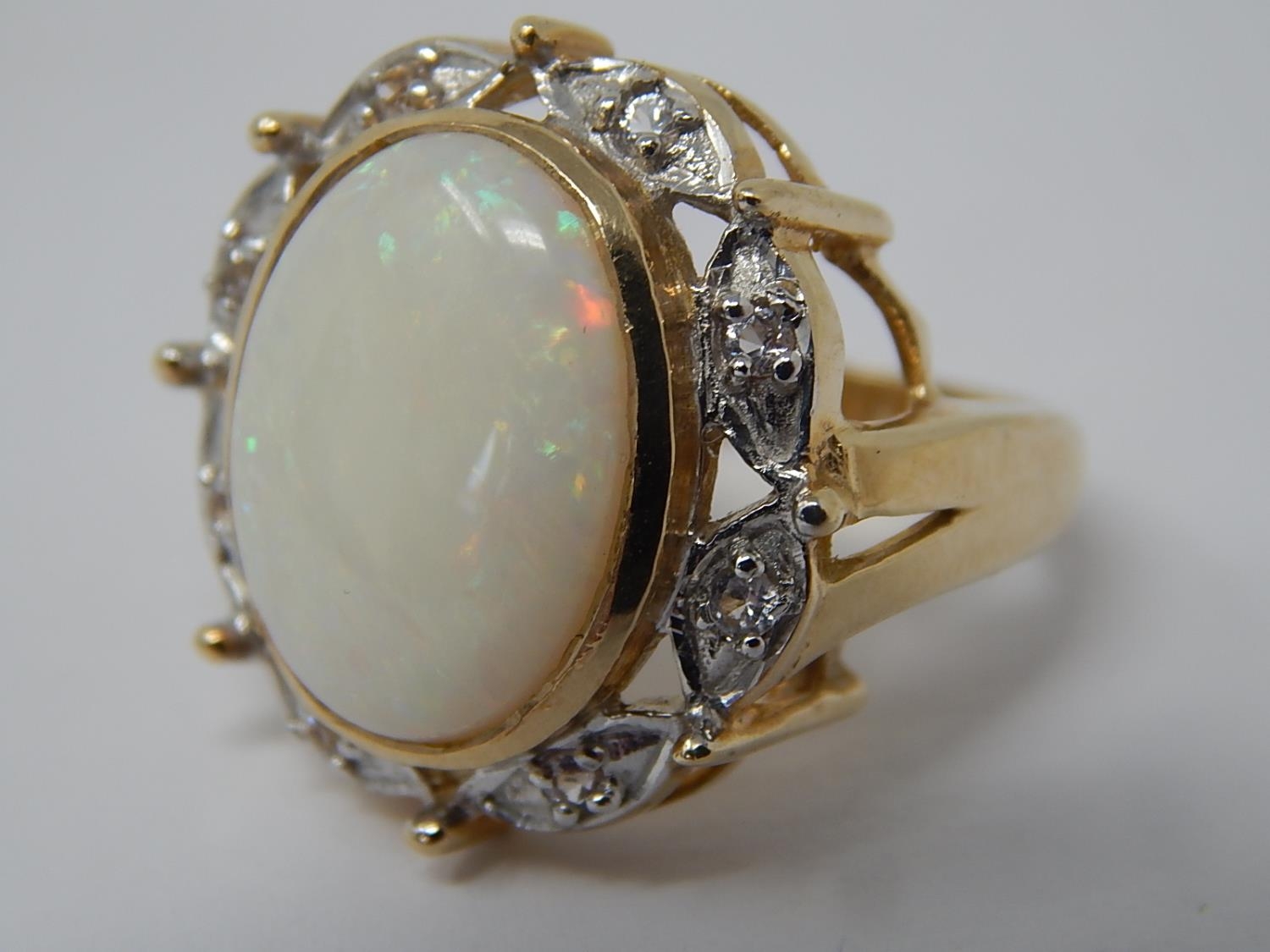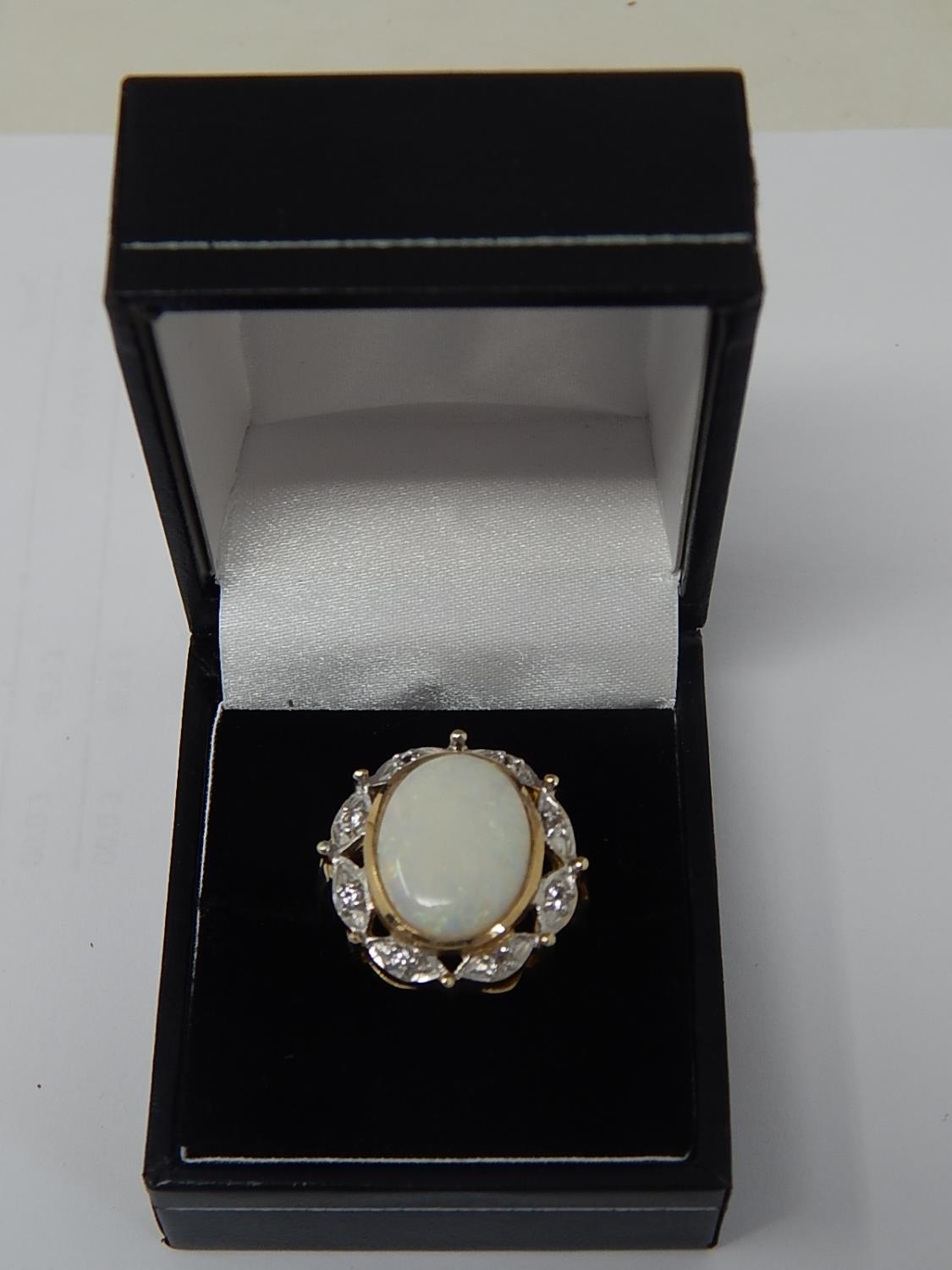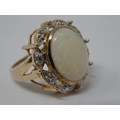 HUGE Opal Ring Set with a Central Opal Measuring 16mm x 12mm within a Diamond Border Mounted in 9ct Yellow Gold: Ring Size N: Gross weight 7.5g