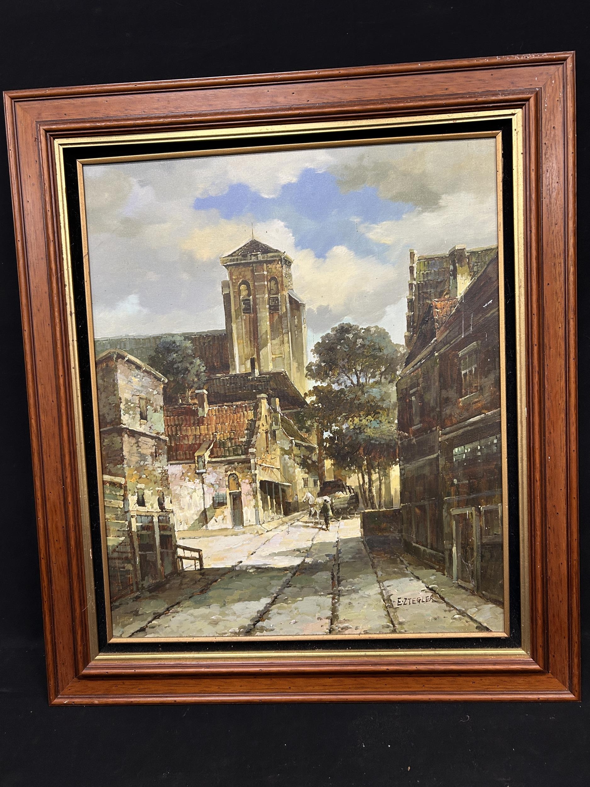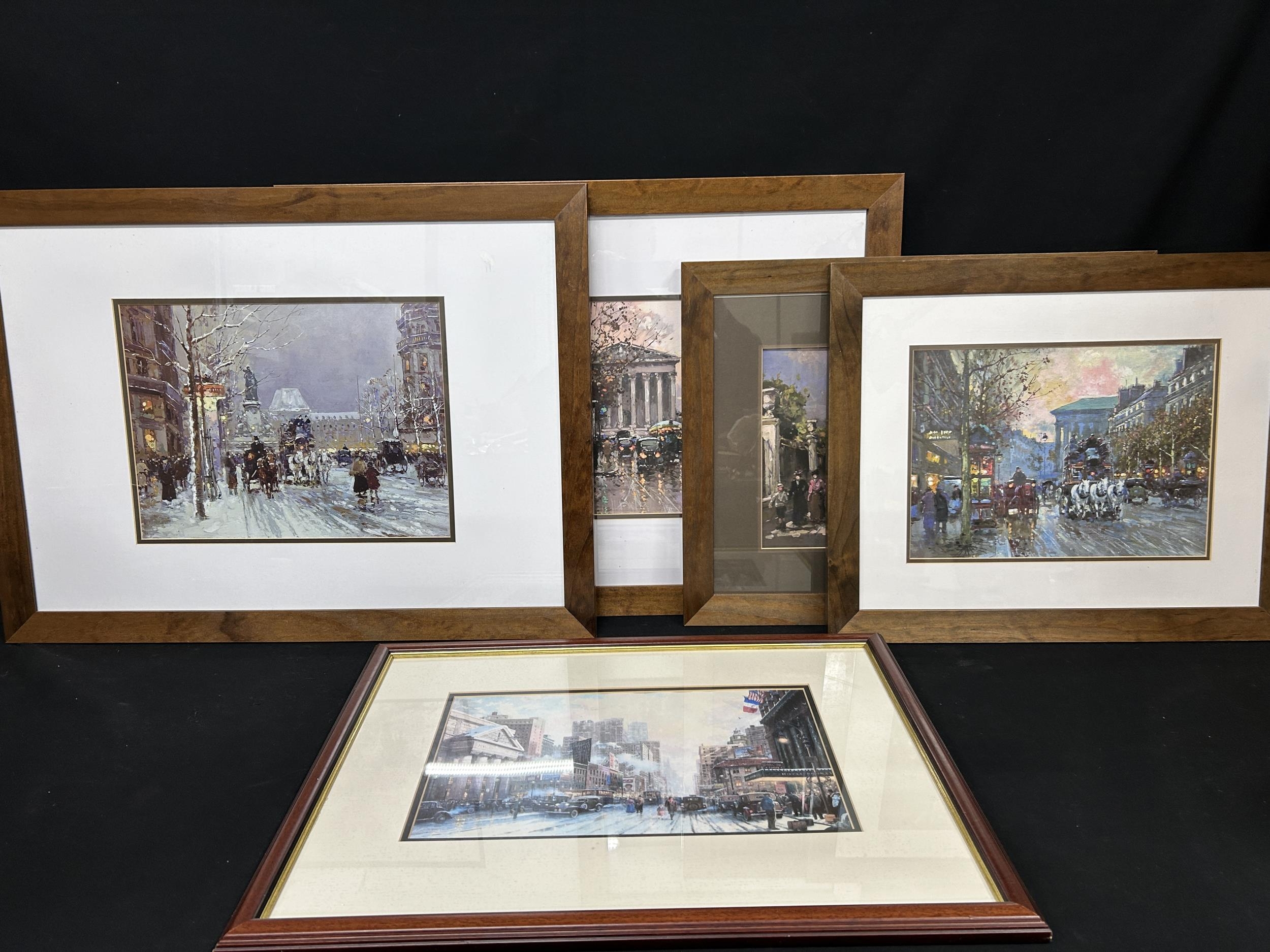 Set of Five Prints of London Scenes by Edward Coates plus framed Italian street scene picture