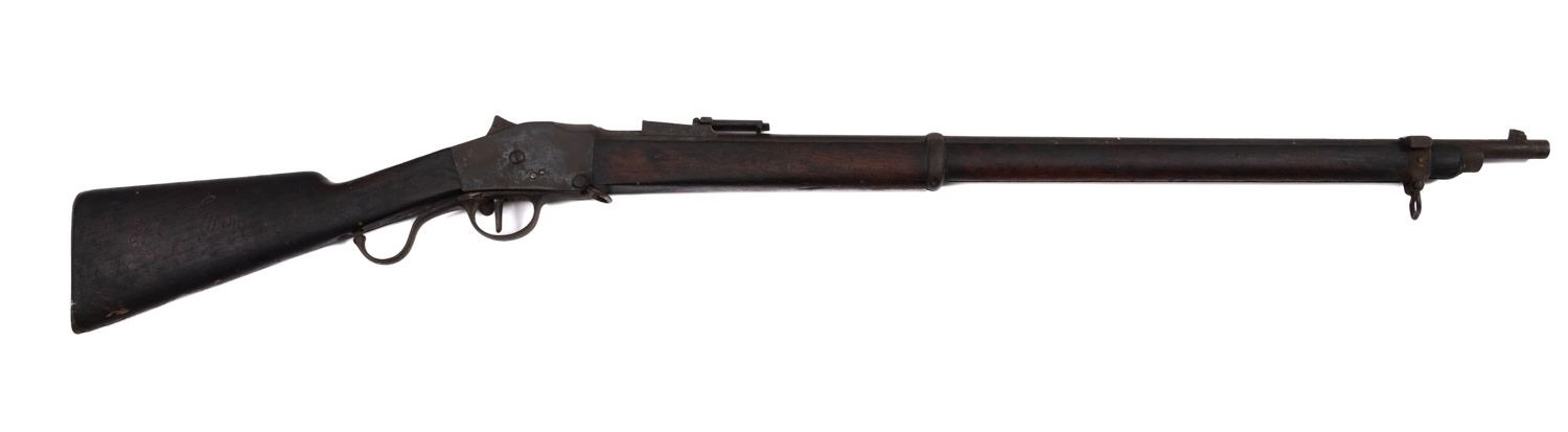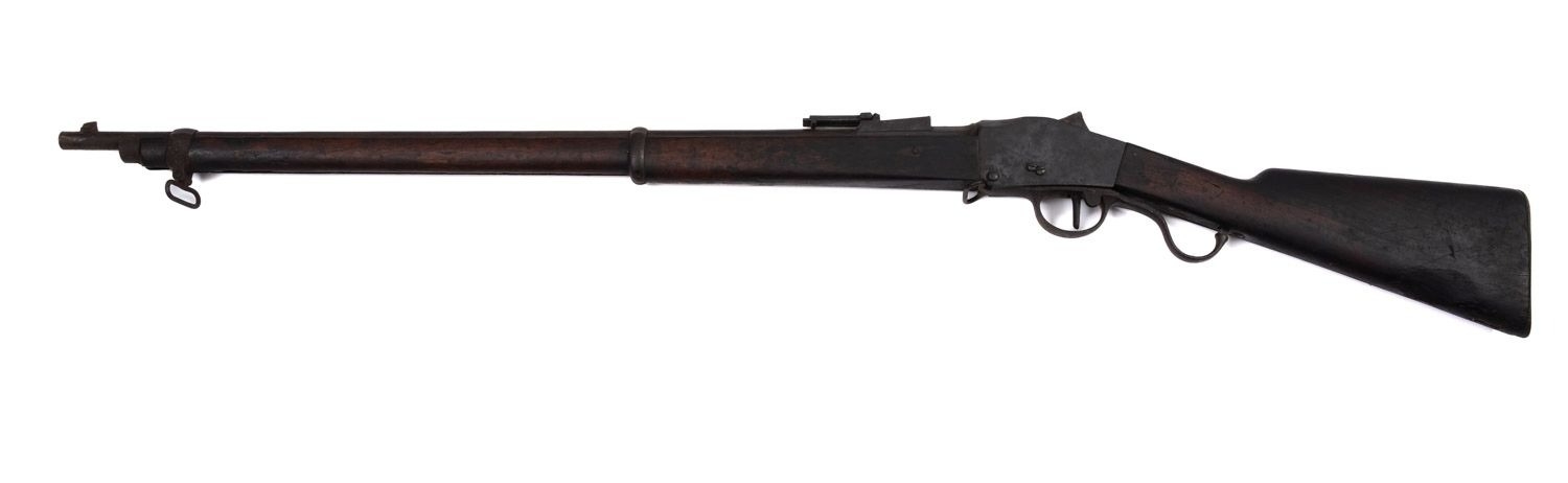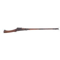 A late 19th century South African Steyer Martini Hermi action rifle. Serial number 3441, dated 1886, 8mm x 60R calibre having a plain double banded 30.5'' barrel, martini underlever action and 14'' length of pull.