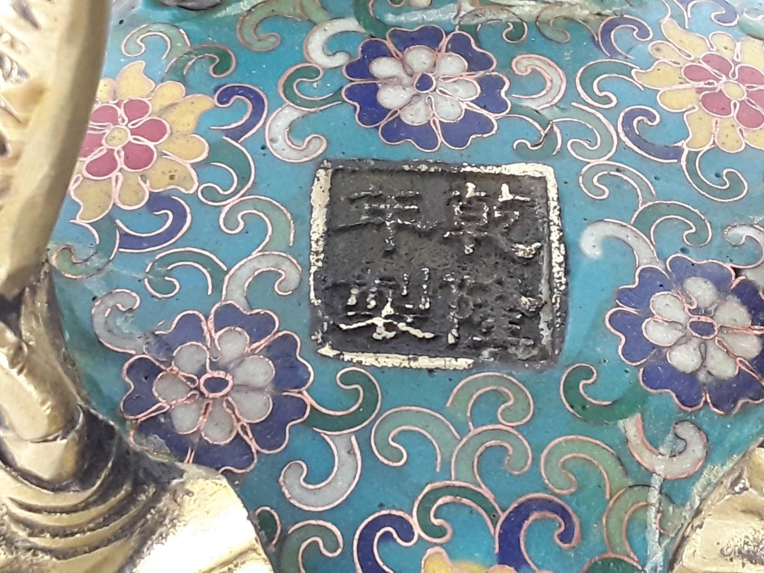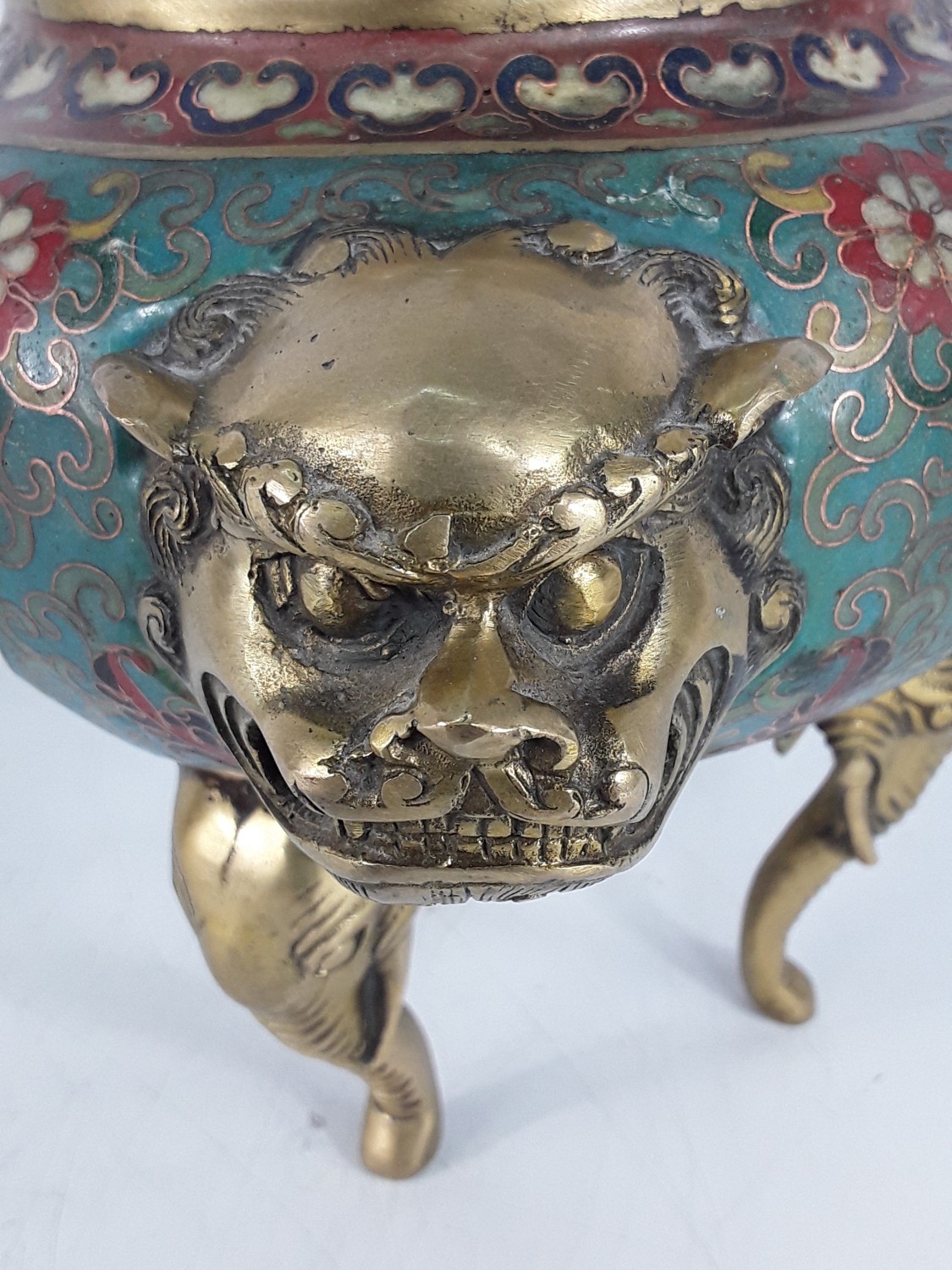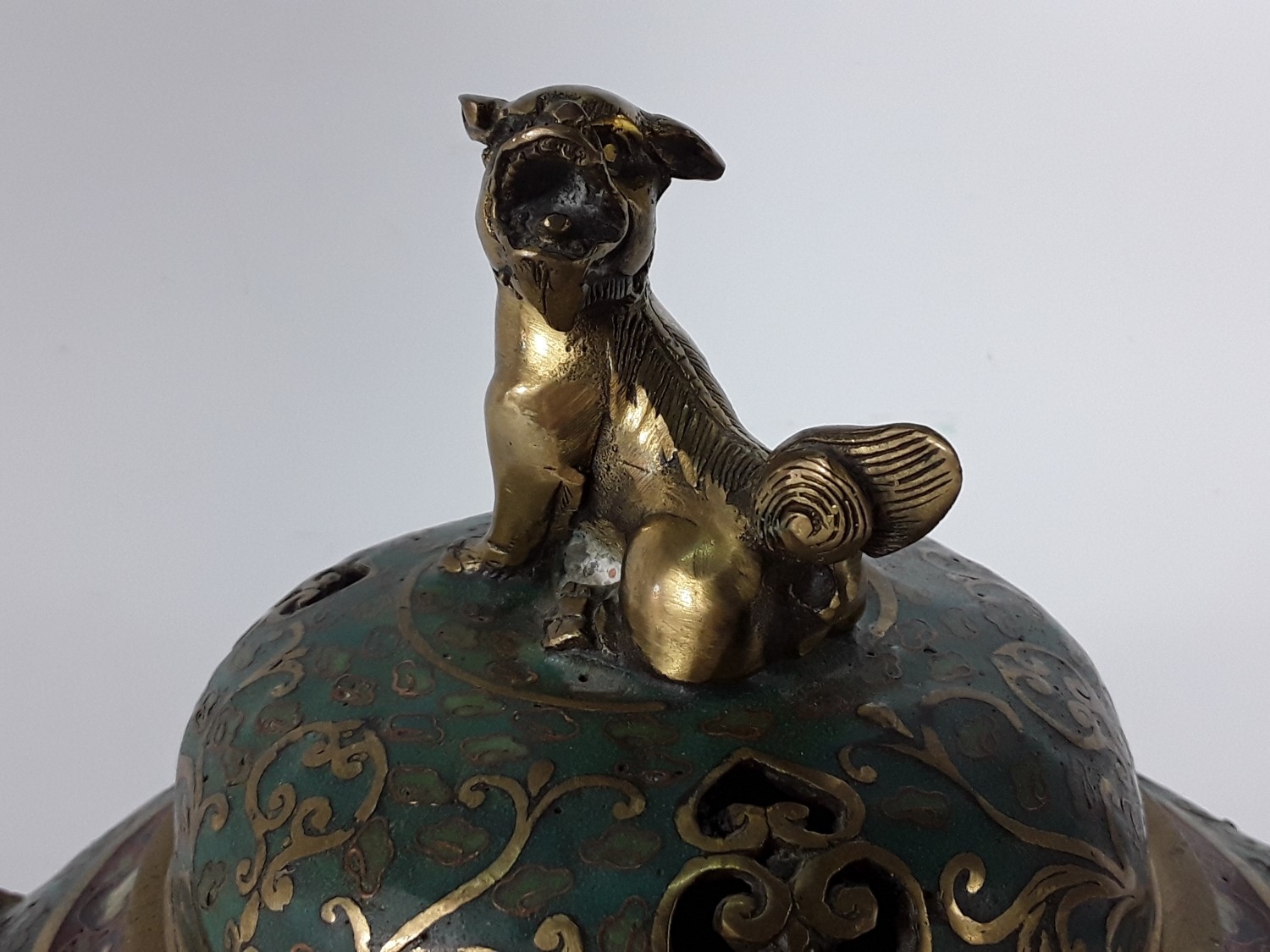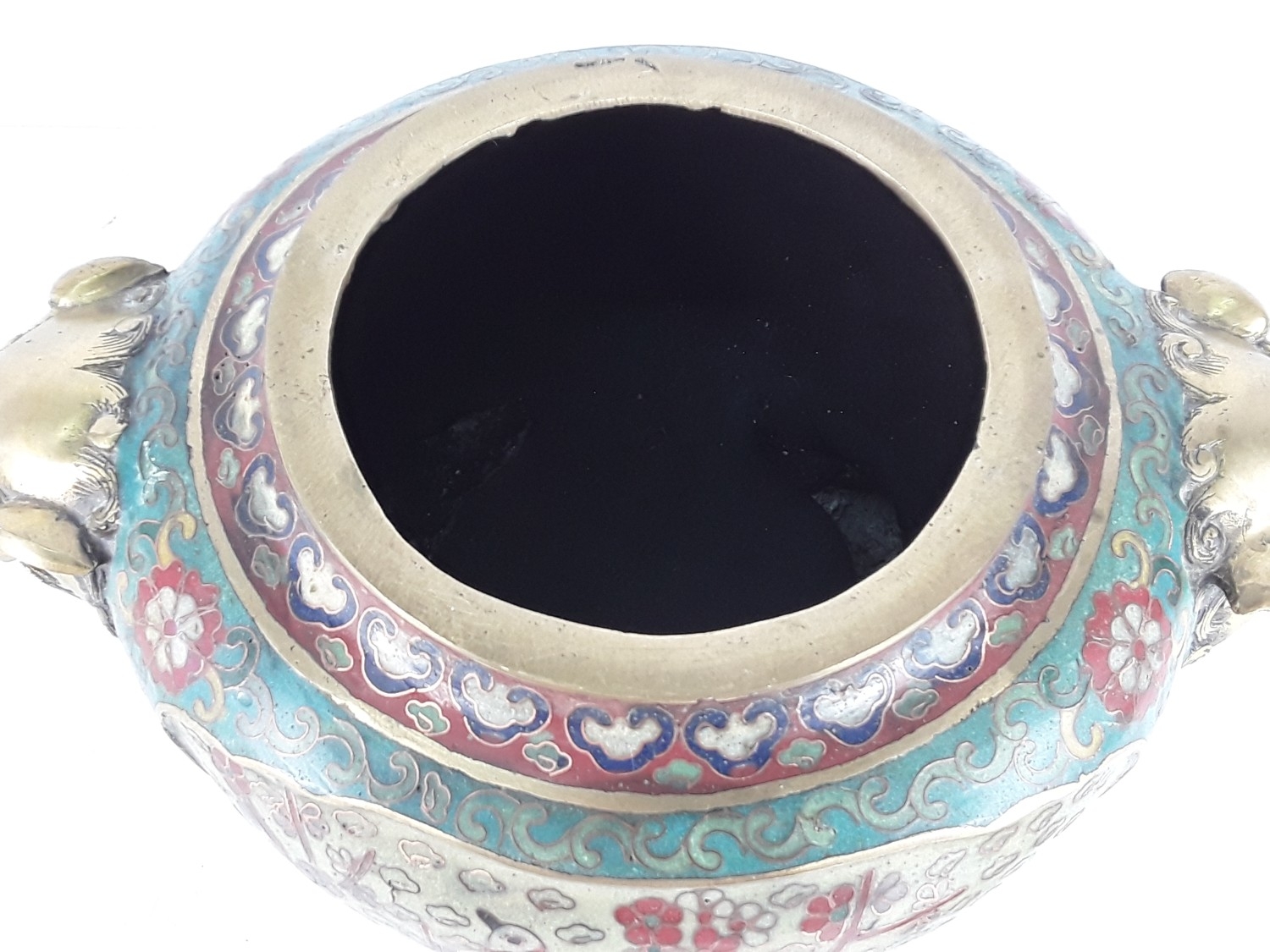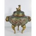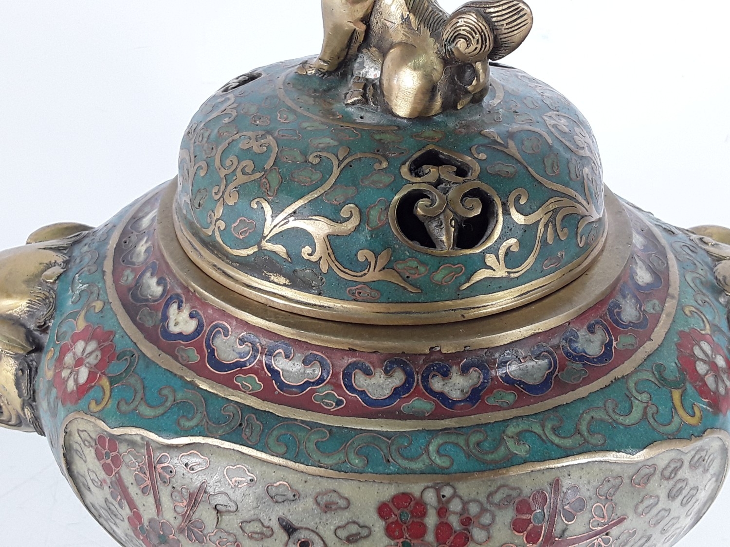 Chinese Mid-Century cloisonne bronze censor, 30 x 30cms