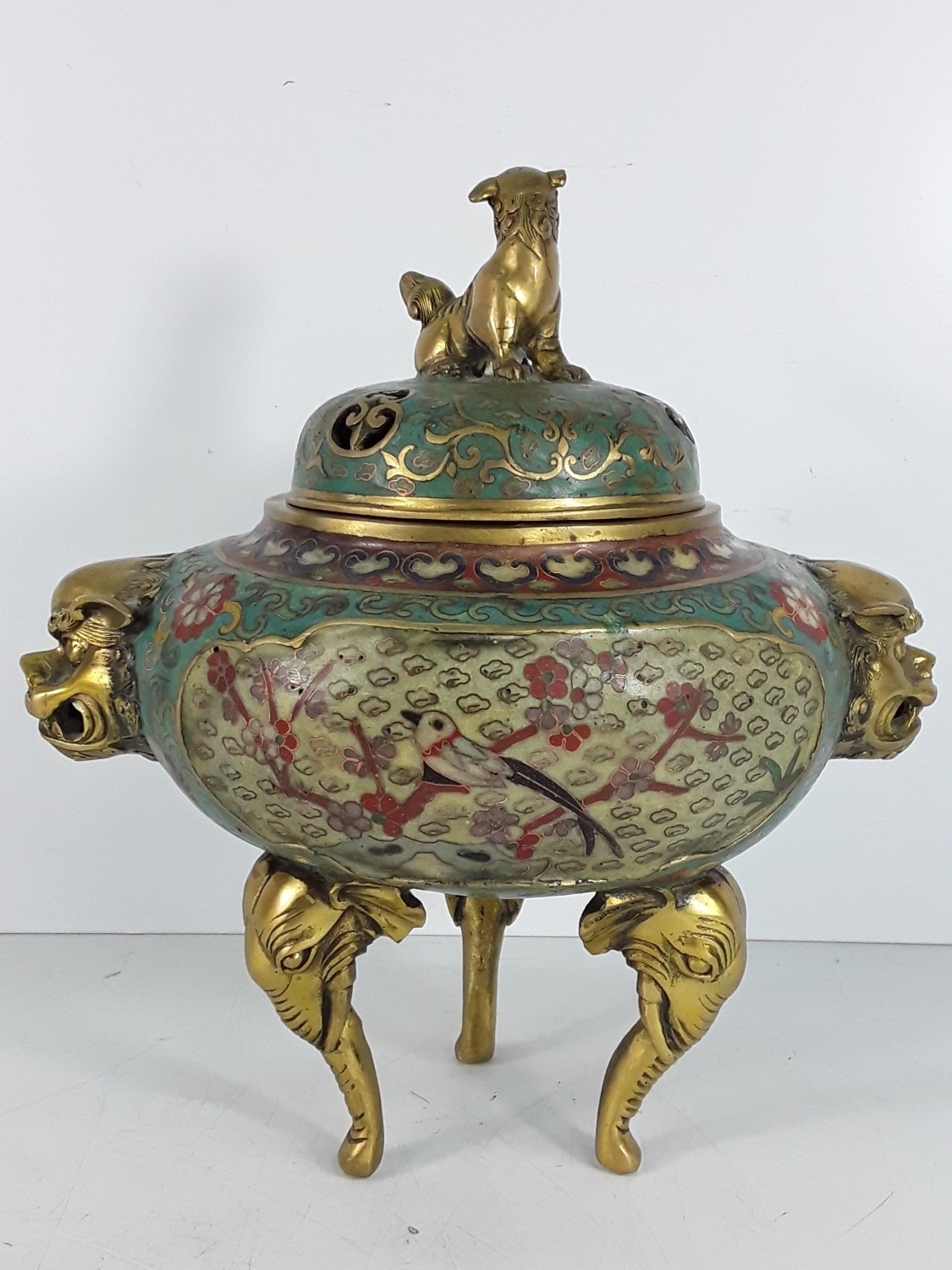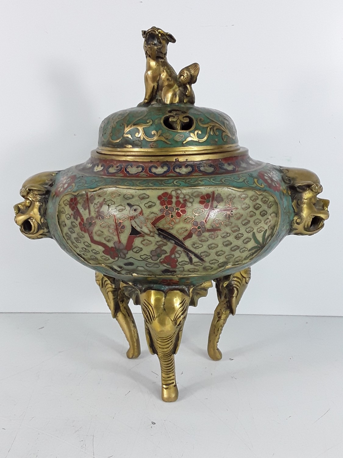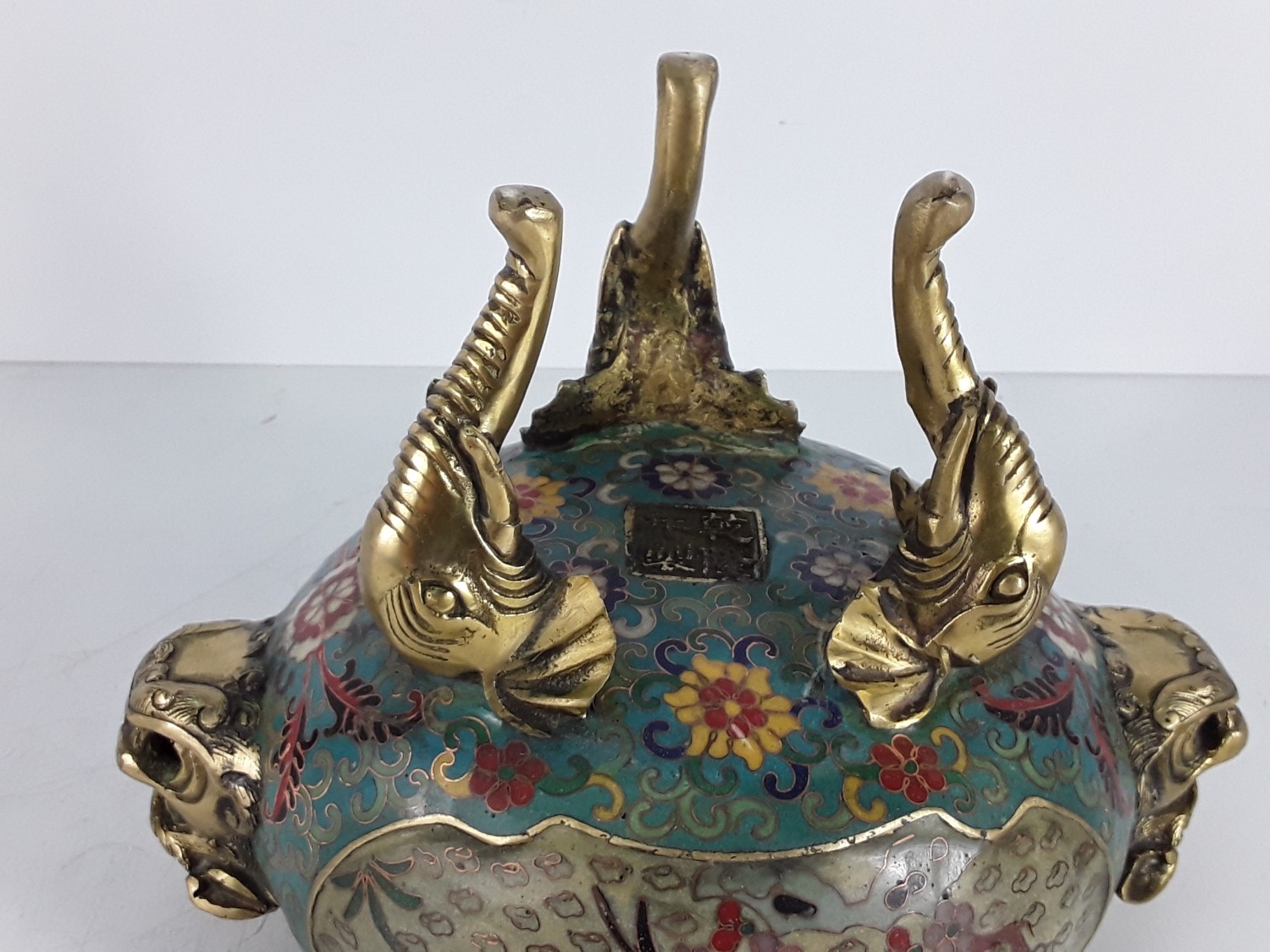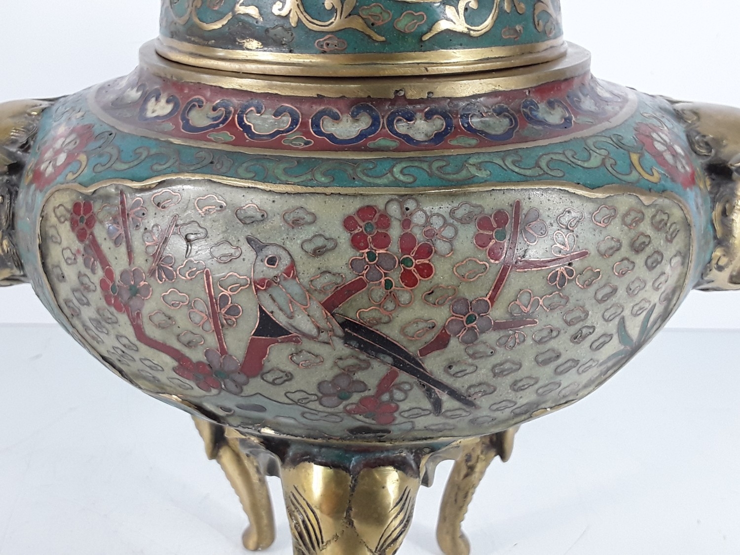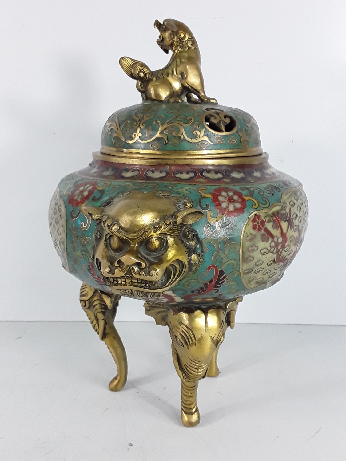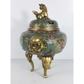 Chinese Mid-Century cloisonne bronze censor, 30 x 30cms