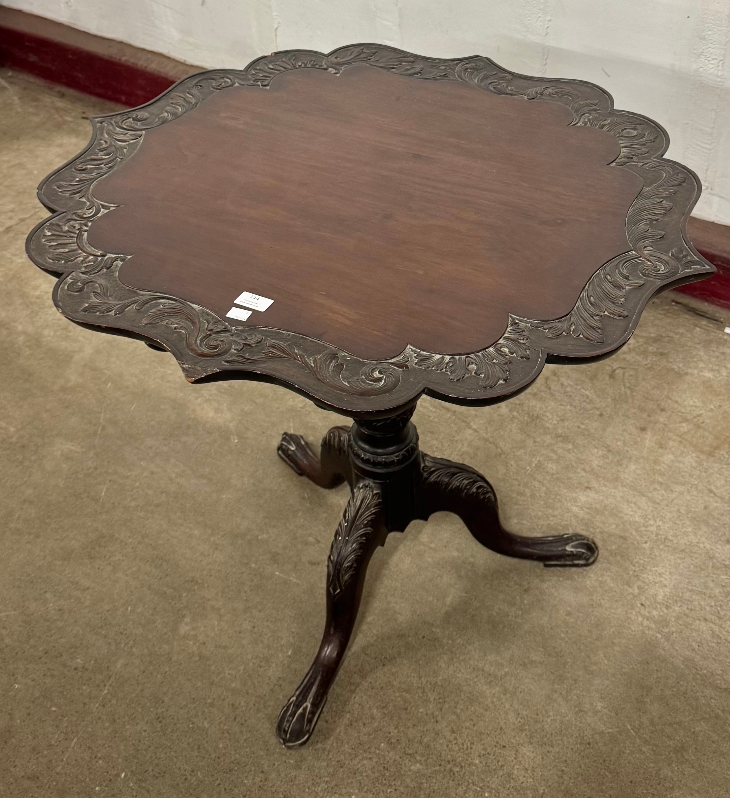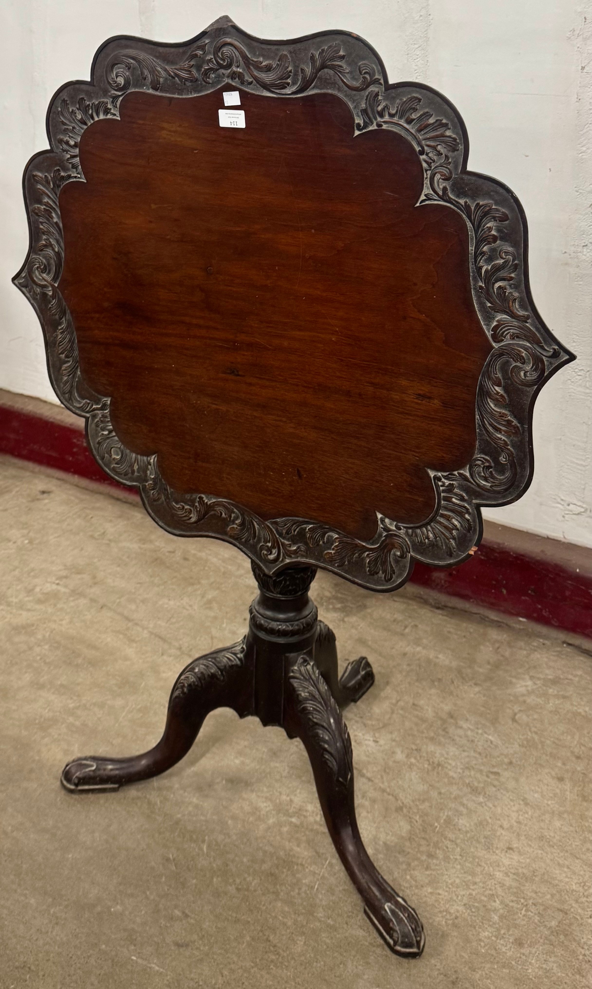 An Edward VII Chippendale style carved mahogany tilt top tripod tea table