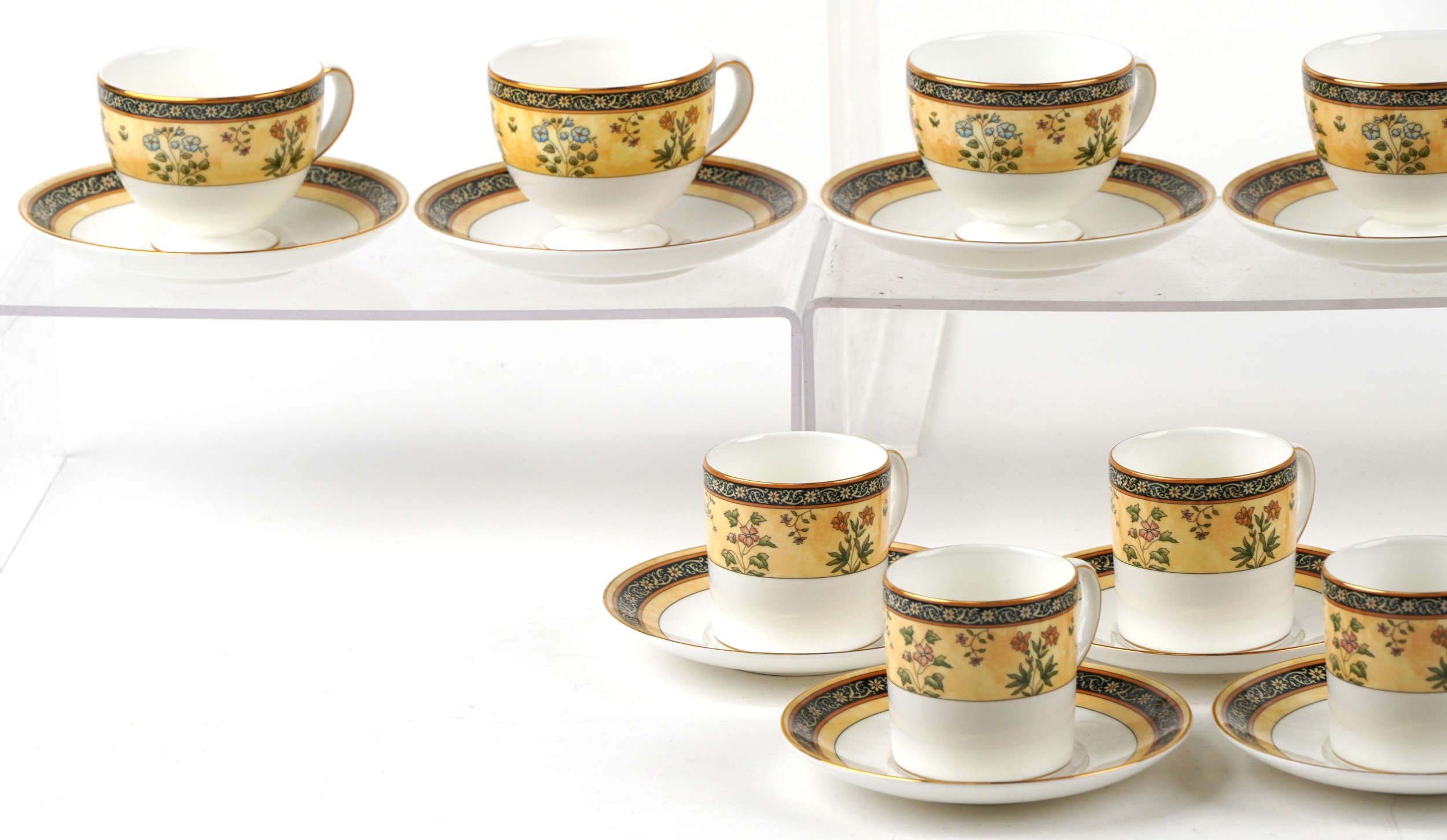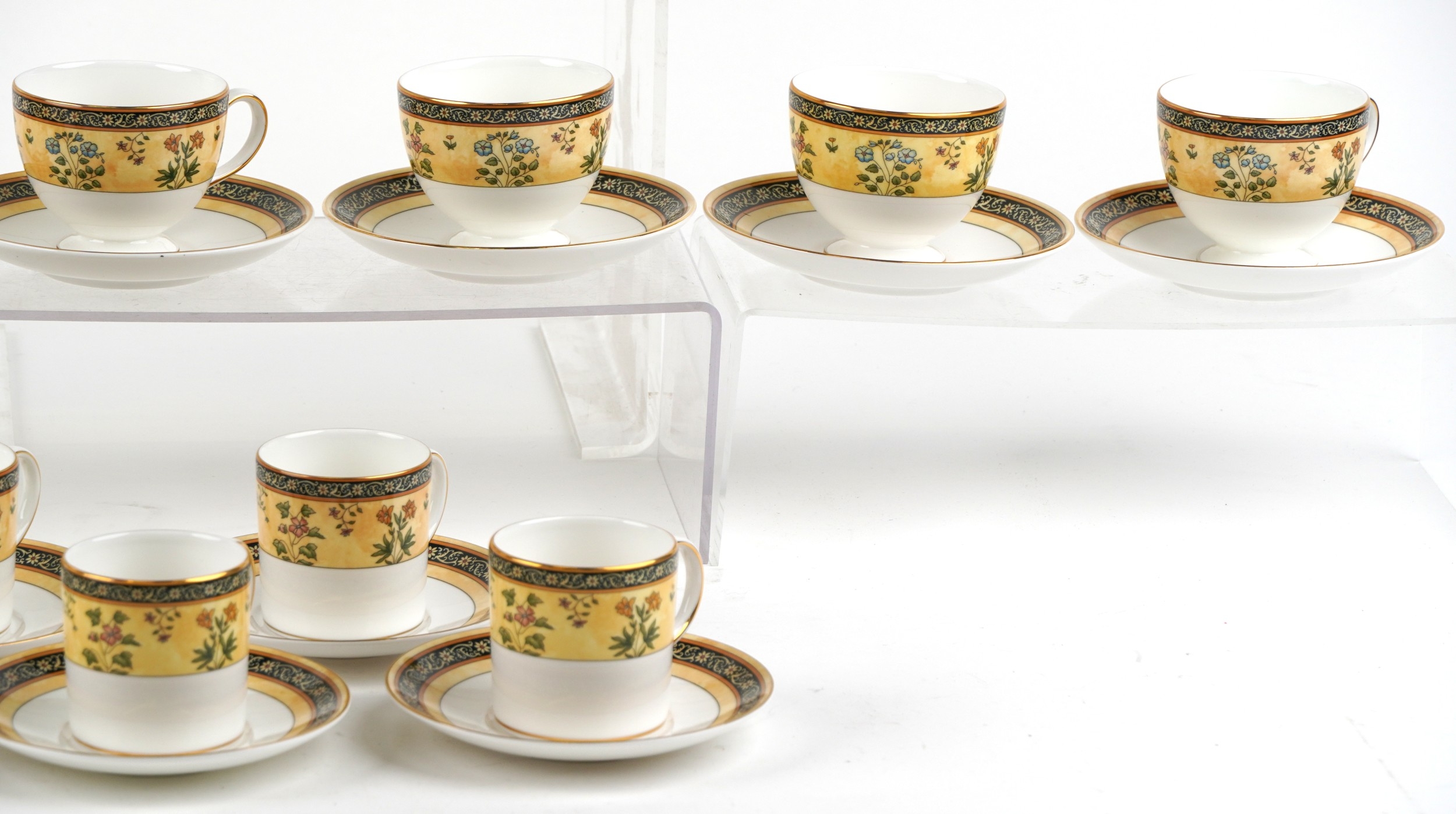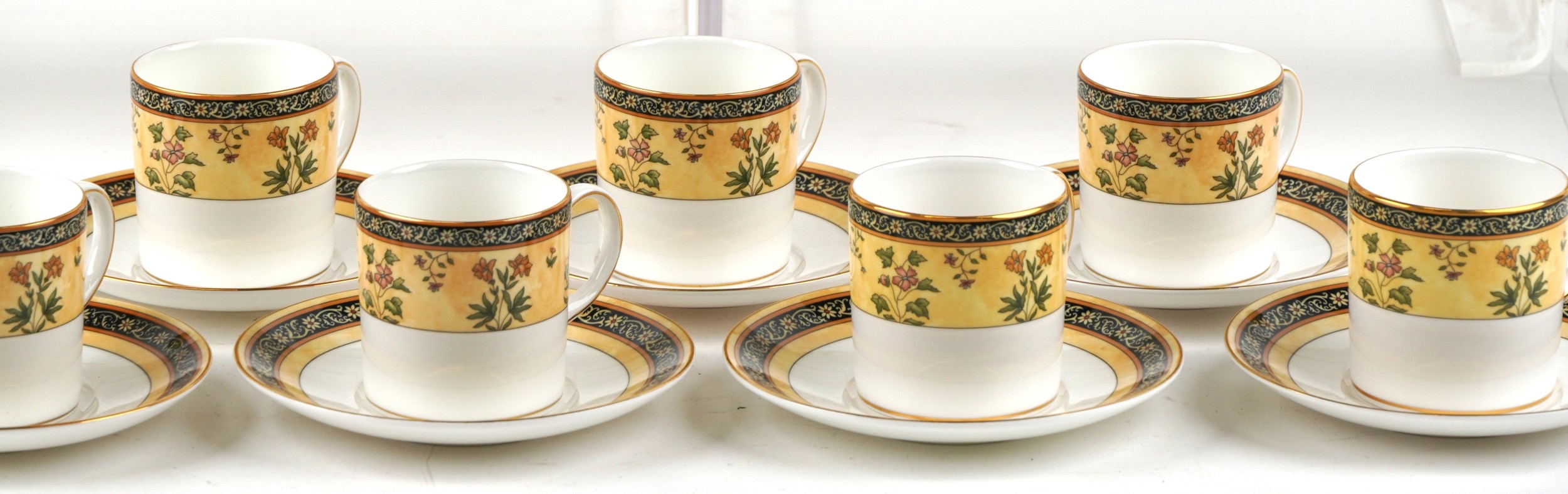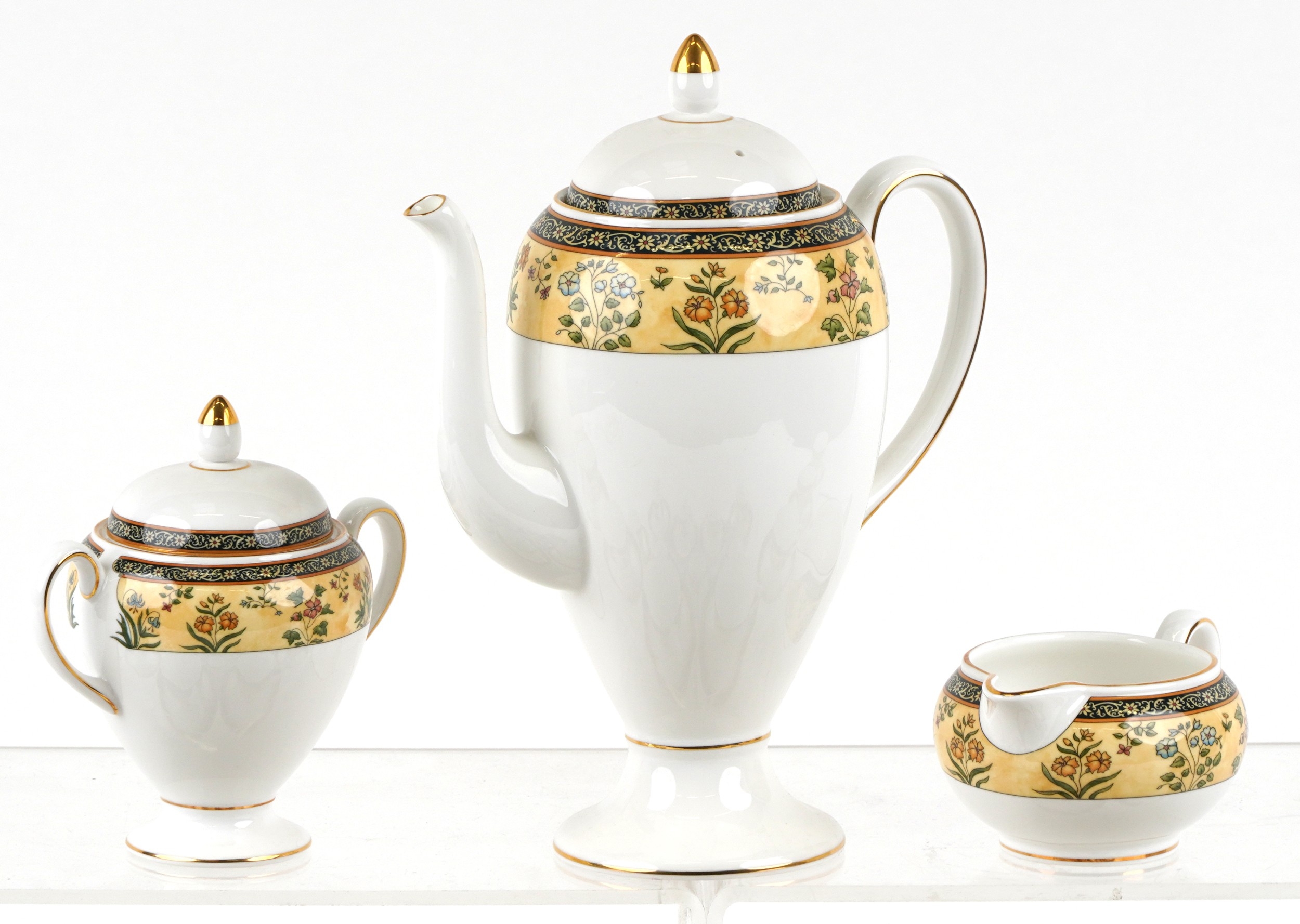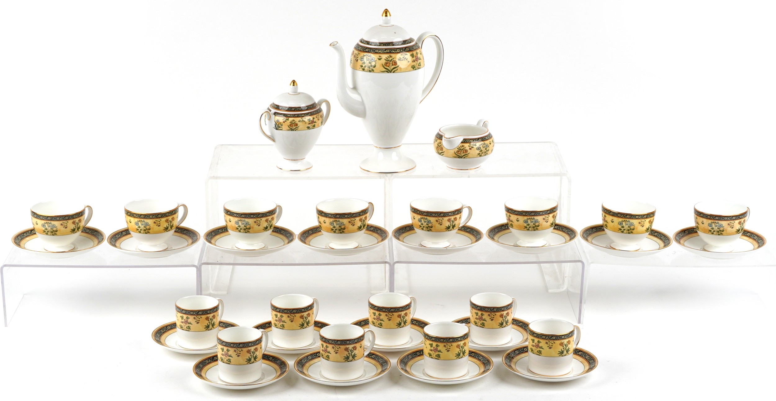 A Wedgwood India pattern eight place tea/coffee service including coffee pot, milk jug and sugar bowl, the coffee pot 24cm high.