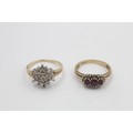 2 x 9ct gold vintage diamond dress cluster rings (6.5g) SIZE Q & O