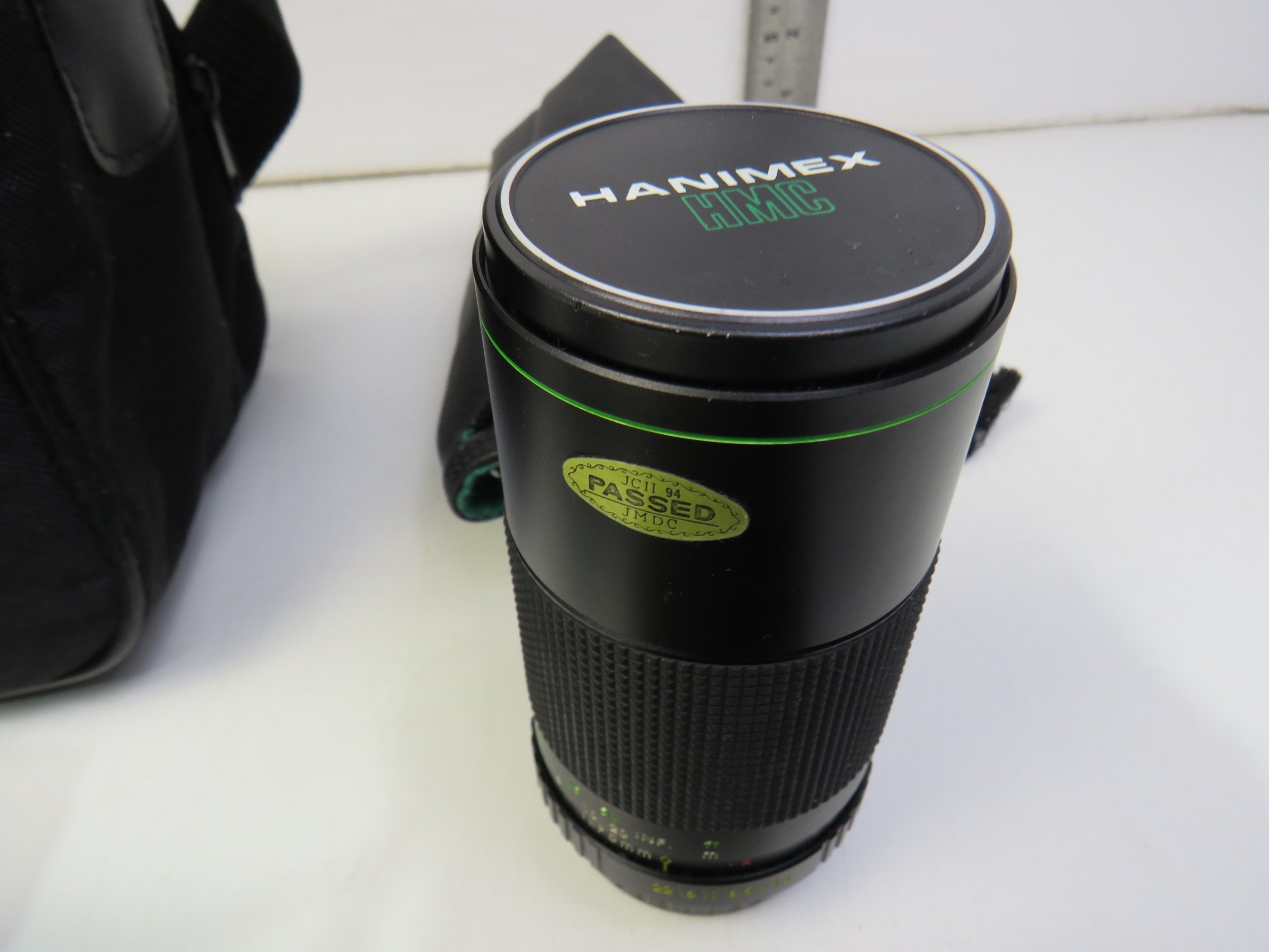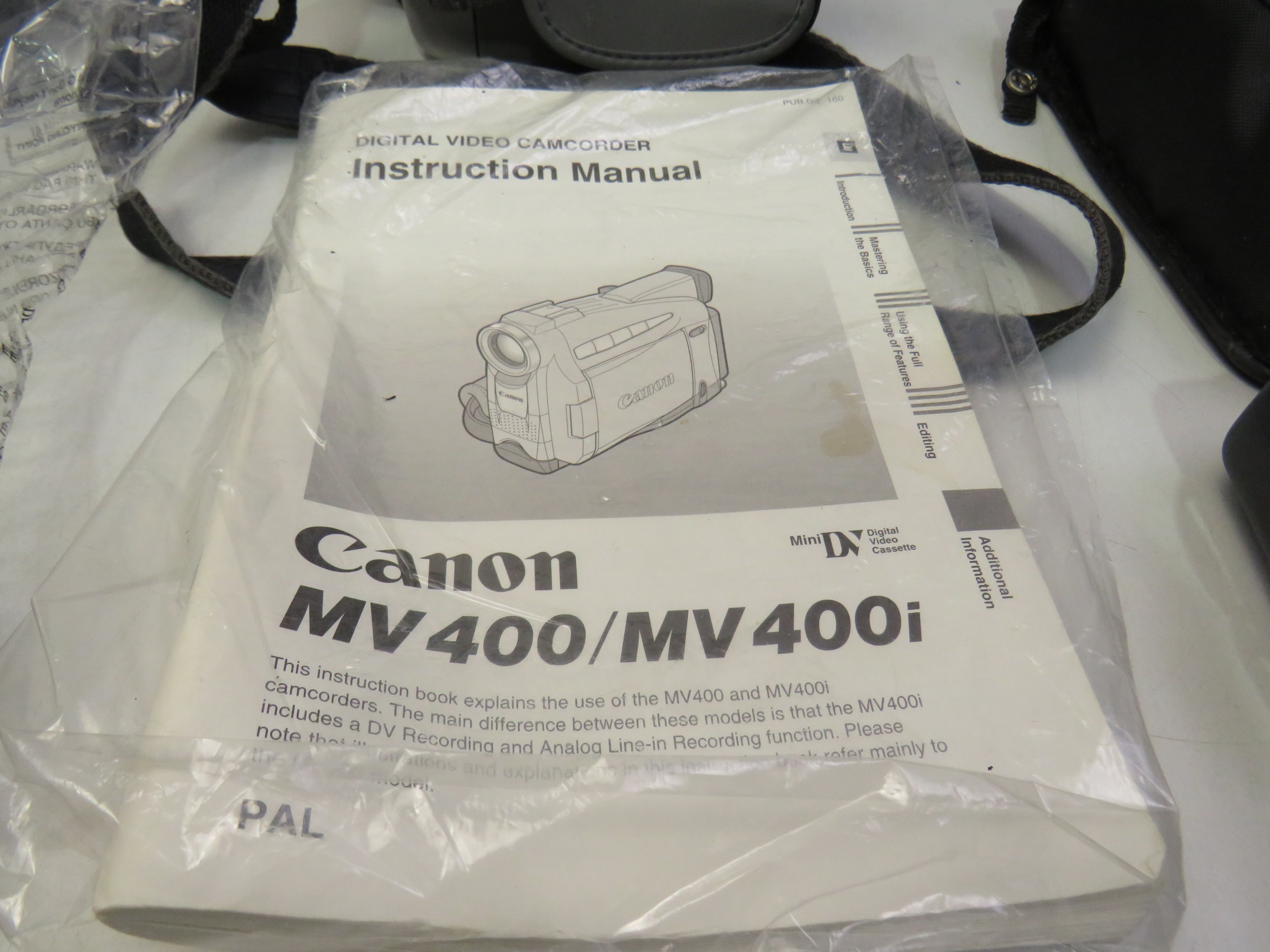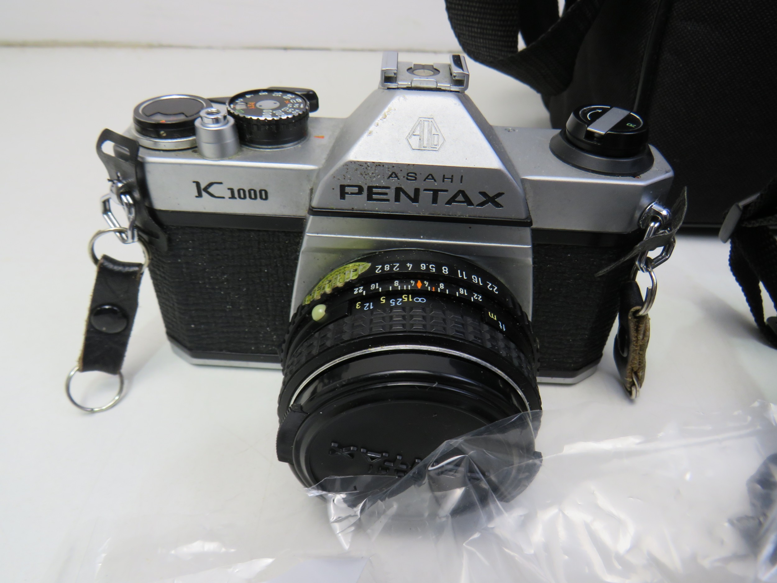 Assortment of cameras including Pentax slr camera, lens, light meter, camcorder, various instruction booklet
