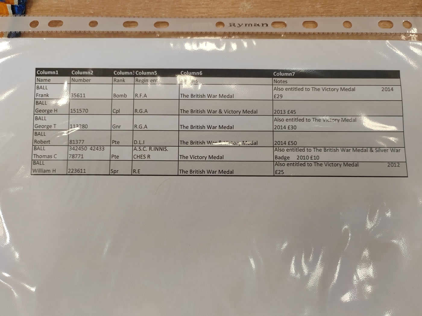 6. BWM to 223611 Spr. W.H. Ball. R.E. mixed condition with copies of medal rolls. Qty 8 (½B)