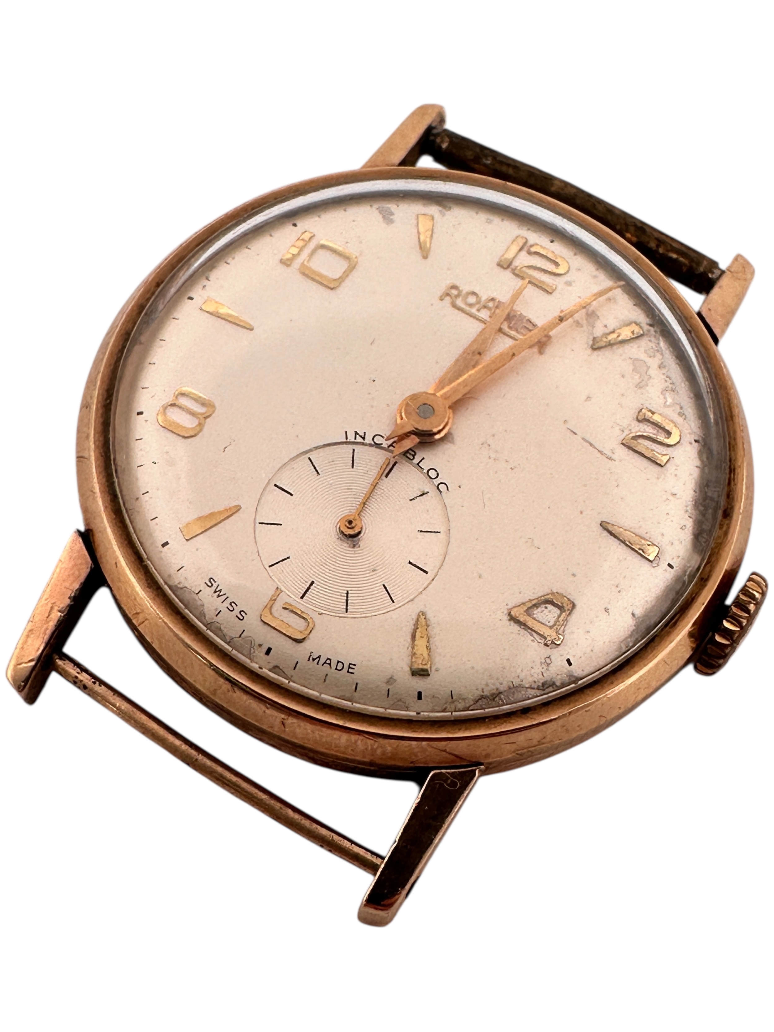 Nine Carat Gold Cased Gents Roamer watch, 20.7g gross weight. Ticking