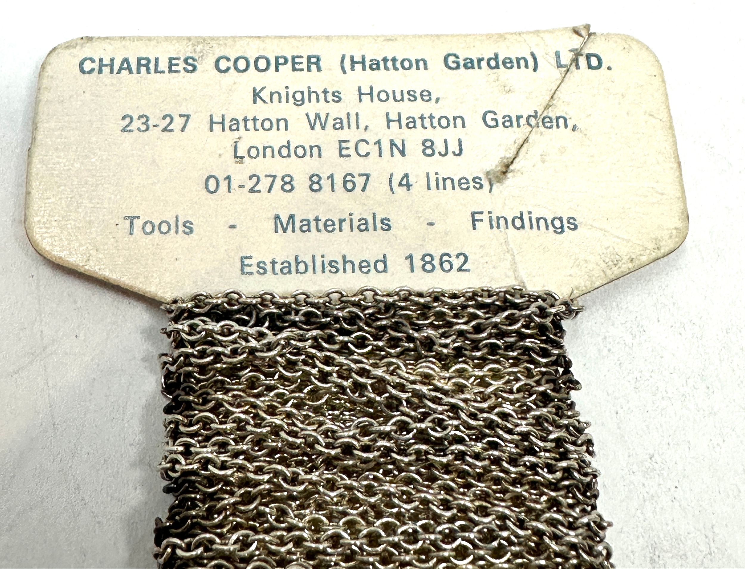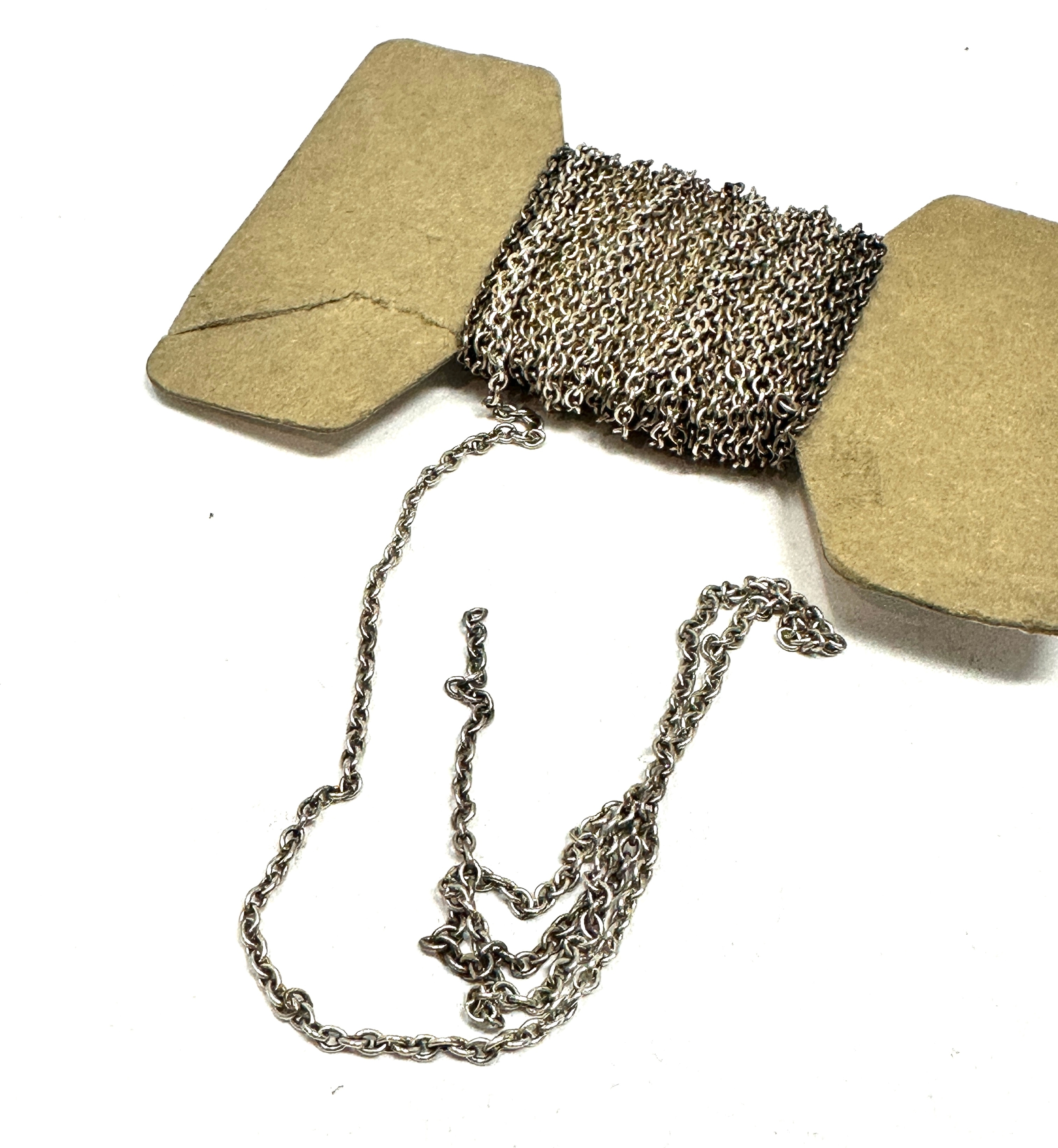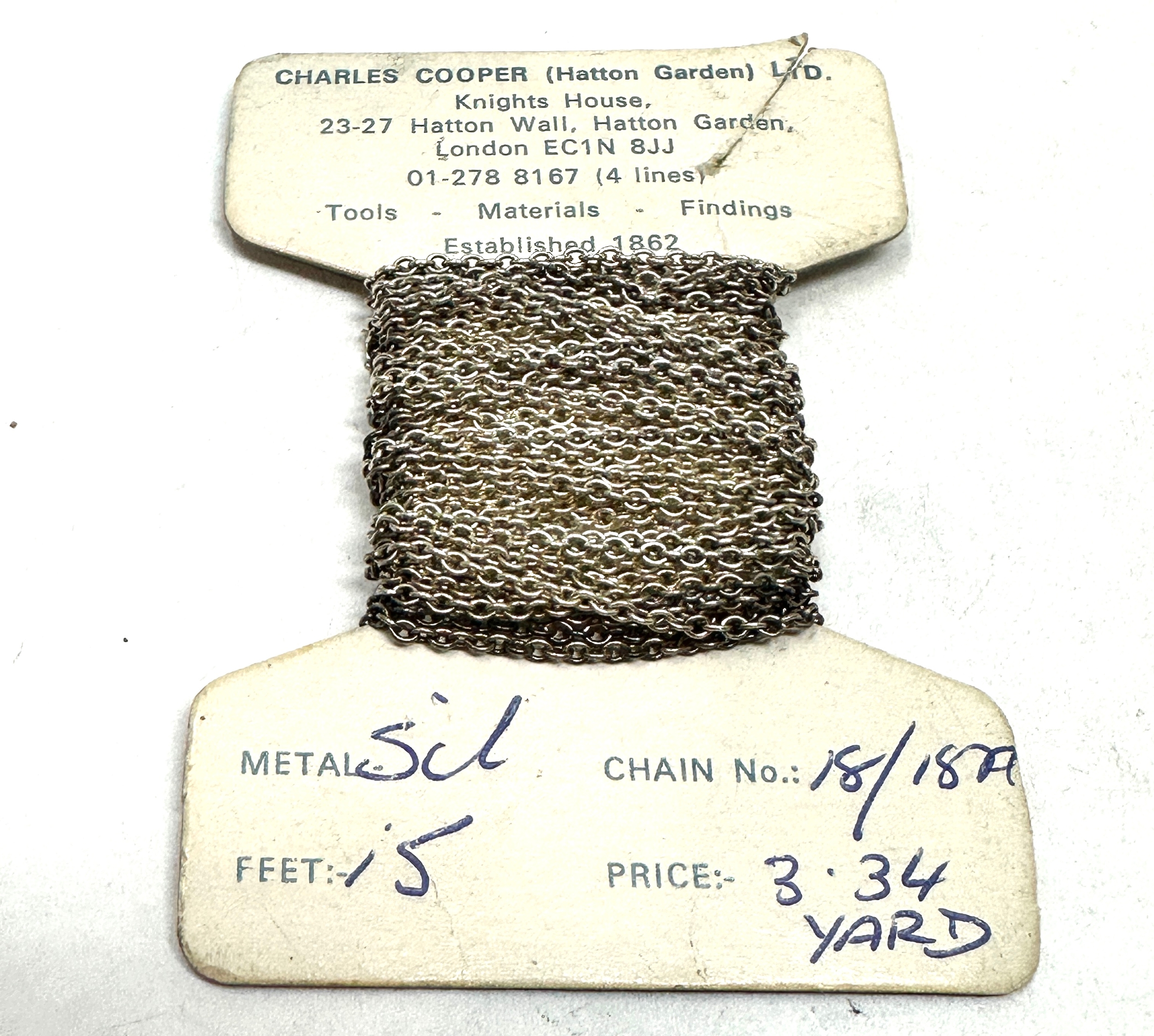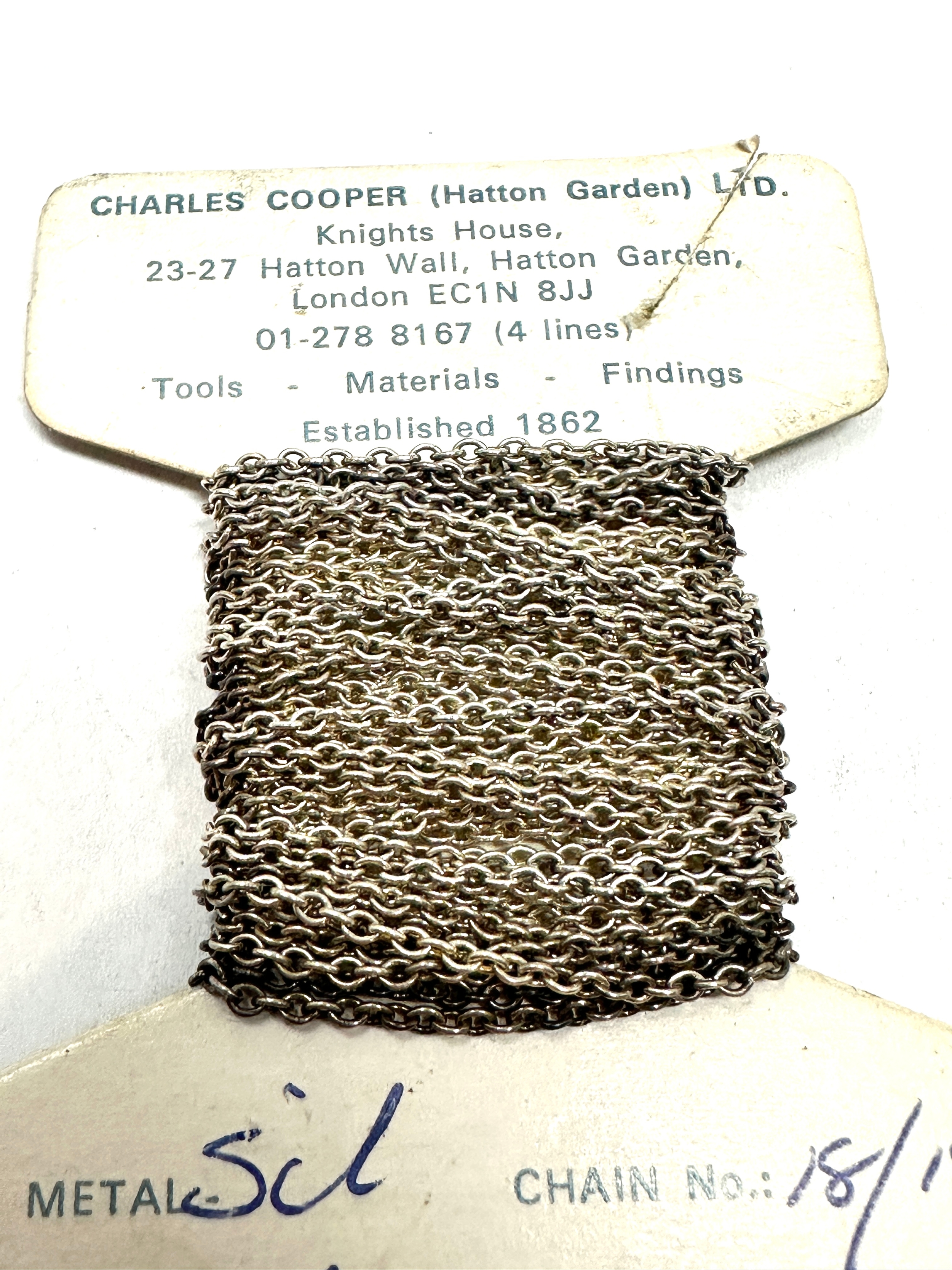 Original Vintage roll of silver chain on original card from charles cooper hatton garden who was established 1862