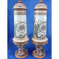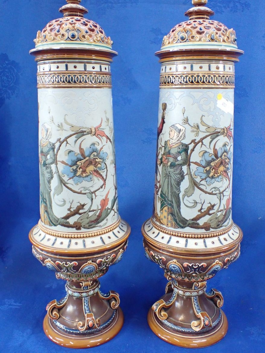 A PAIR OF METTLACH VASES AND COVERS decoration by Christian Warth (identical, non-opposing scenes) 50 cm high (both damaged)