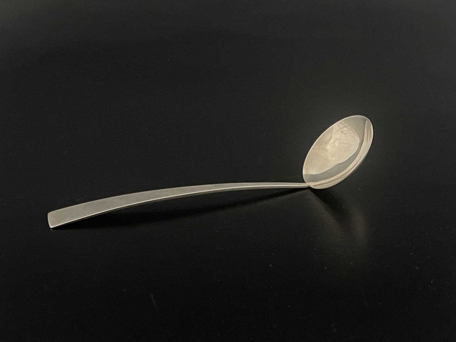 Howard Fenn, an Elizabeth II contemporary silver sauce ladle, with a tapered flat stem, London 2000, also struck with the millennium hallmark, ensuite with a certificate signed by the maker, length 19.3cm, weight 66g/2.12ozt approx