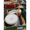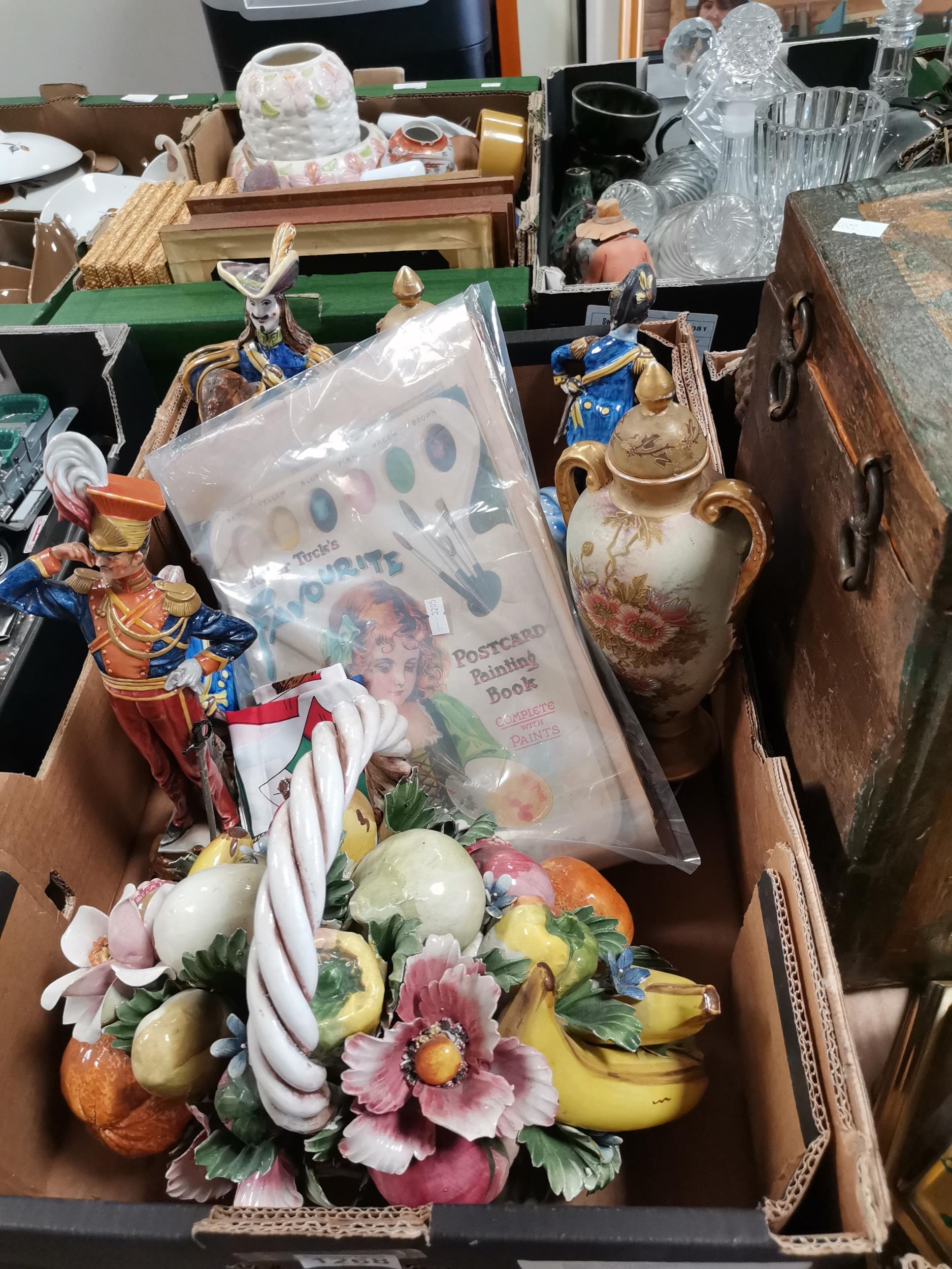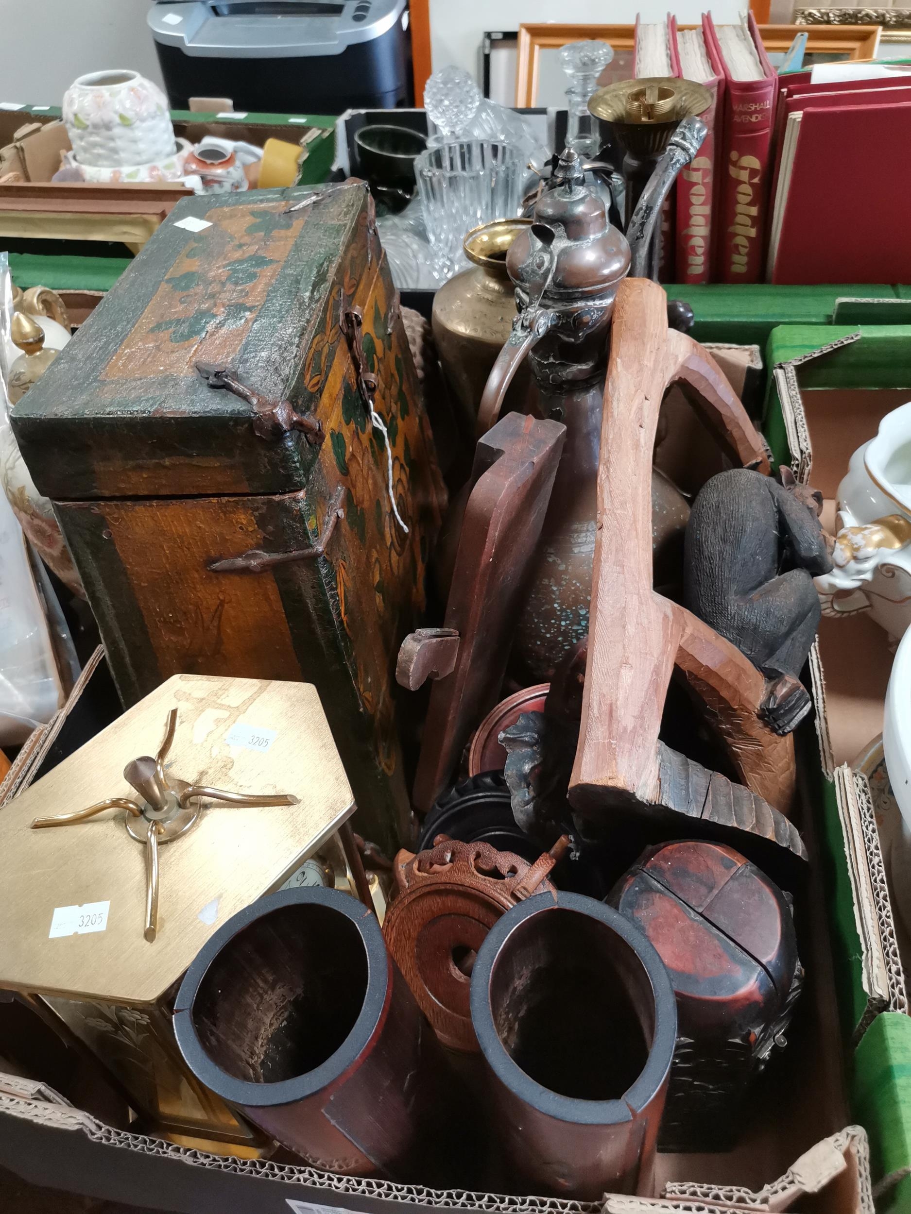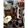 A collection of interesting misc items including Chinese wood brush pots, soldier figures, wooden vase bases, brass and copper items etc