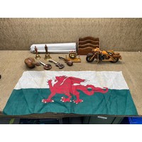 Vintage AirFix kit part done, Scrap books, toy cars, pewter trains and a maglite torch and the outline of history by HG miles and a USSR telescope and tripod.