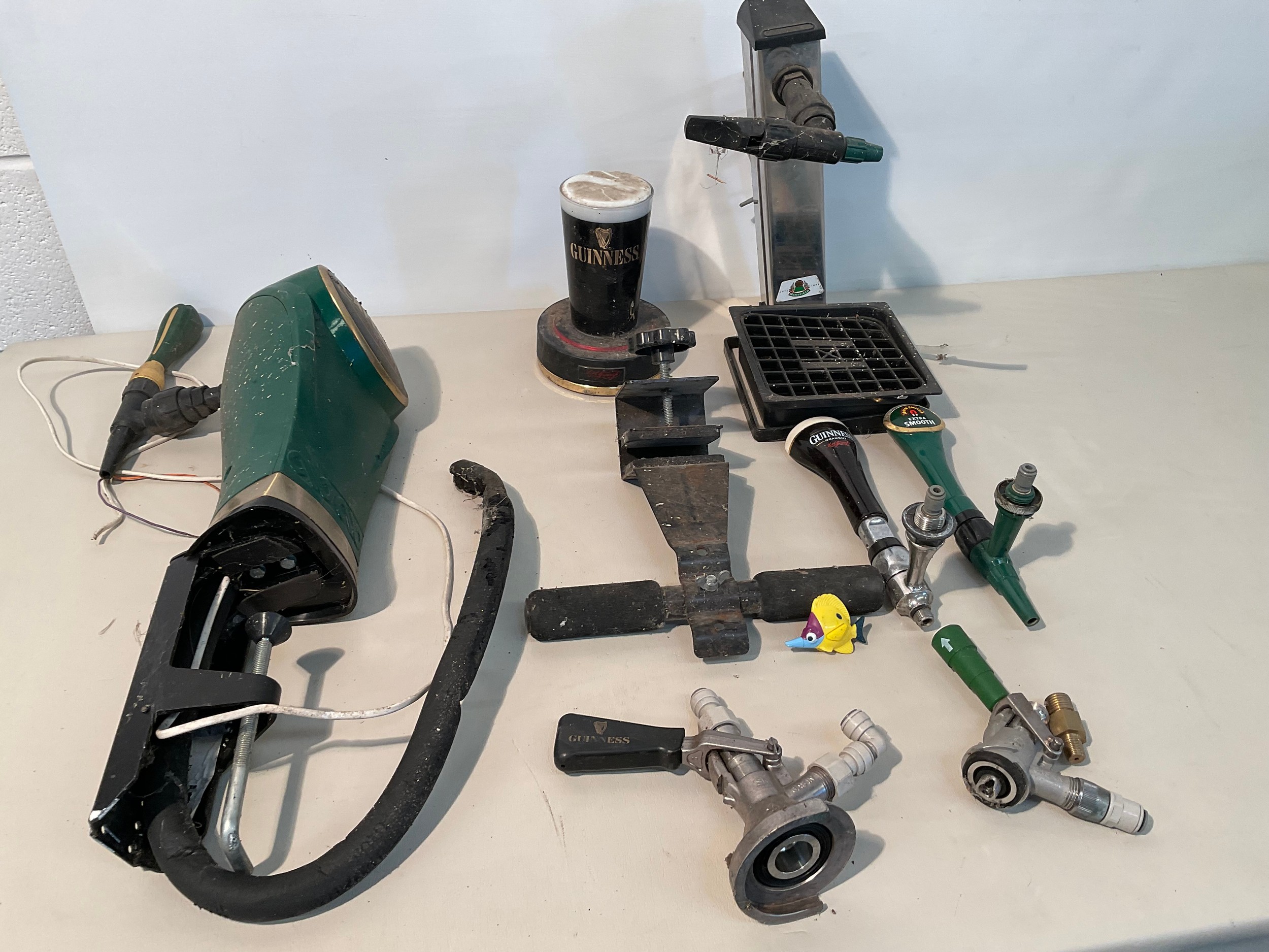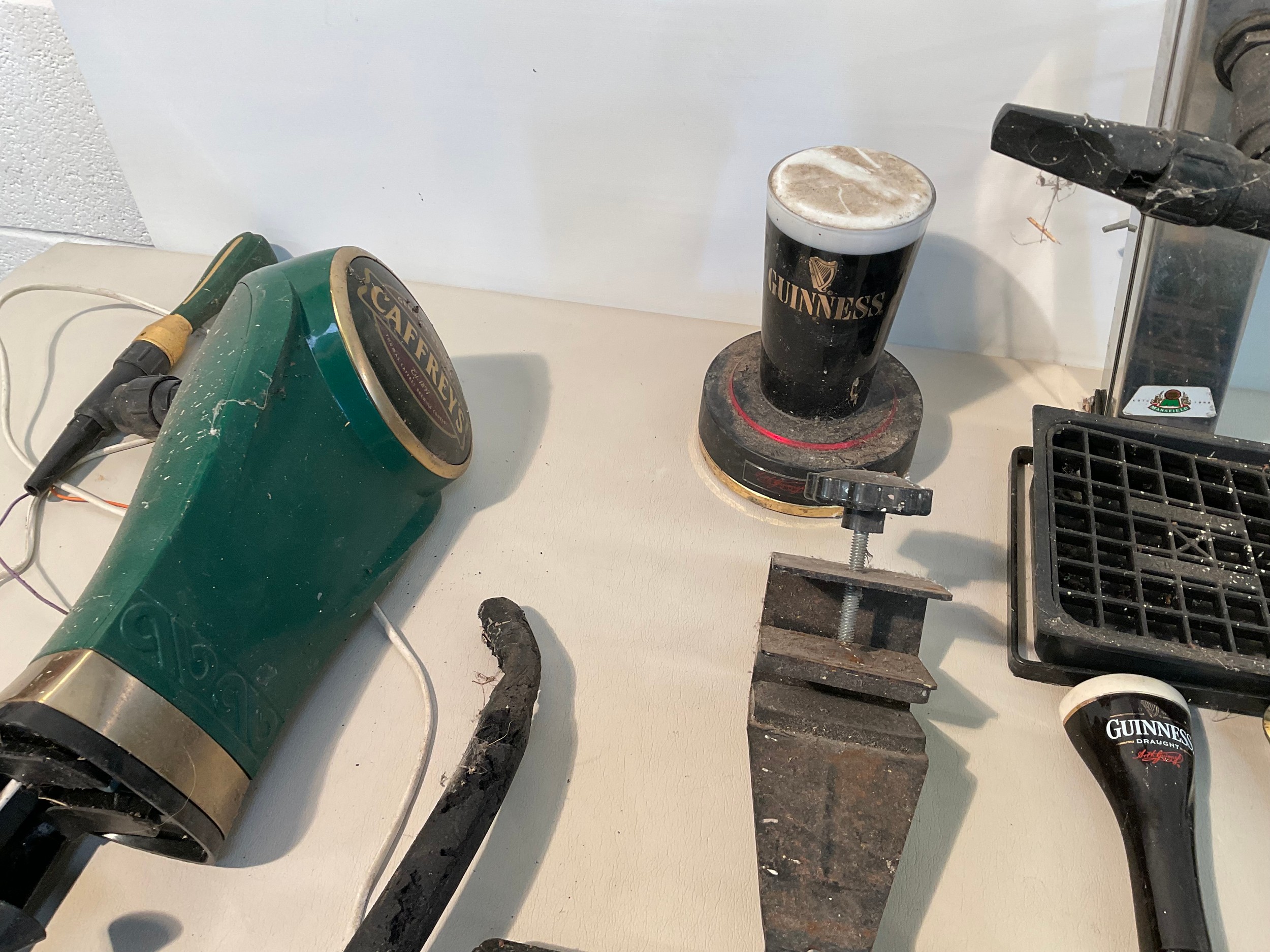 CRATE OF BEER PUMPS GUINESS ETC