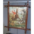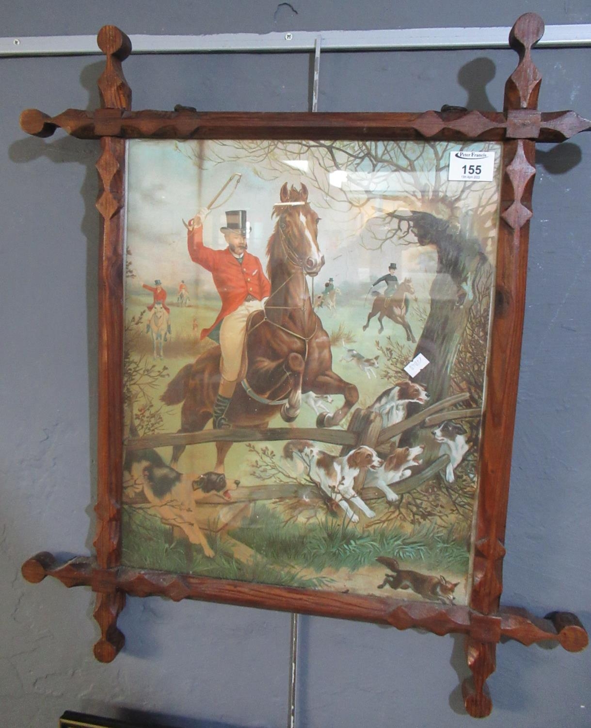 Coloured print, fox hunting scene in Gothic design pine frame.(B.P. 21% + VAT)