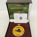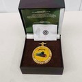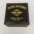 Flying Scotsman Bradford Exchange commemorative pocket watch 100 mph limited edition, gold-tone with intricate detailing, is presented in original display box with certificates.