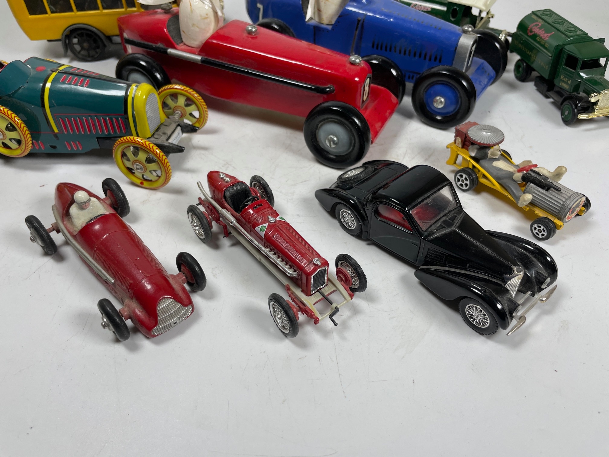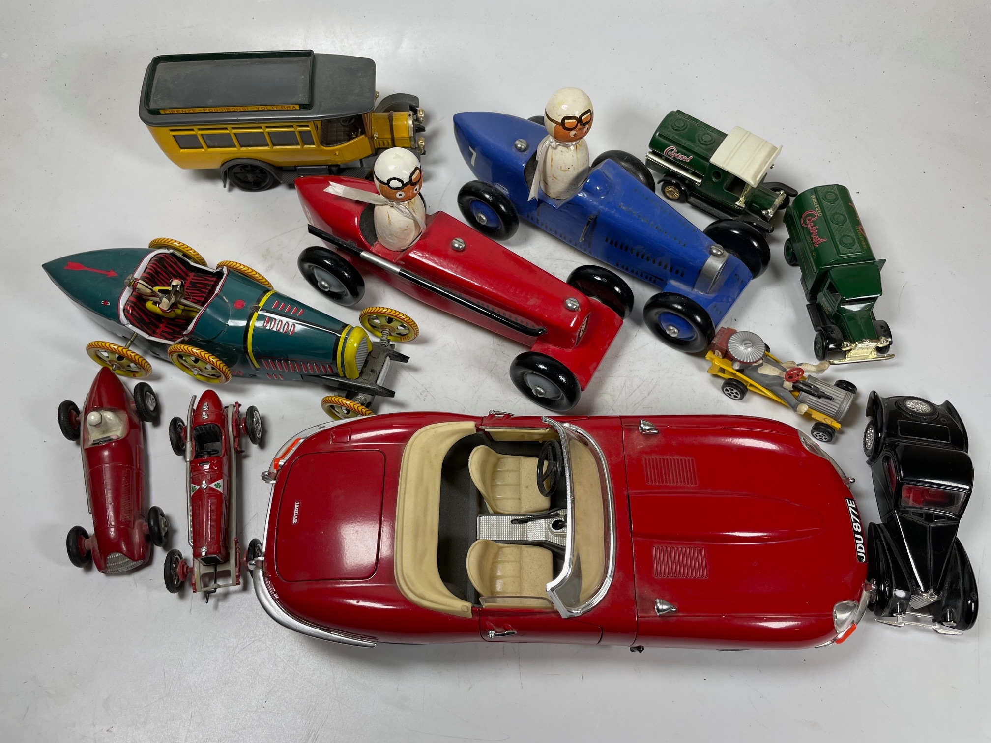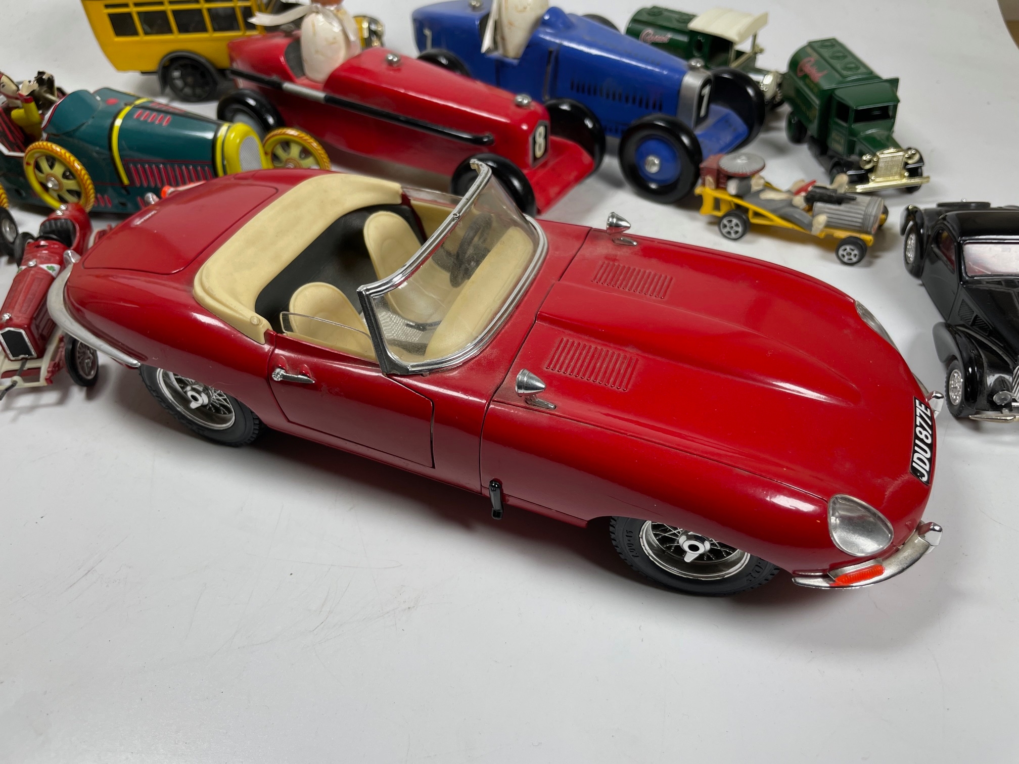 Qty of Vintage & Sports Car Models, Burago Jaguar E Type, Tin Plate Bugatti, Etc