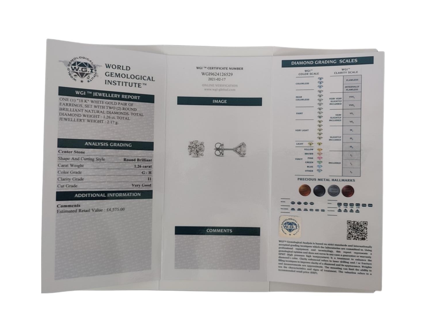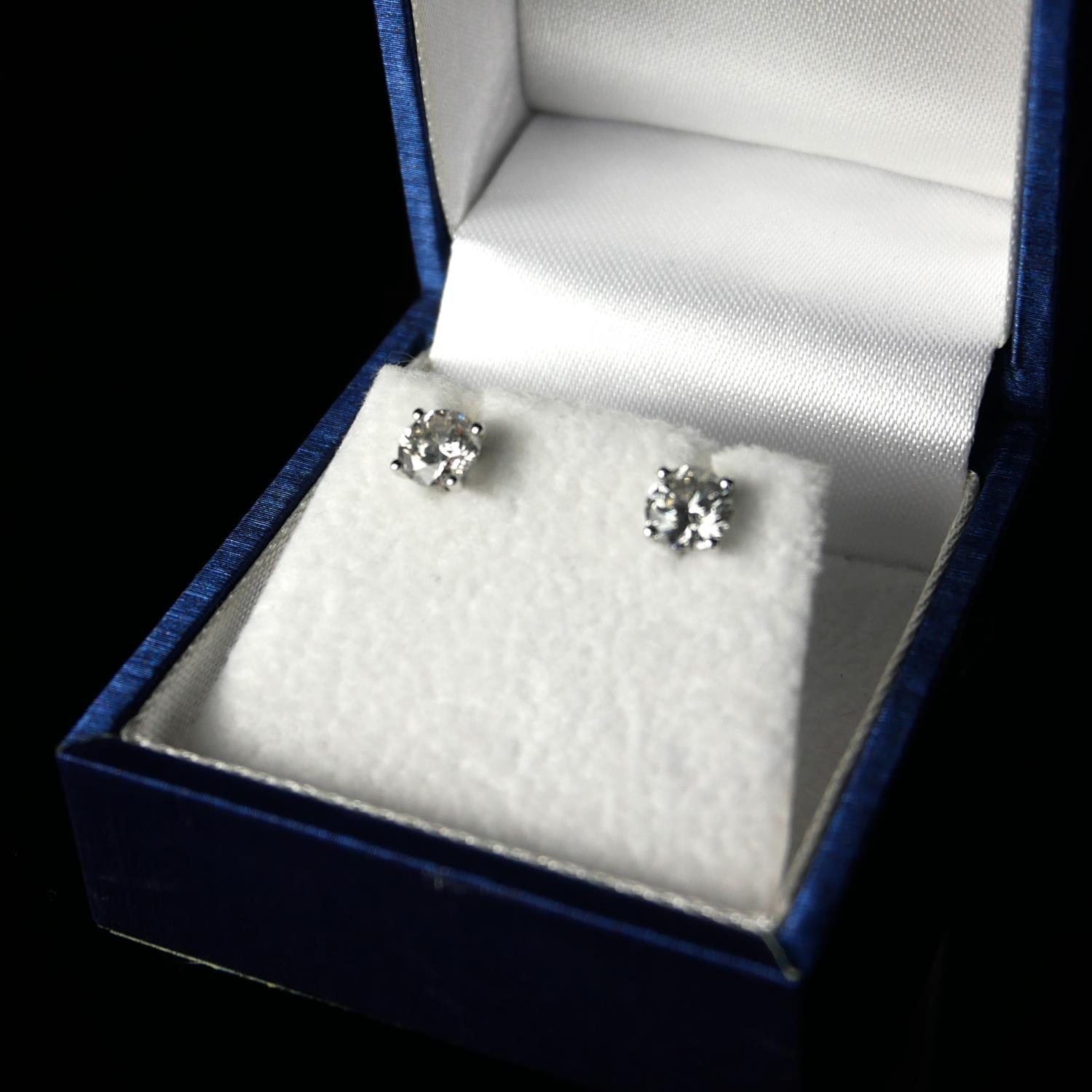 A PAIR OF 18CT WHITE GOLD AND ROUND BRILLIANT CUT DIAMOND STUDS