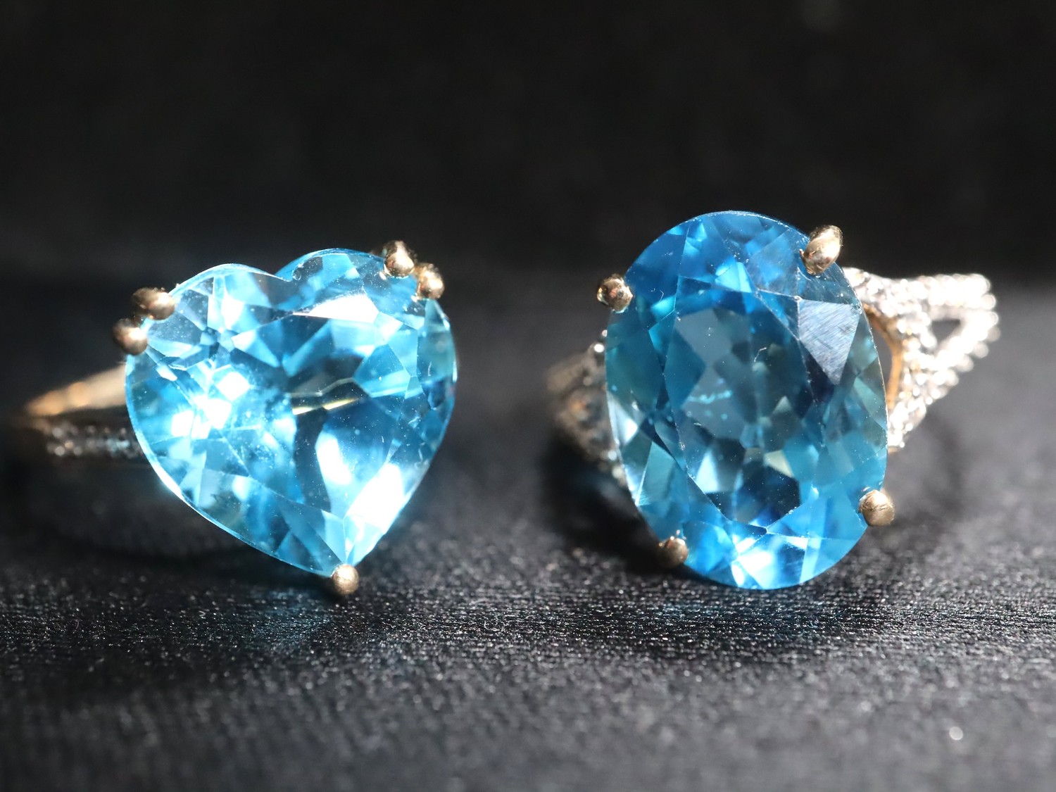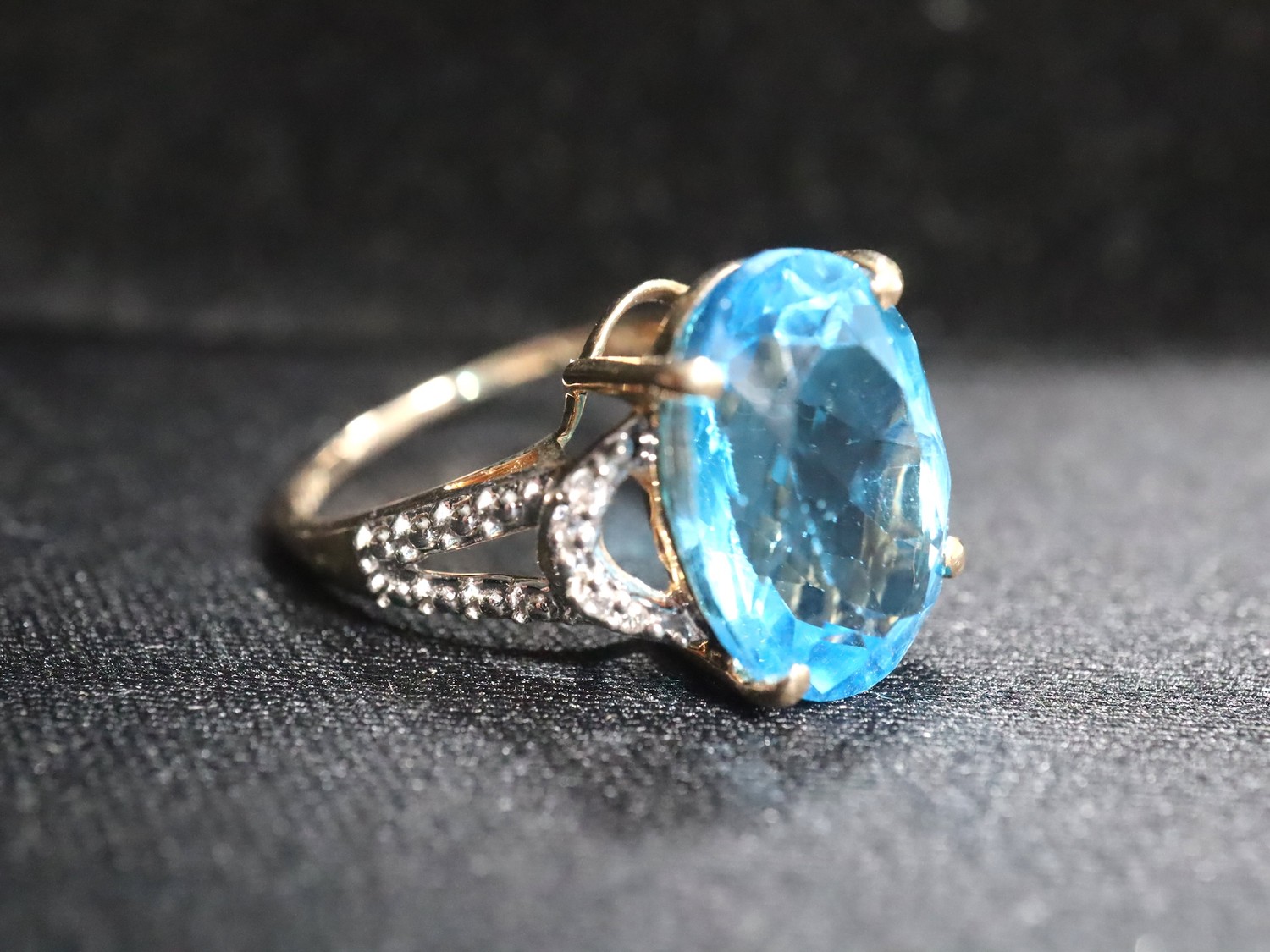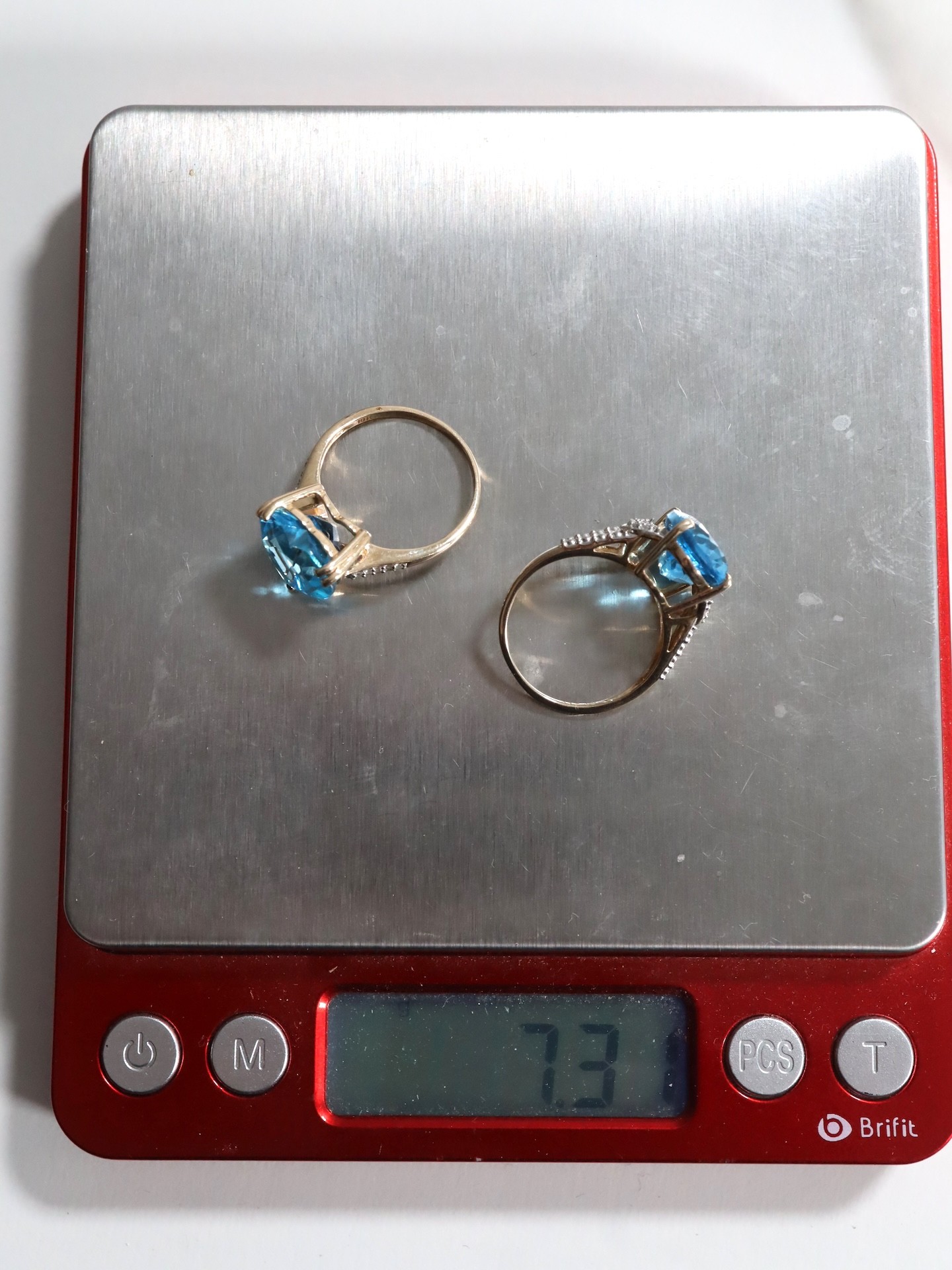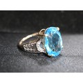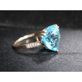 Swiss Blue Topaz & White Zircon 9K Gold Ring 7.55ct Size N-O & Swiss Blue Topaz & White Zircon 9K Gold Ring 7.13ct Size N-O -7.3g