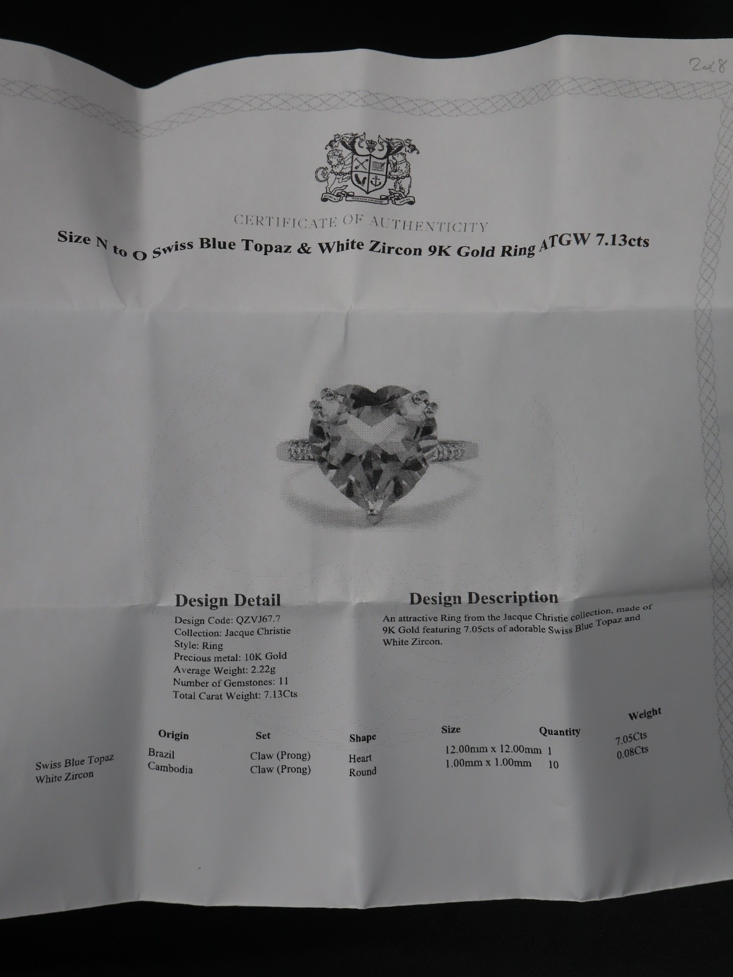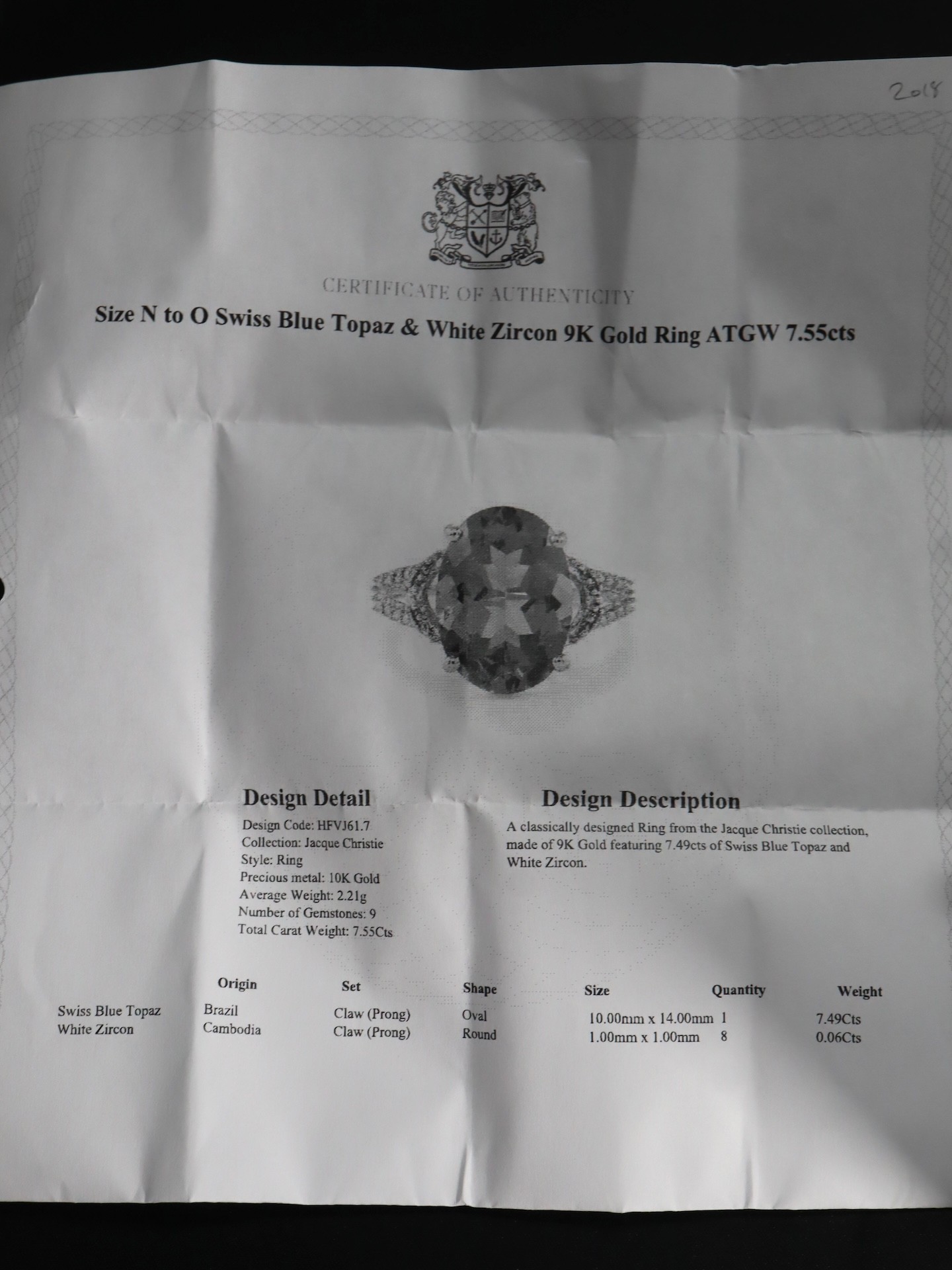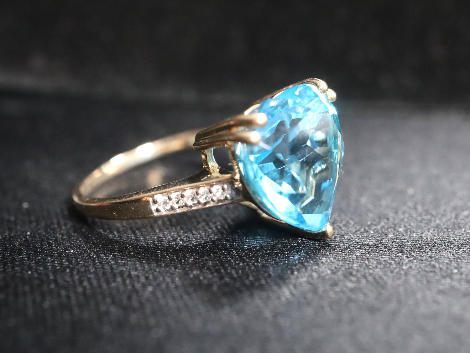 Swiss Blue Topaz & White Zircon 9K Gold Ring 7.55ct Size N-O & Swiss Blue Topaz & White Zircon 9K Gold Ring 7.13ct Size N-O -7.3g