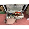 A Pine Tool Box with Tools, hammer, file, screwdriver etc, together with an oval-shaped wall mirror (2).