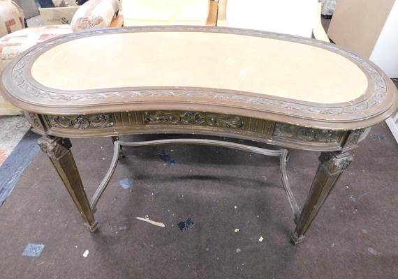 Kidney shaped carved regency style writing desk