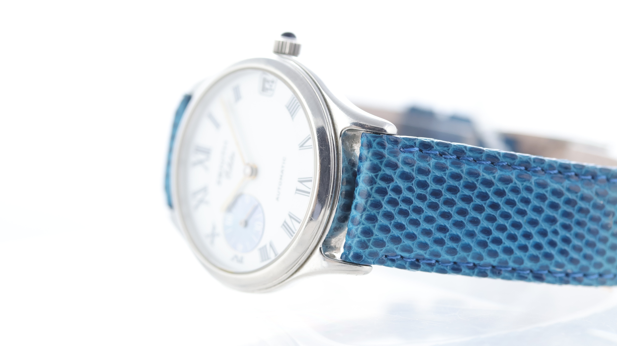 Dial features: Roman numerals, black pearl subsidiary seconds dial, date aperture