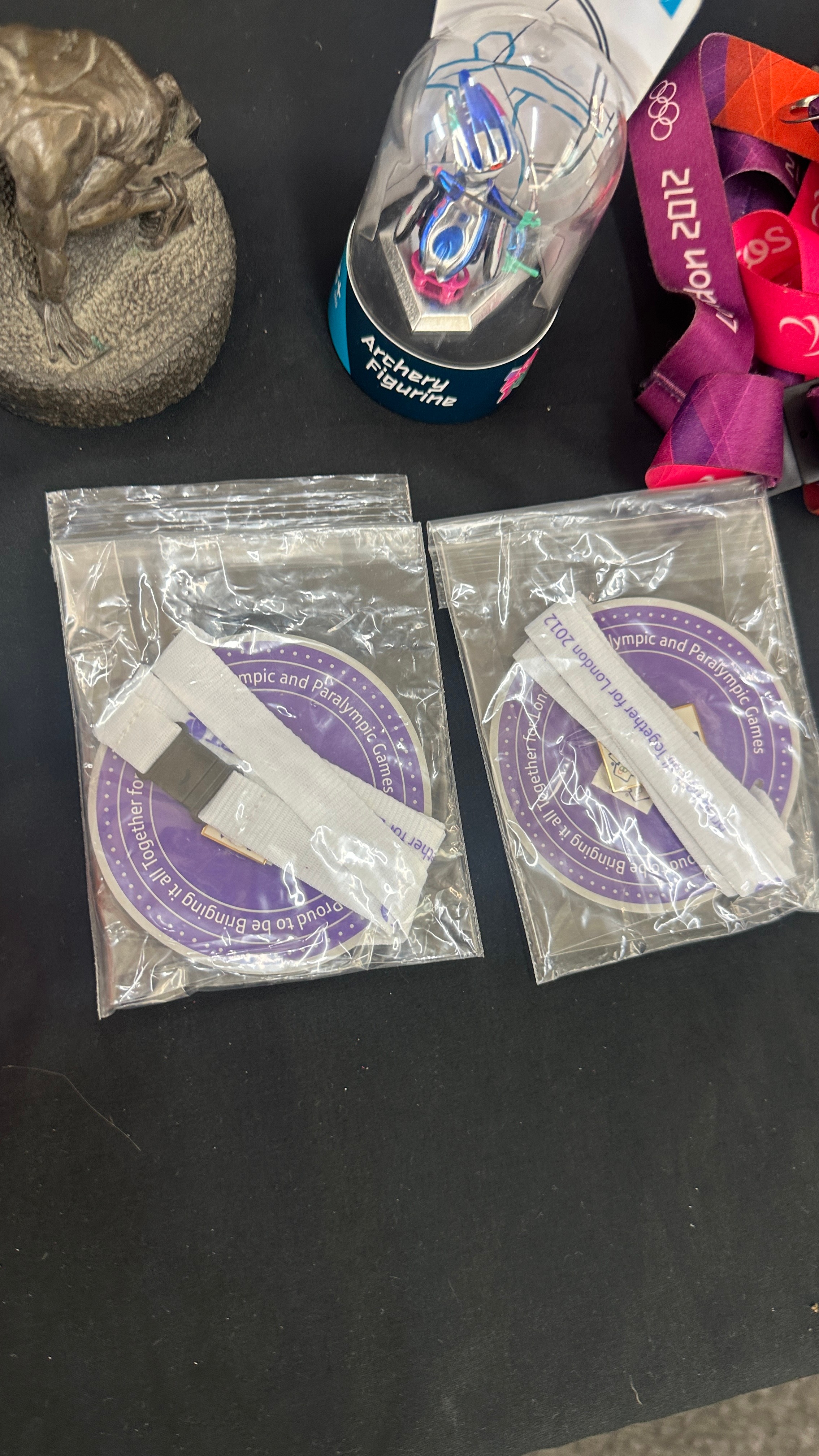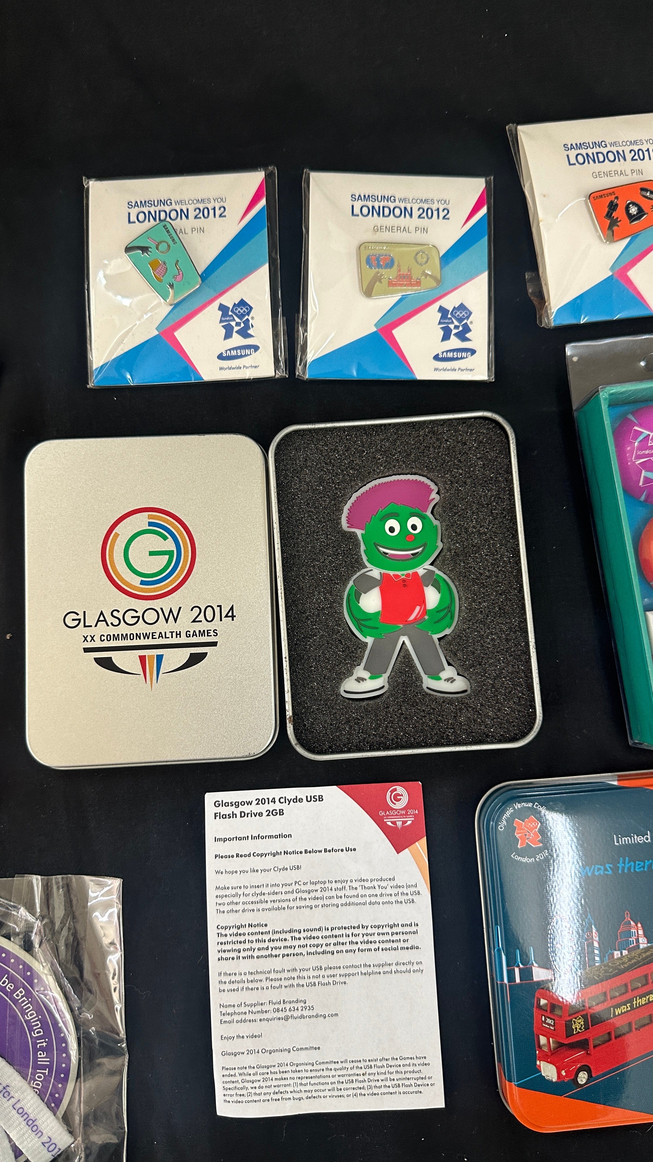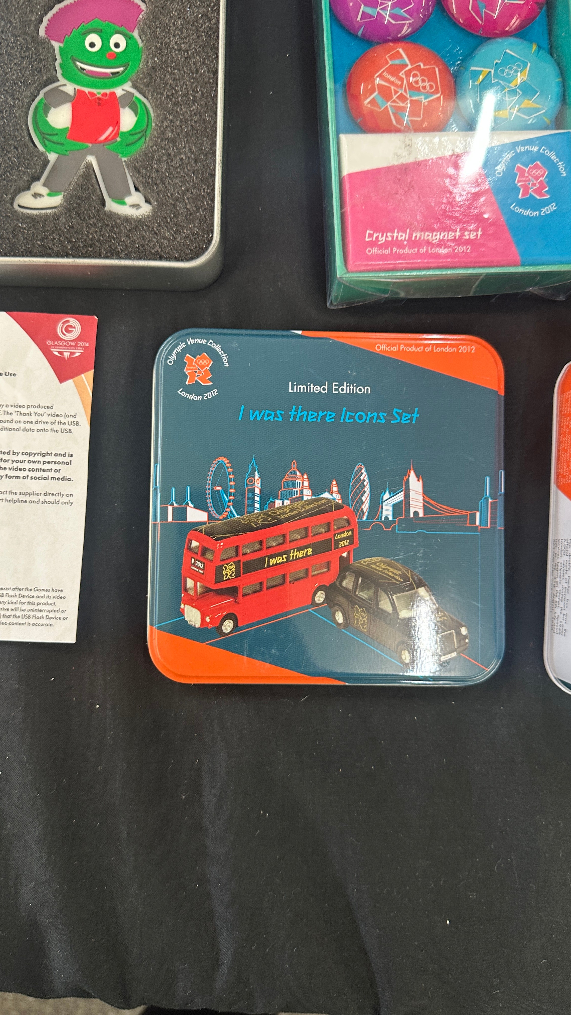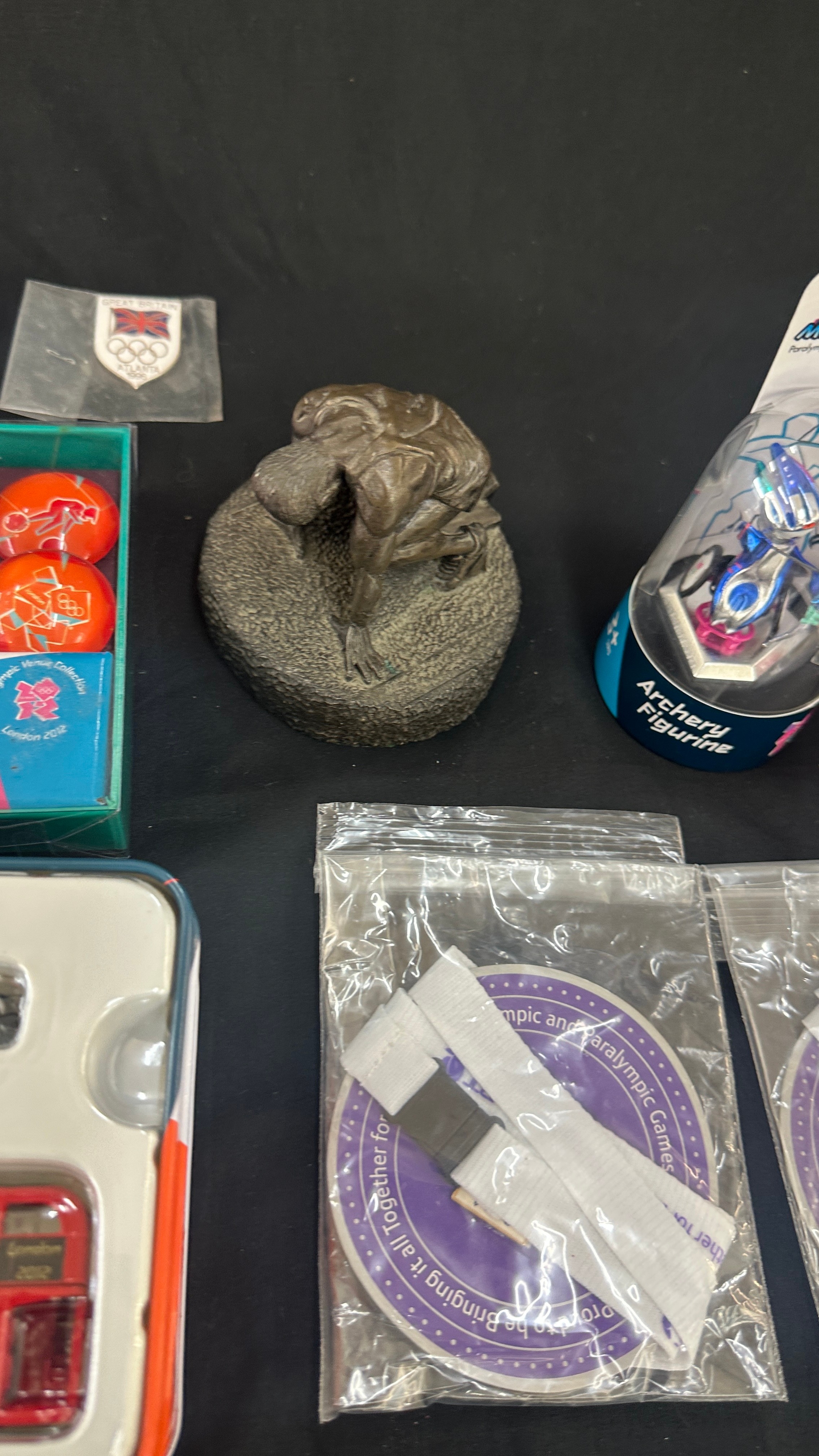 Selection of Olympic collectors items to include badges, magnets, die cast vehicle, etc