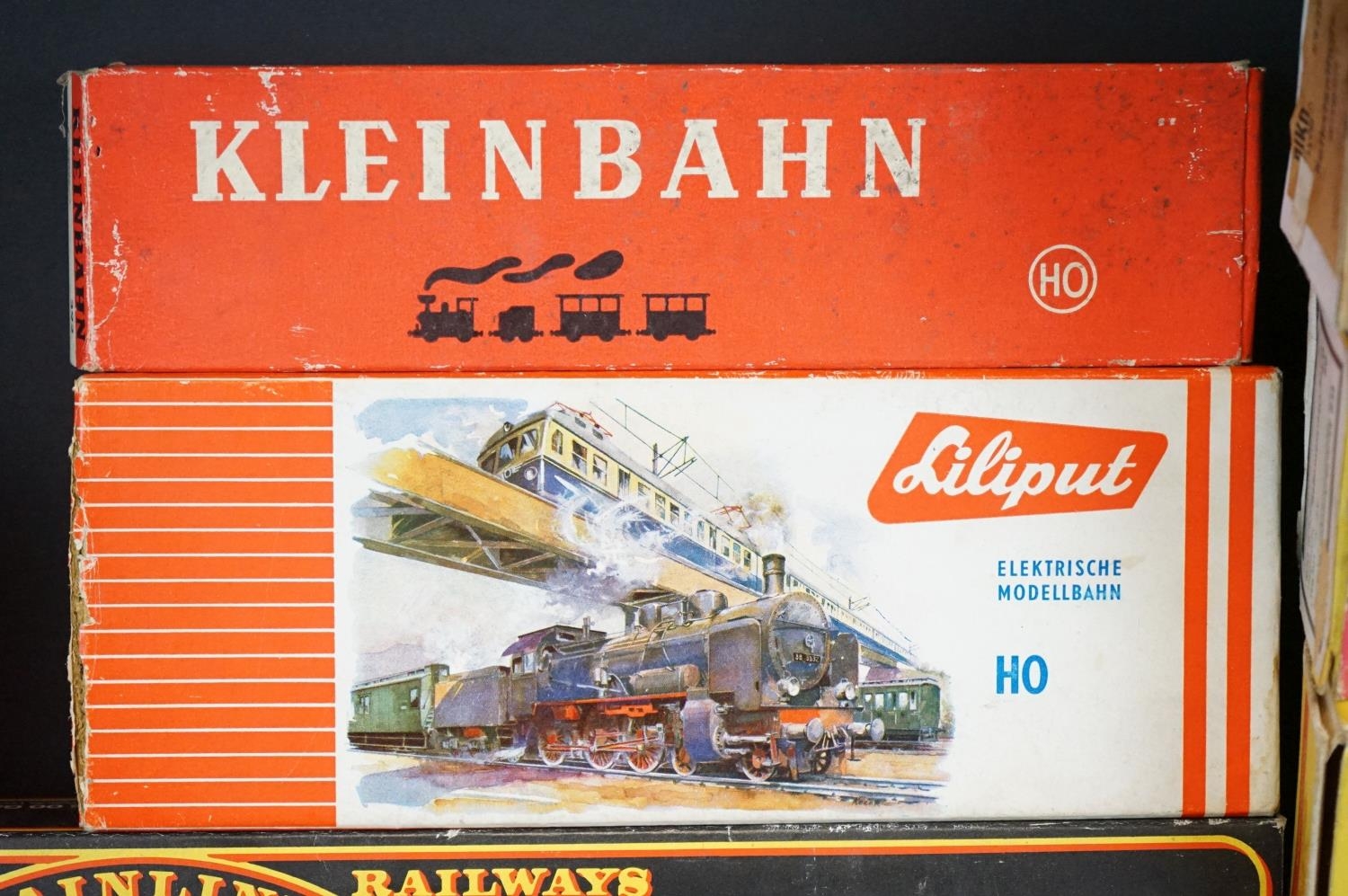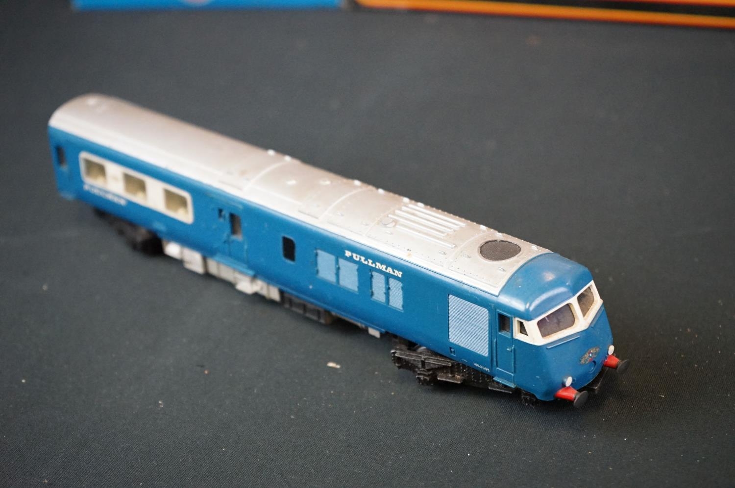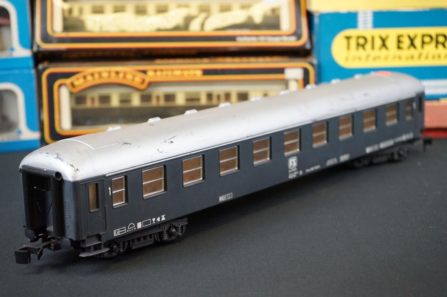 Quantity of OO / HO gauge model railway to include boxed Trix Express International 2447, 3 x boxed Liliput locomotives (1 x a/f), 7 x boxed items of rolling stock, Triang Pullman locomotive etc plus an O gauge Lima coach