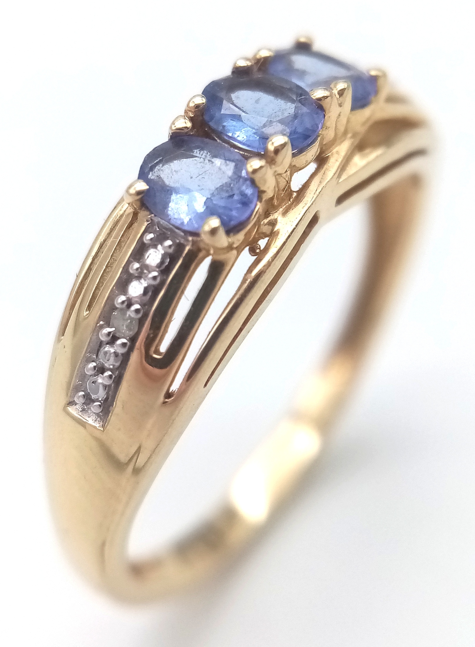 Fully hallmarked 14 CARAT GOLD TANZANITE RING .2.40 Grams.Size O 1/2 - P.