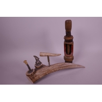 Five stylised studio pottery vases, tallest 13", and a Bassano pottery vase