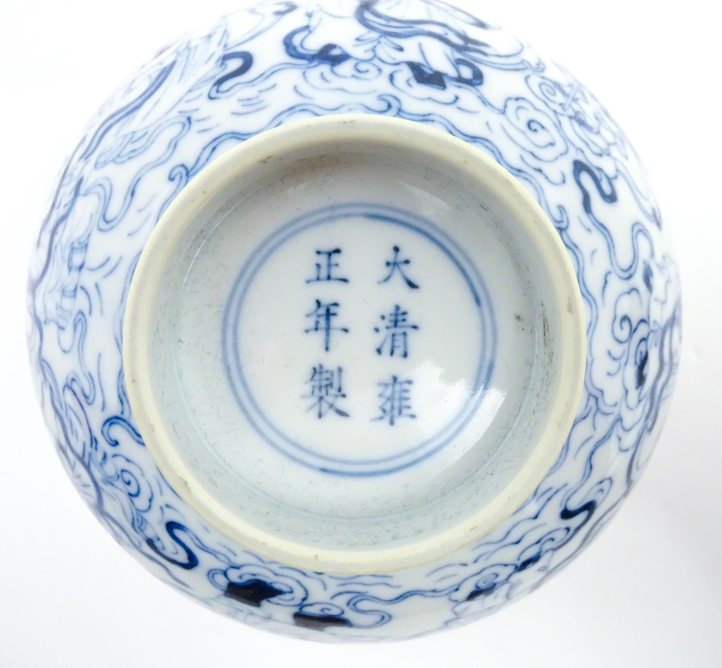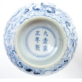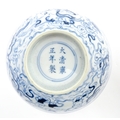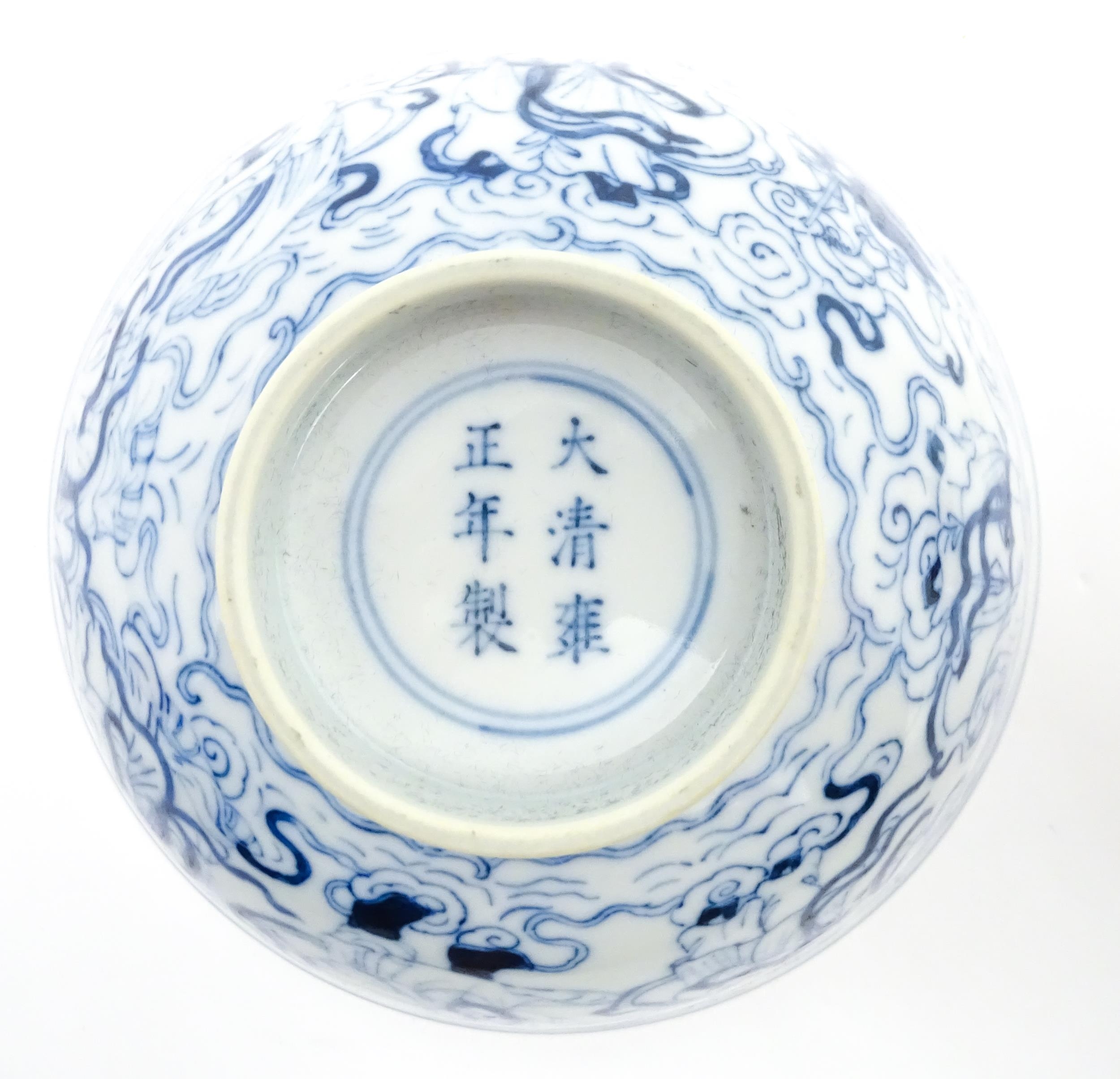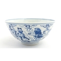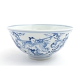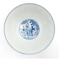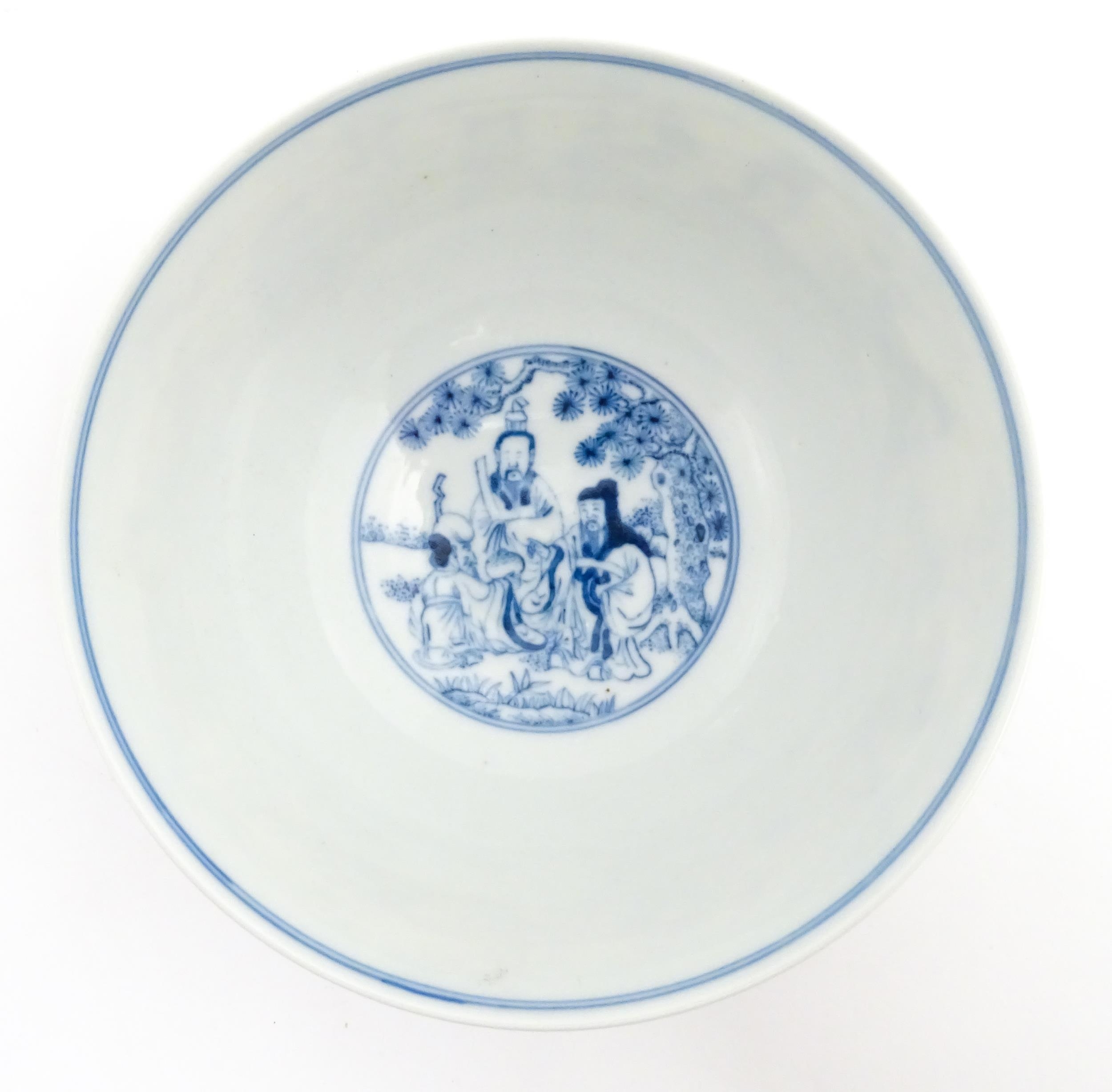 A Chinese blue and white bowl decorated with the Eight Immortals. Character marks under. Approx. 3" high x 6 1/4" wide