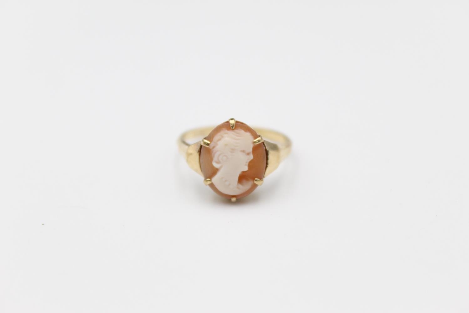 A 9ct gold shell cameo ring, size M - approx. gross weight 1.7 grams