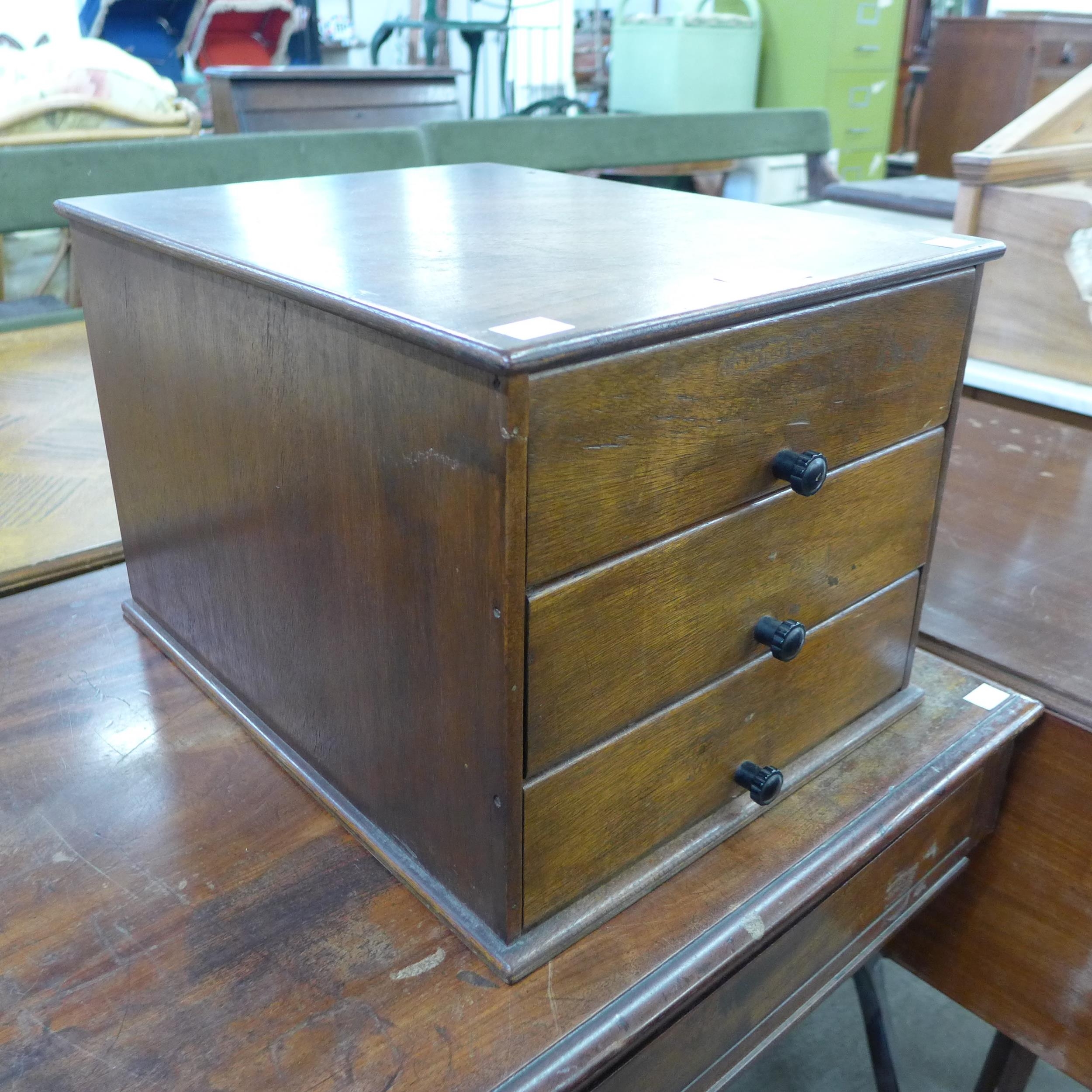 An early/mid 20th Century beech counter top haberdashery cabinet
