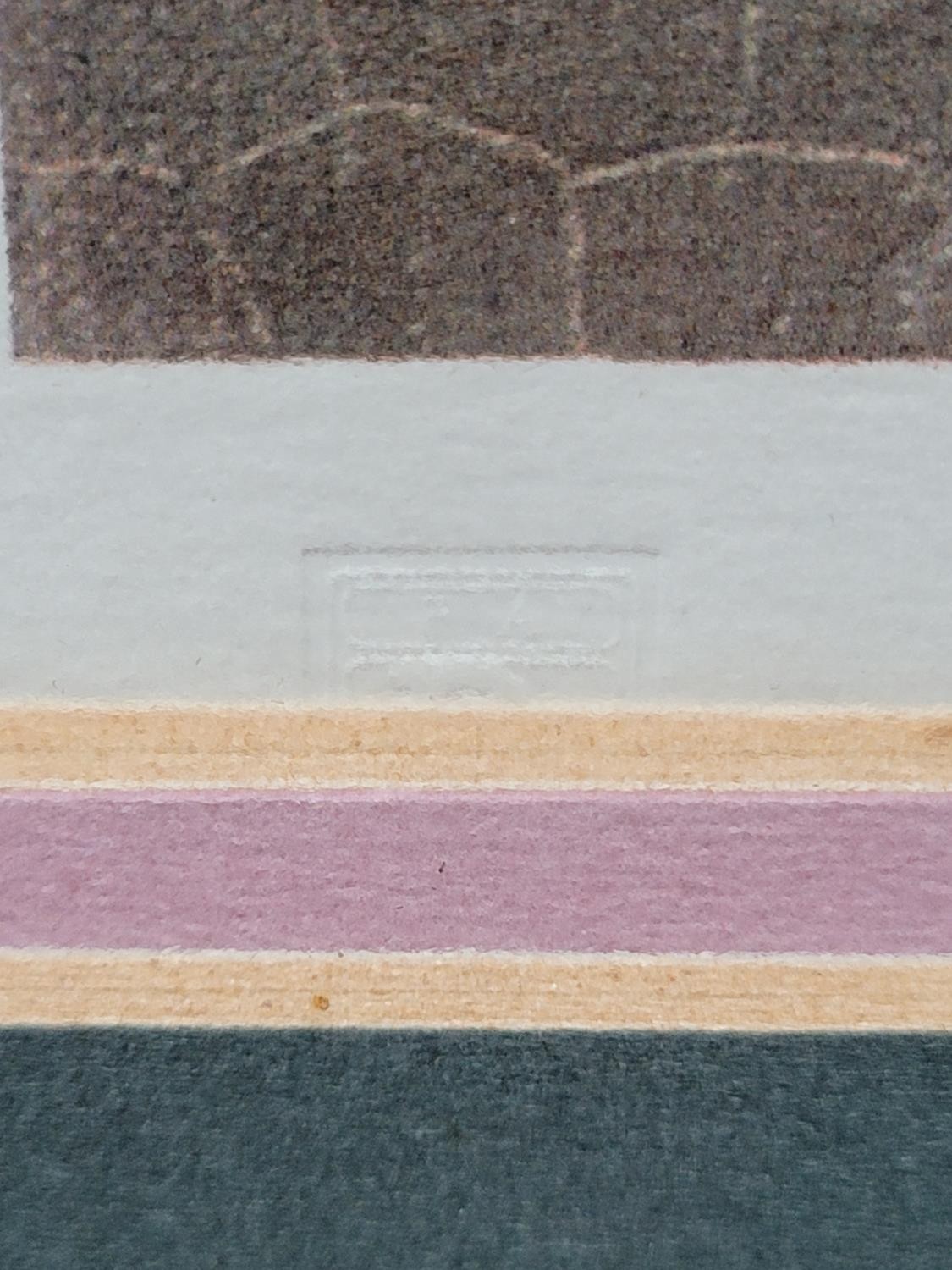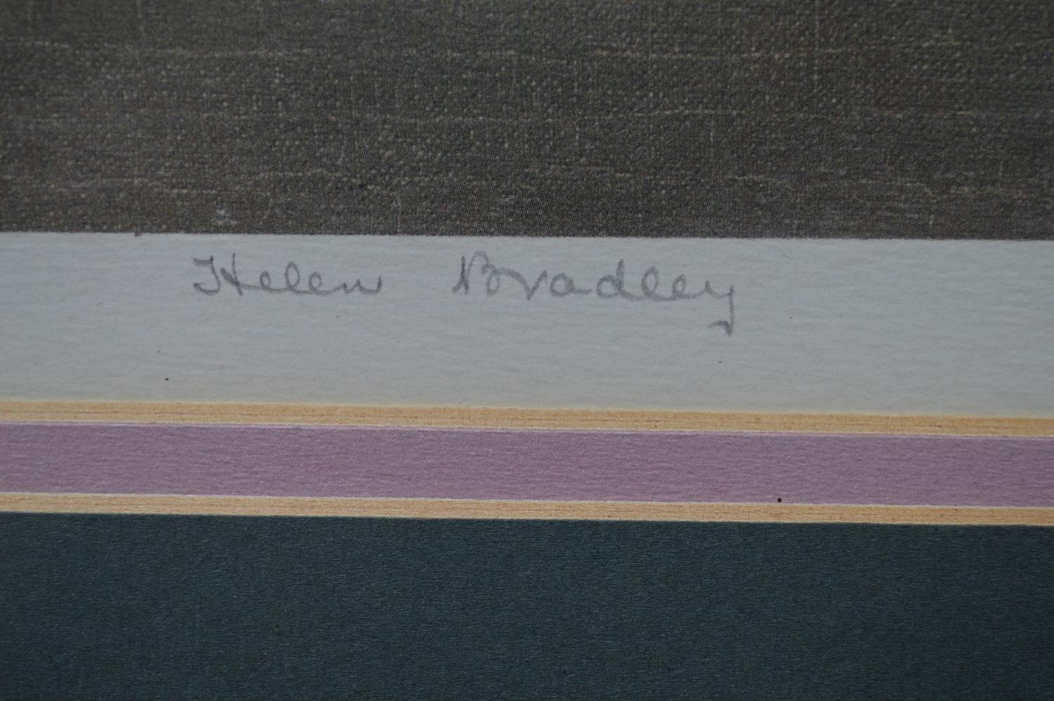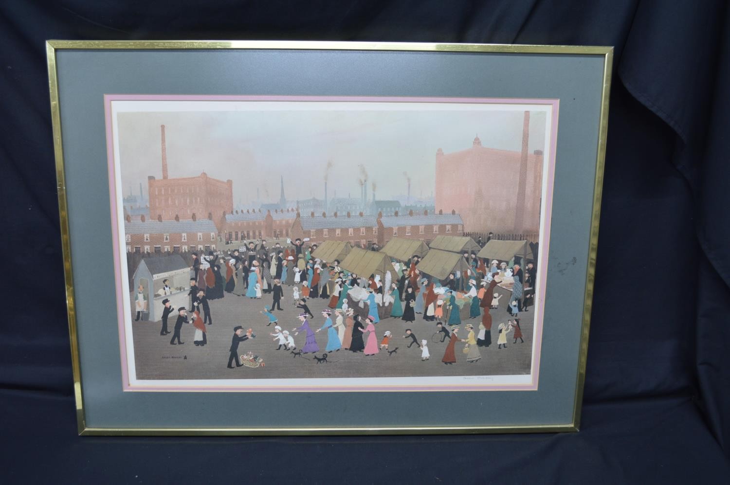 Helen Bradley, coloured print of a market scene, signed in pencil bottom right and blind stamp bottom left, in glazed gilt frame - 28" x 19.25"