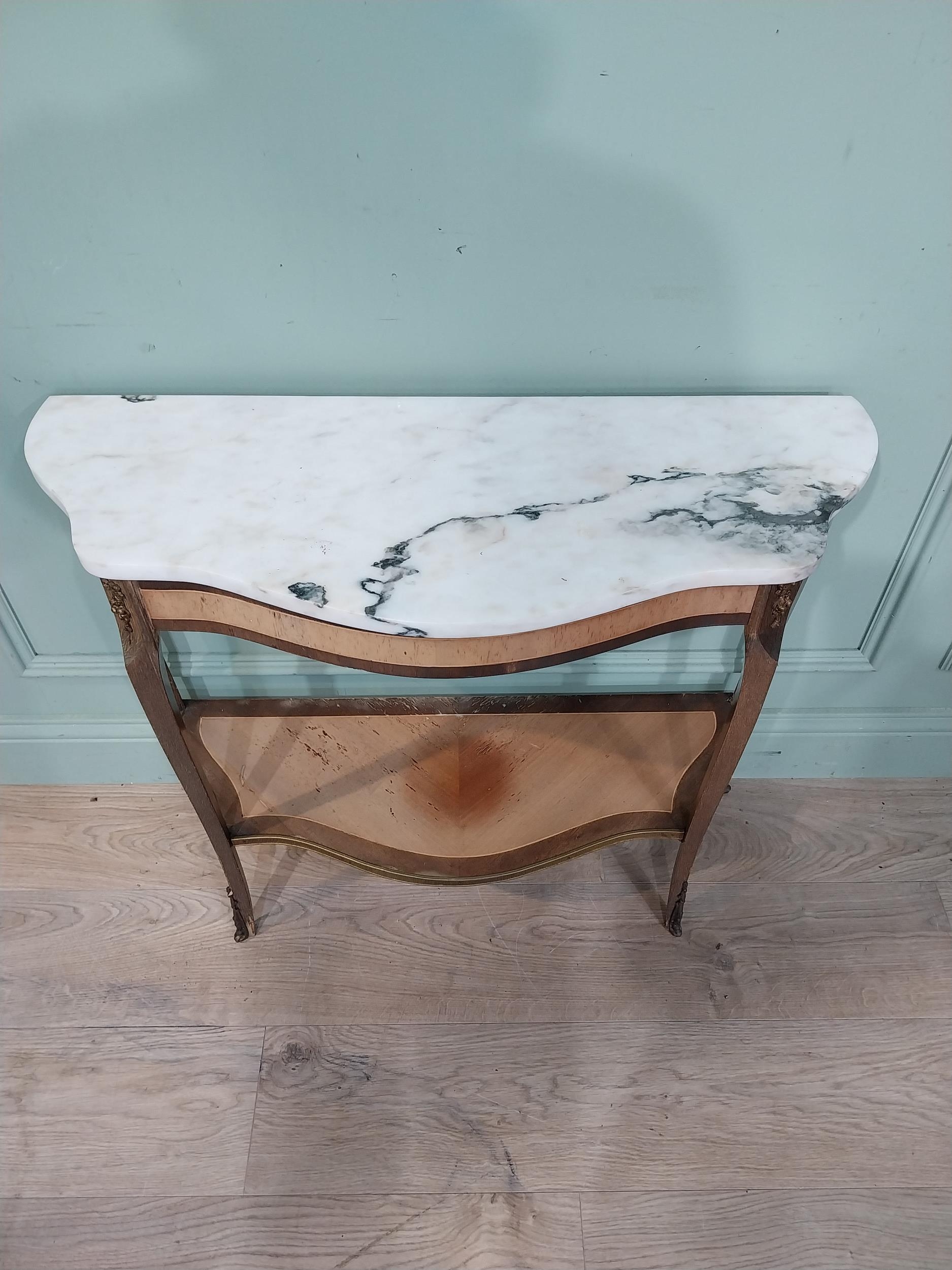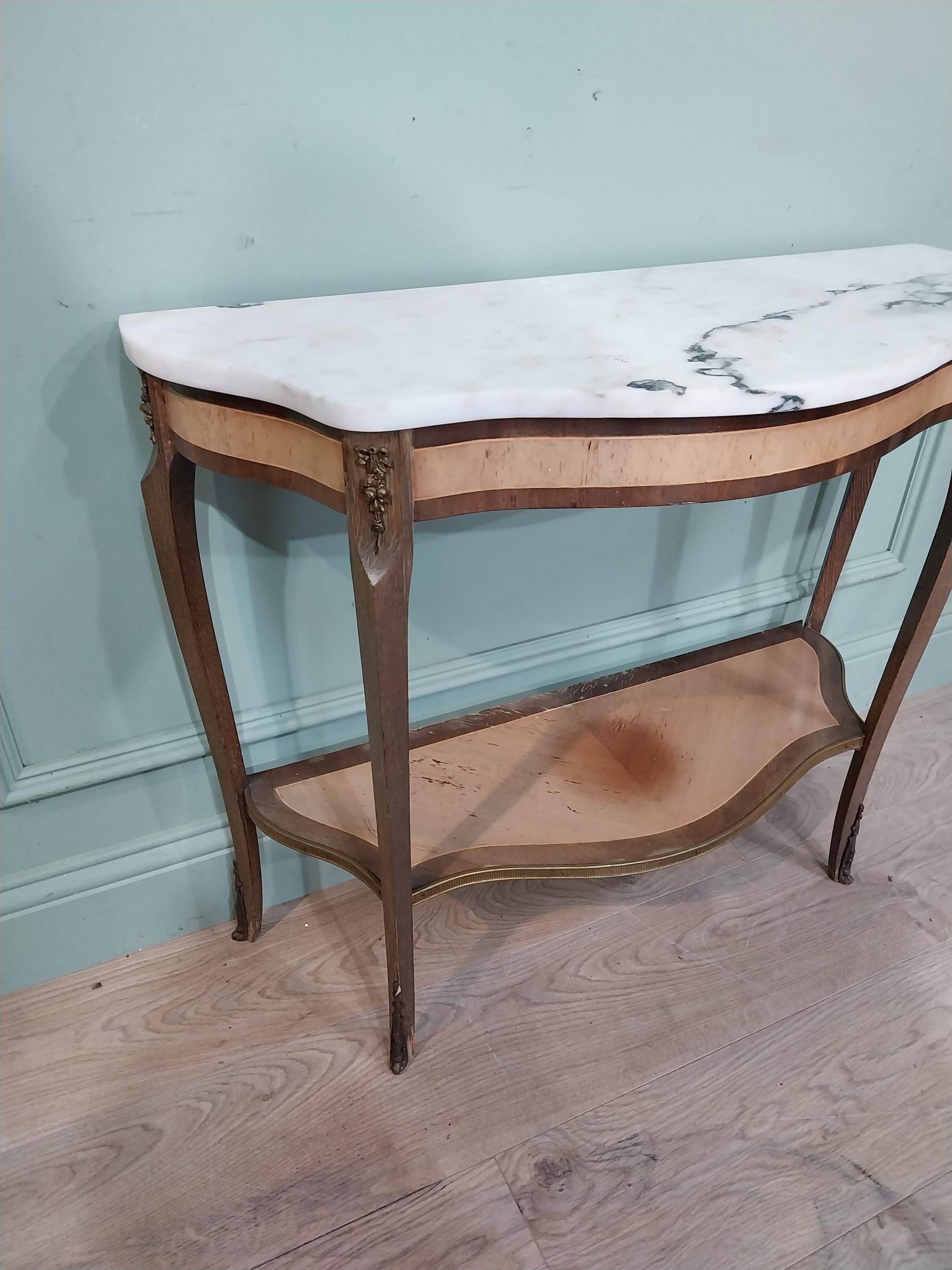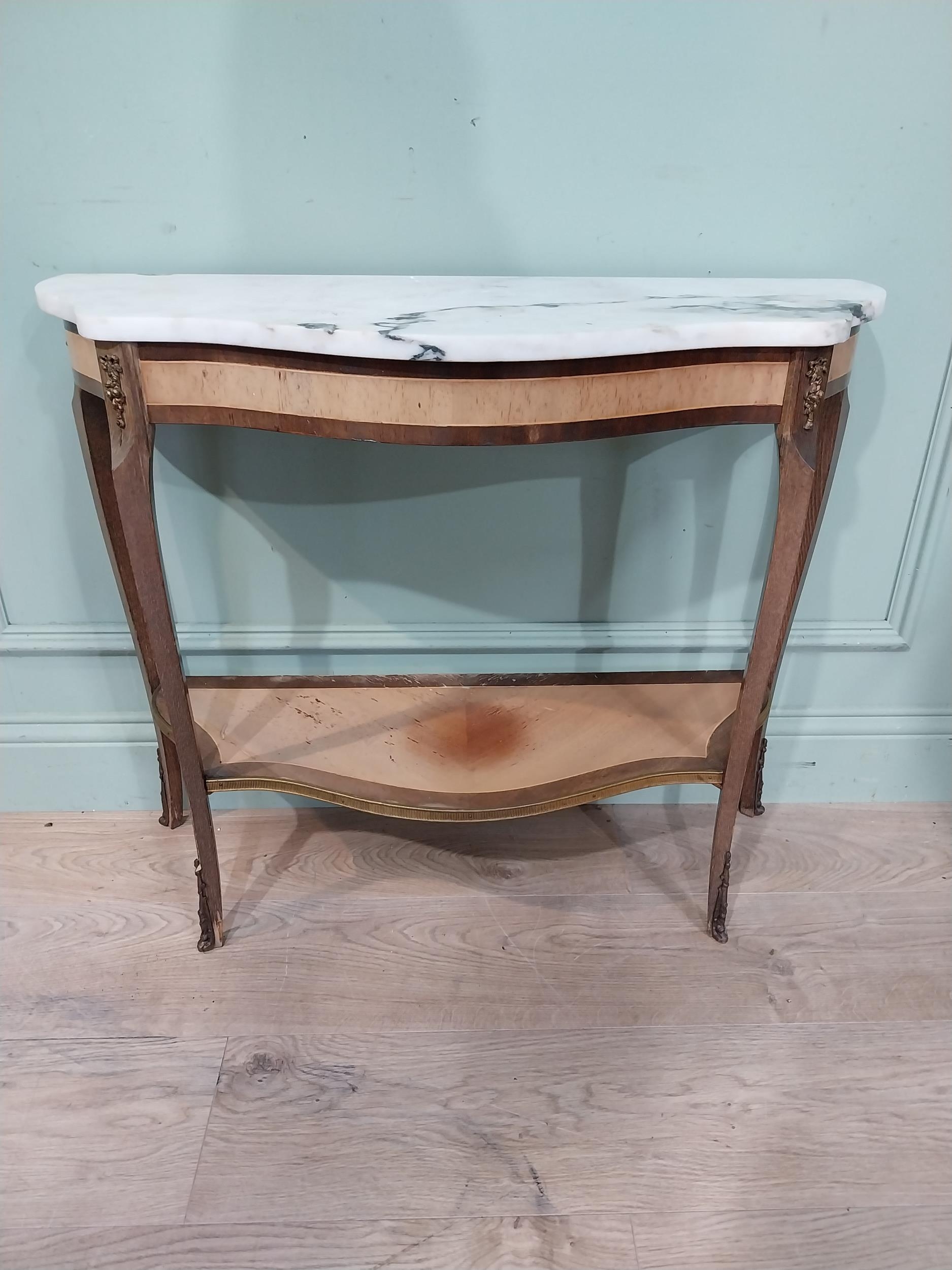 French kingwood and ormolu mounted side table with marble top on cabriole legs. {67 cm H x 79 cm W x 31 cm D}.