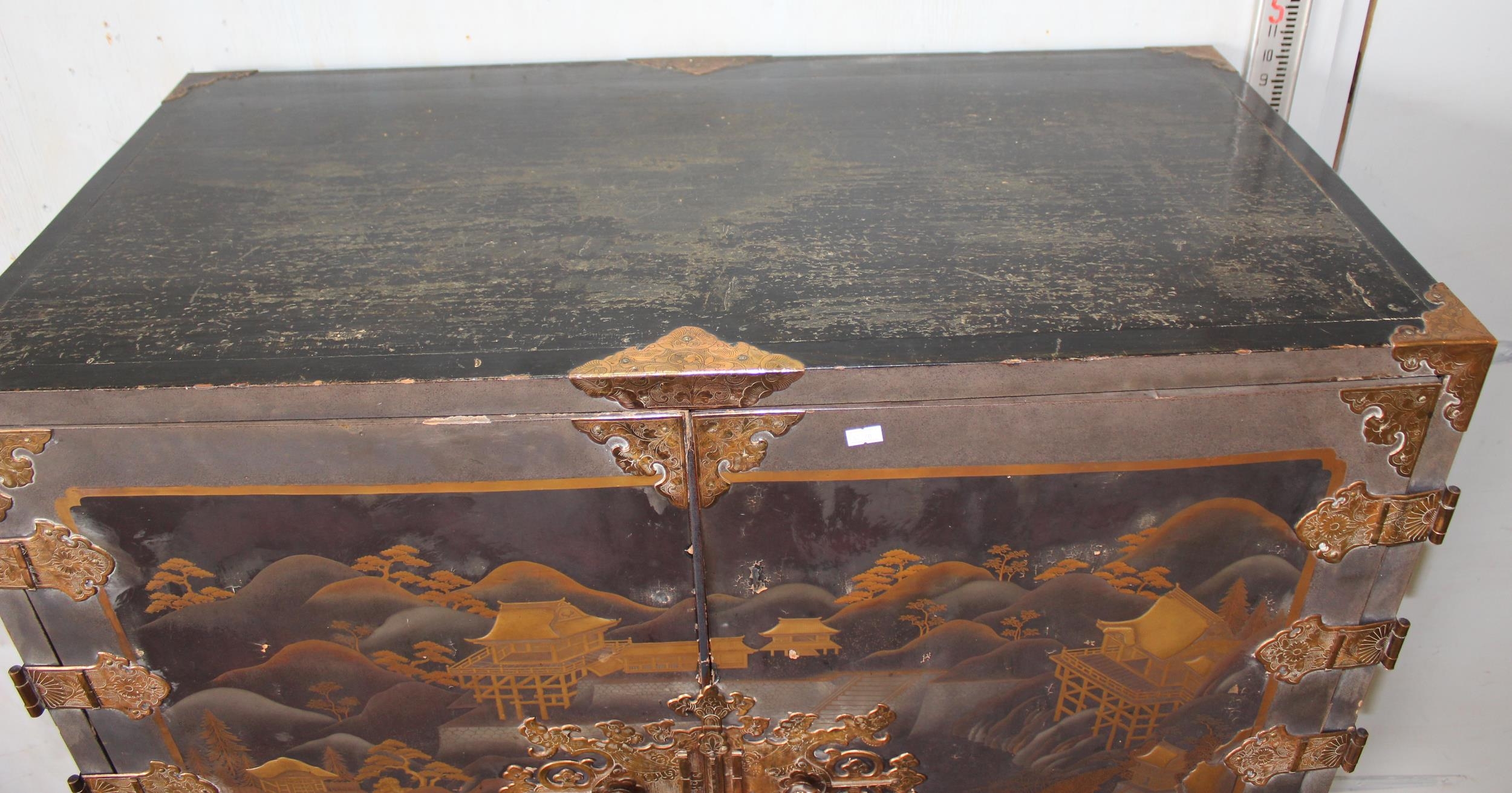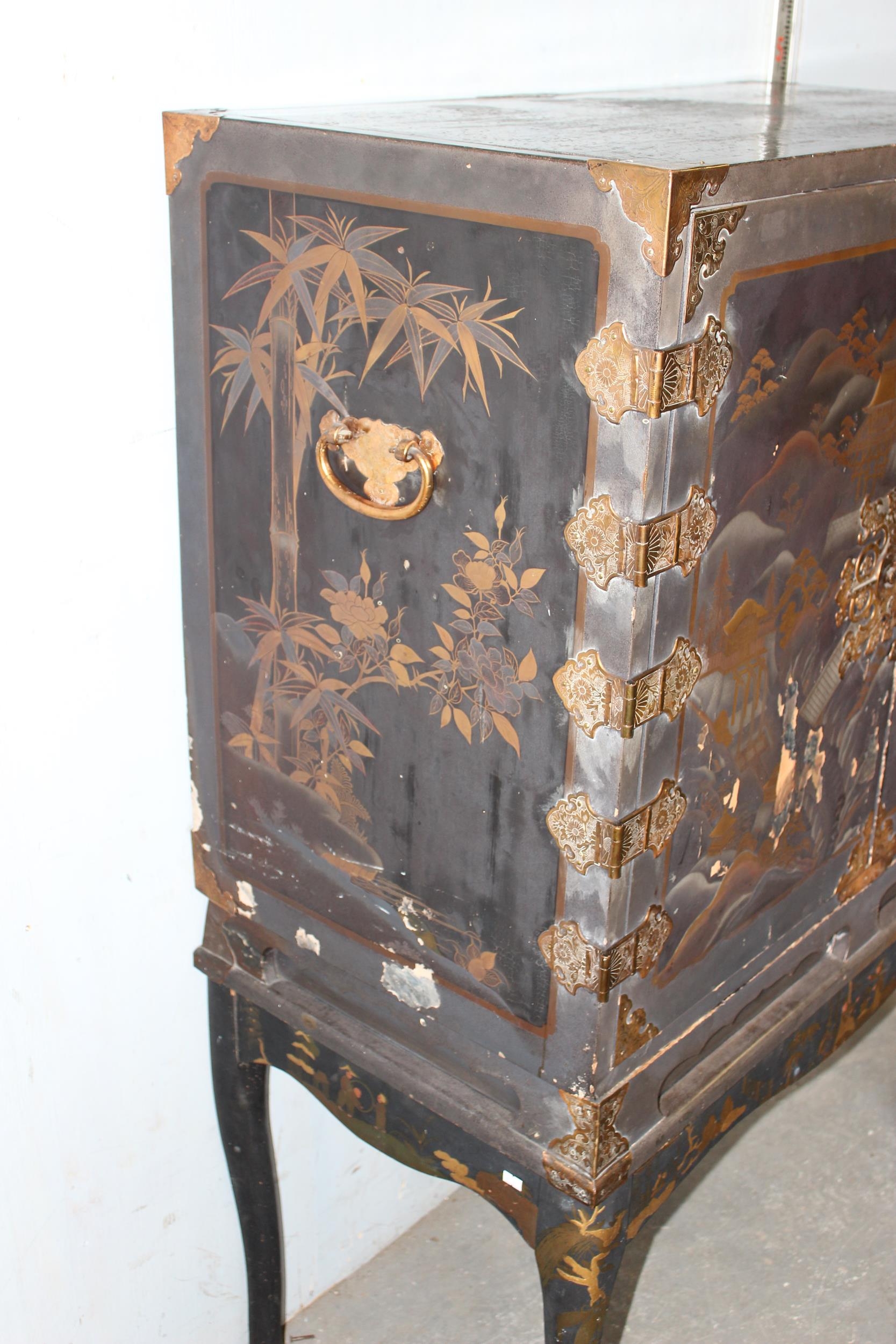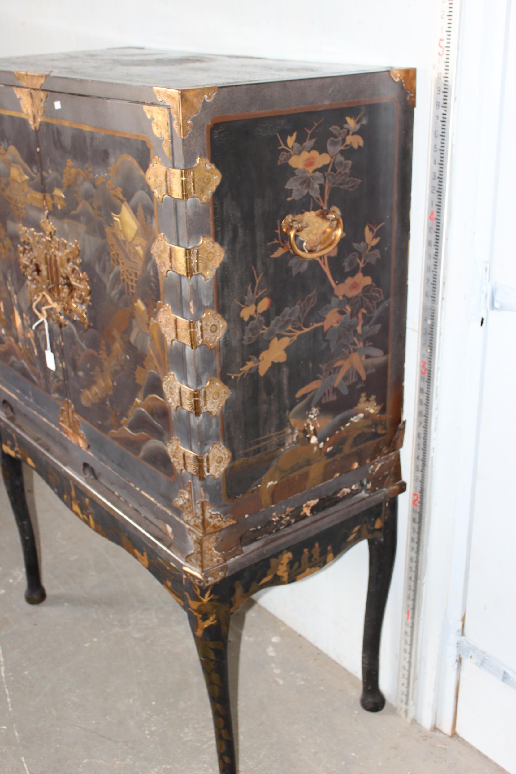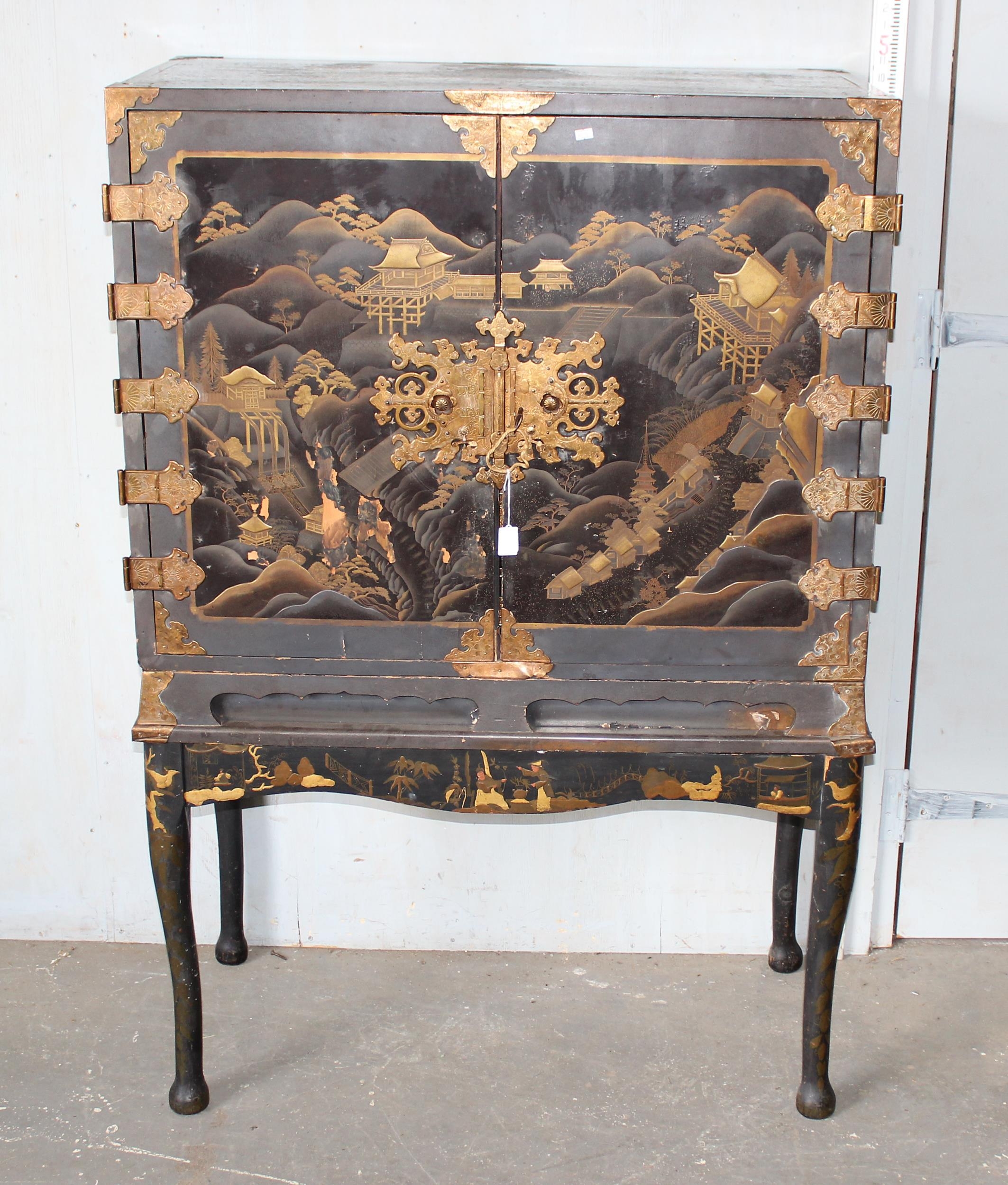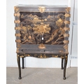 An antique Japanese lacquered cabinet on stand with brass fi...