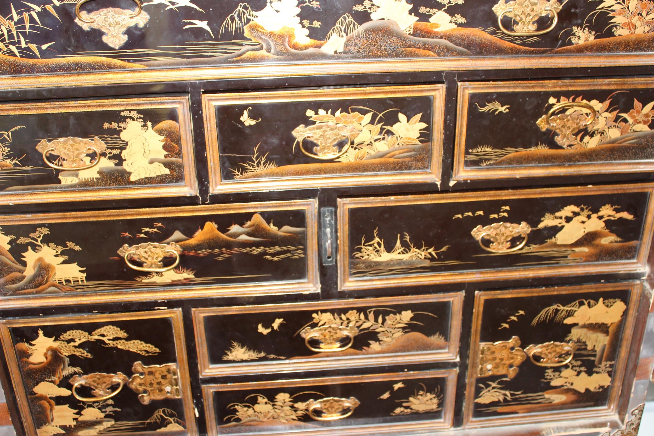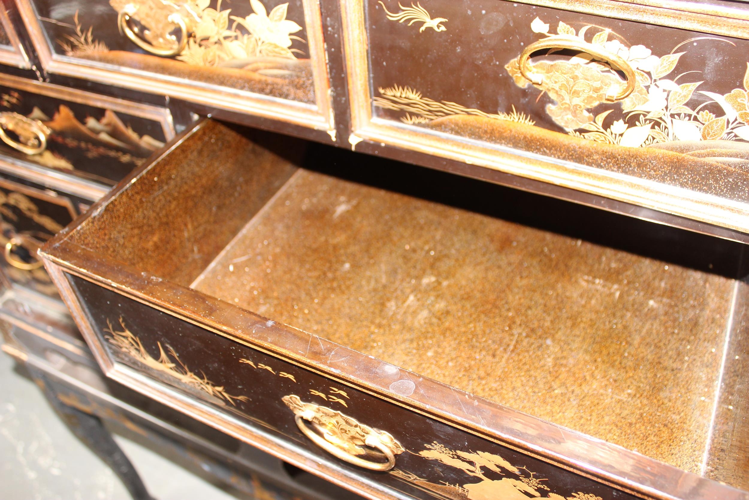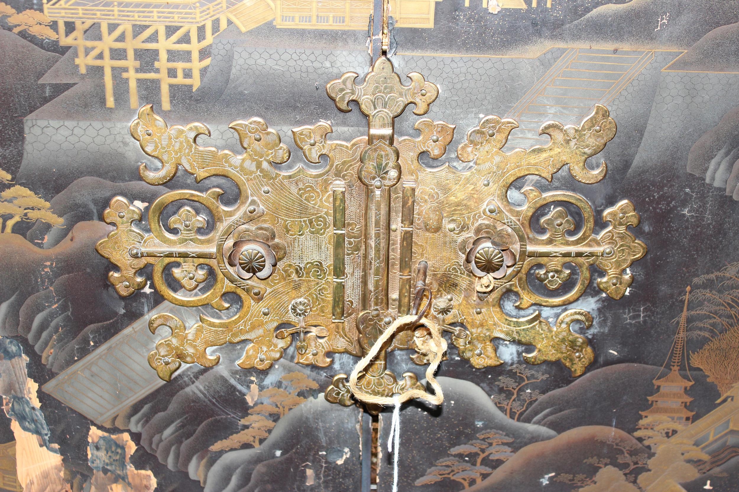 An antique Japanese lacquered cabinet on stand with brass fi...