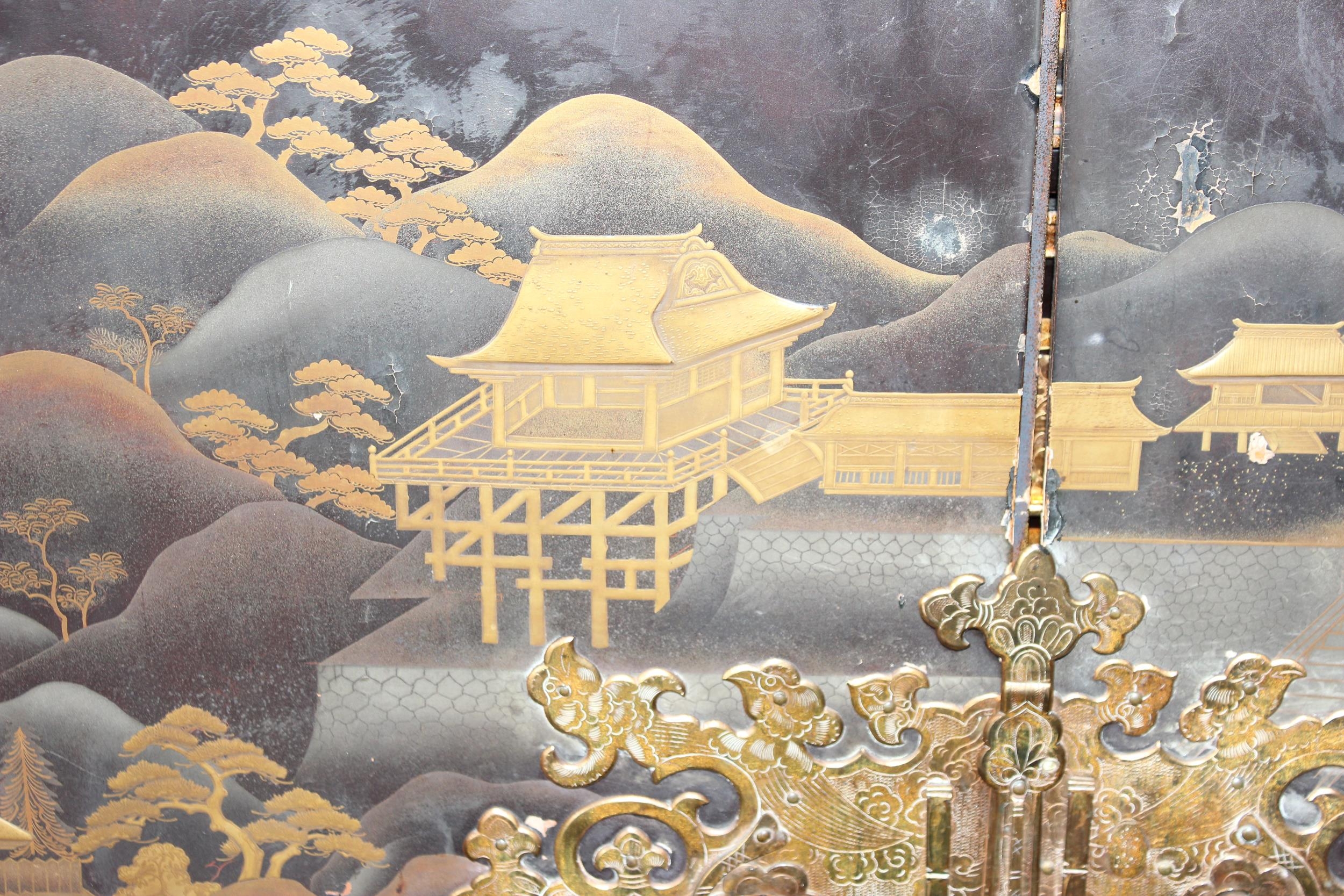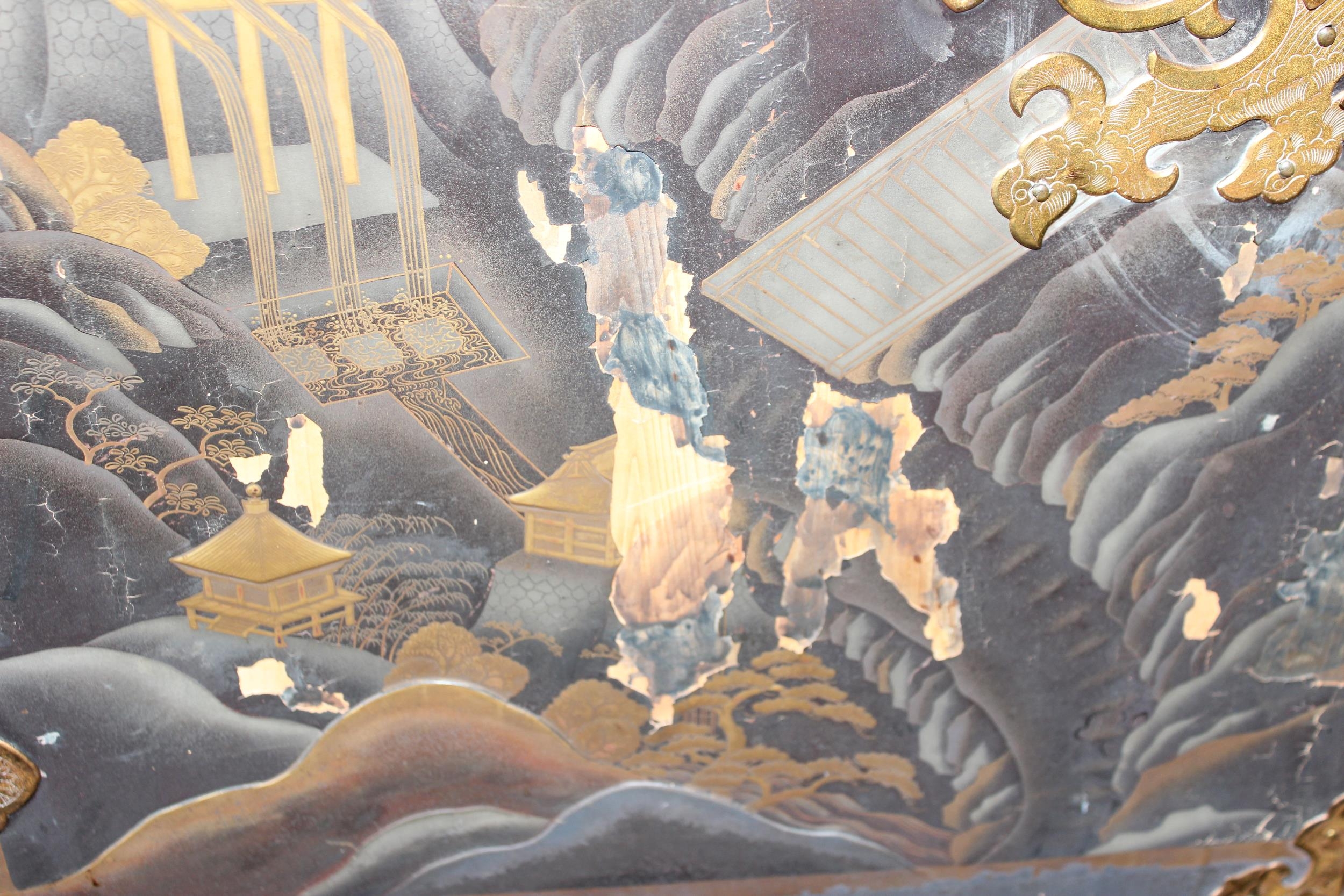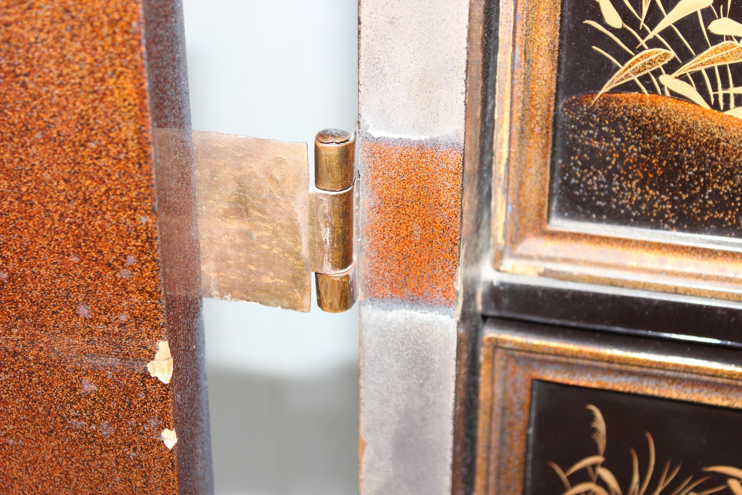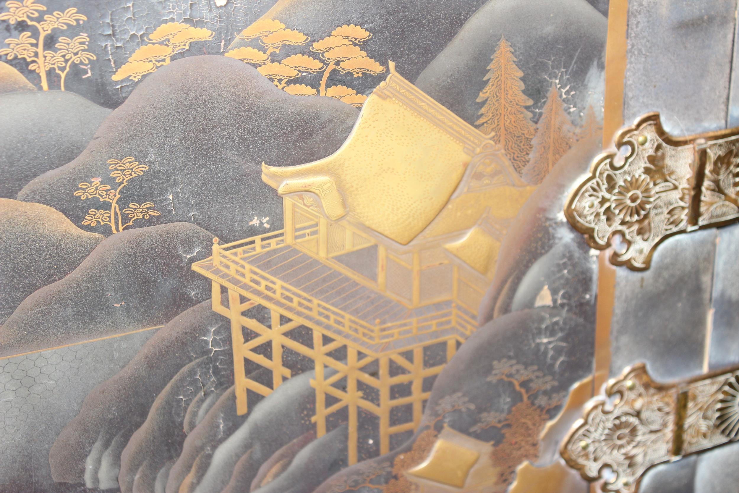An antique Japanese lacquered cabinet on stand with brass fi...